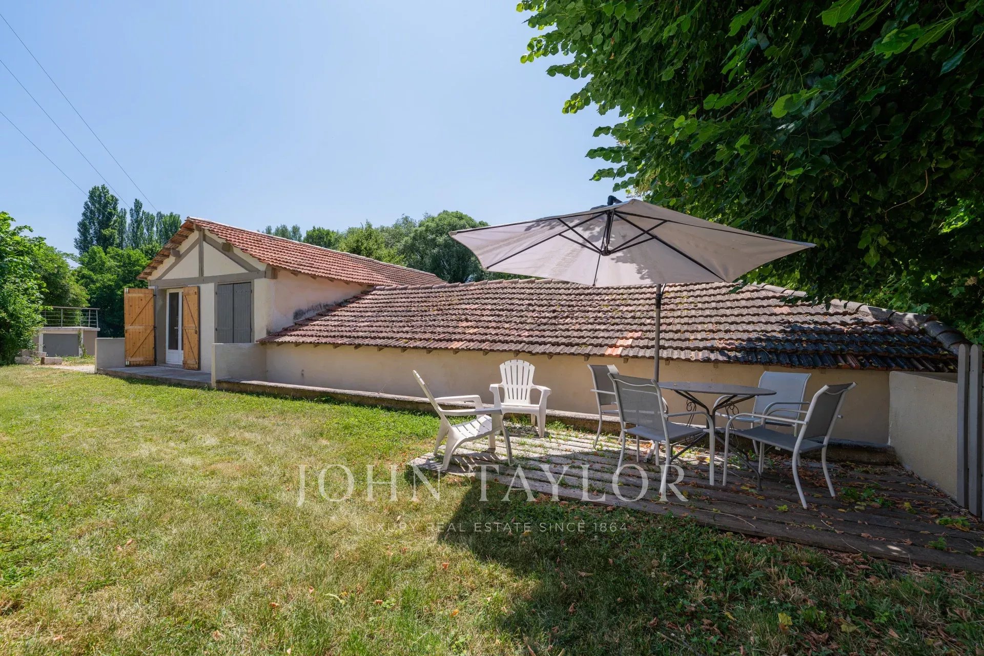 Die Außenanlagen sind ebenso bemerkenswert: Über 7.600 m² Landschaftsgärten und angrenzende Grundstücke bieten eine seltene Vielfalt an Lebens- und Erholungsräumen. Es gibt eine mineralisierte Zone, einen französischen Garten, mehrere Terrassen, eine Sommerküche, einen Spielplatz, eine Boulebahn, einen Obstgarten sowie einen Spazierweg am Flussufer. Jede Wohnung verfügt über einen eigenen Garten mit Ess- und Entspannungsbereich, um eine optimale Lebensqualität zu gewährleisten.