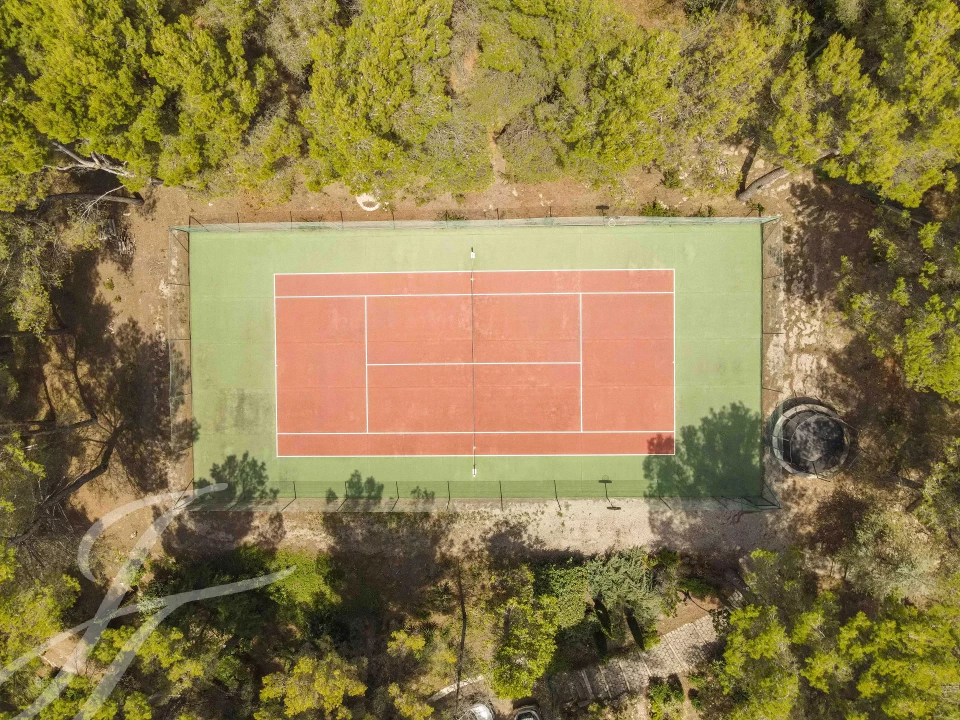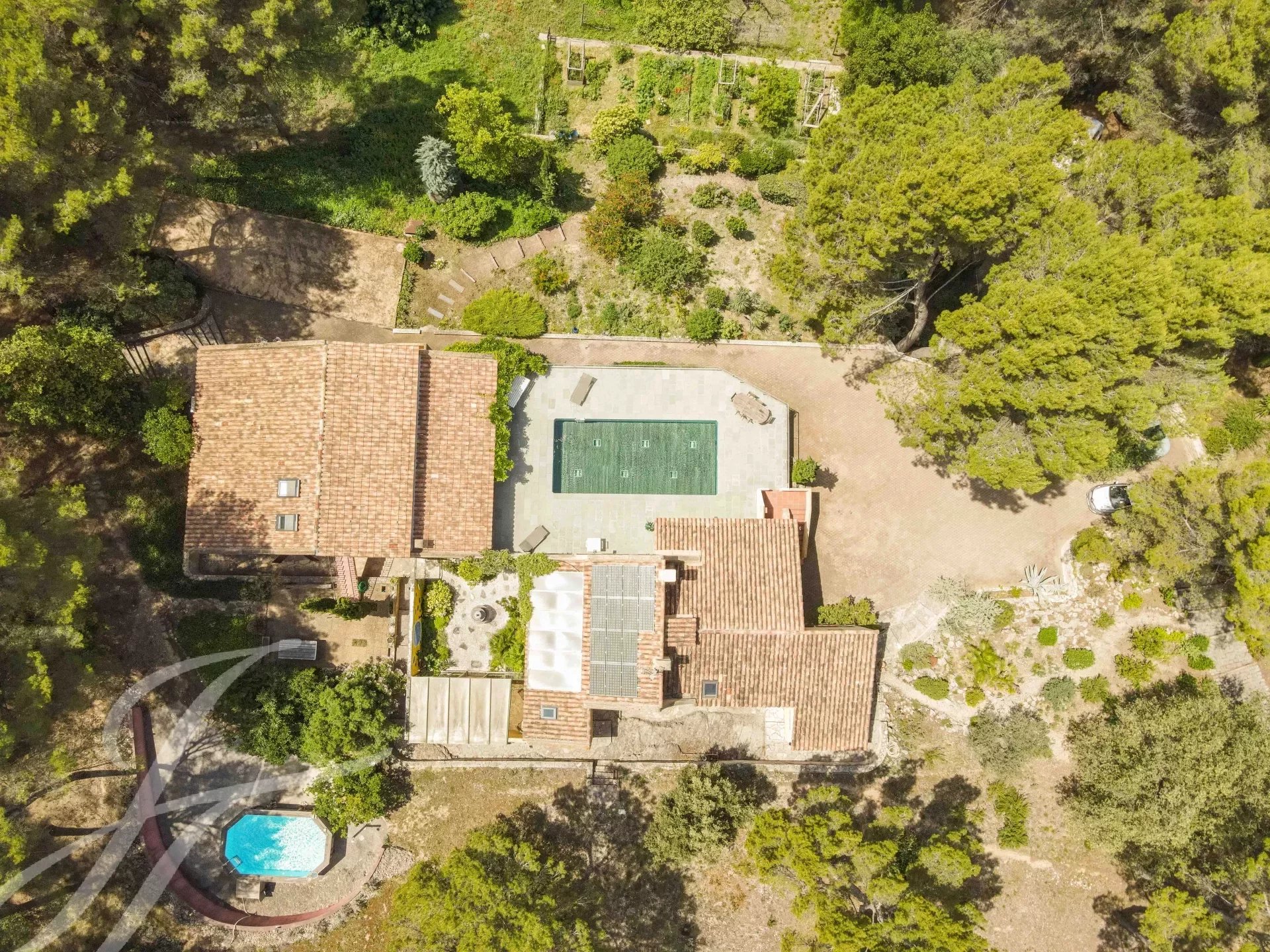 Die zahlreichen Außenanlagen bestechen durch ihre außergewöhnliche natürliche Umgebung: große Terrasse, Pool mit beweglichem Boden und Poolhaus, Tennisplatz, Bouleplatz, Gemüse- und Obstgarten.