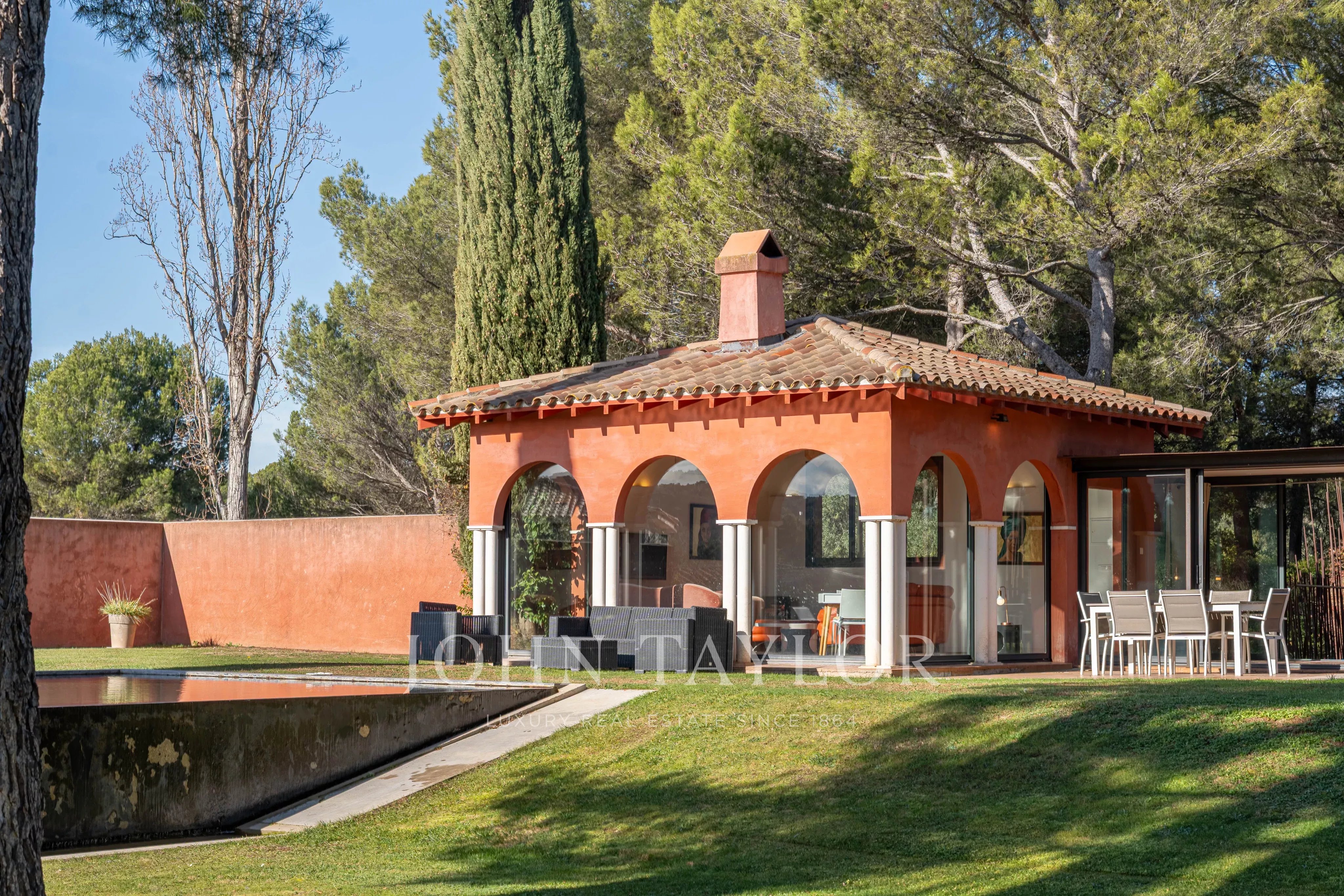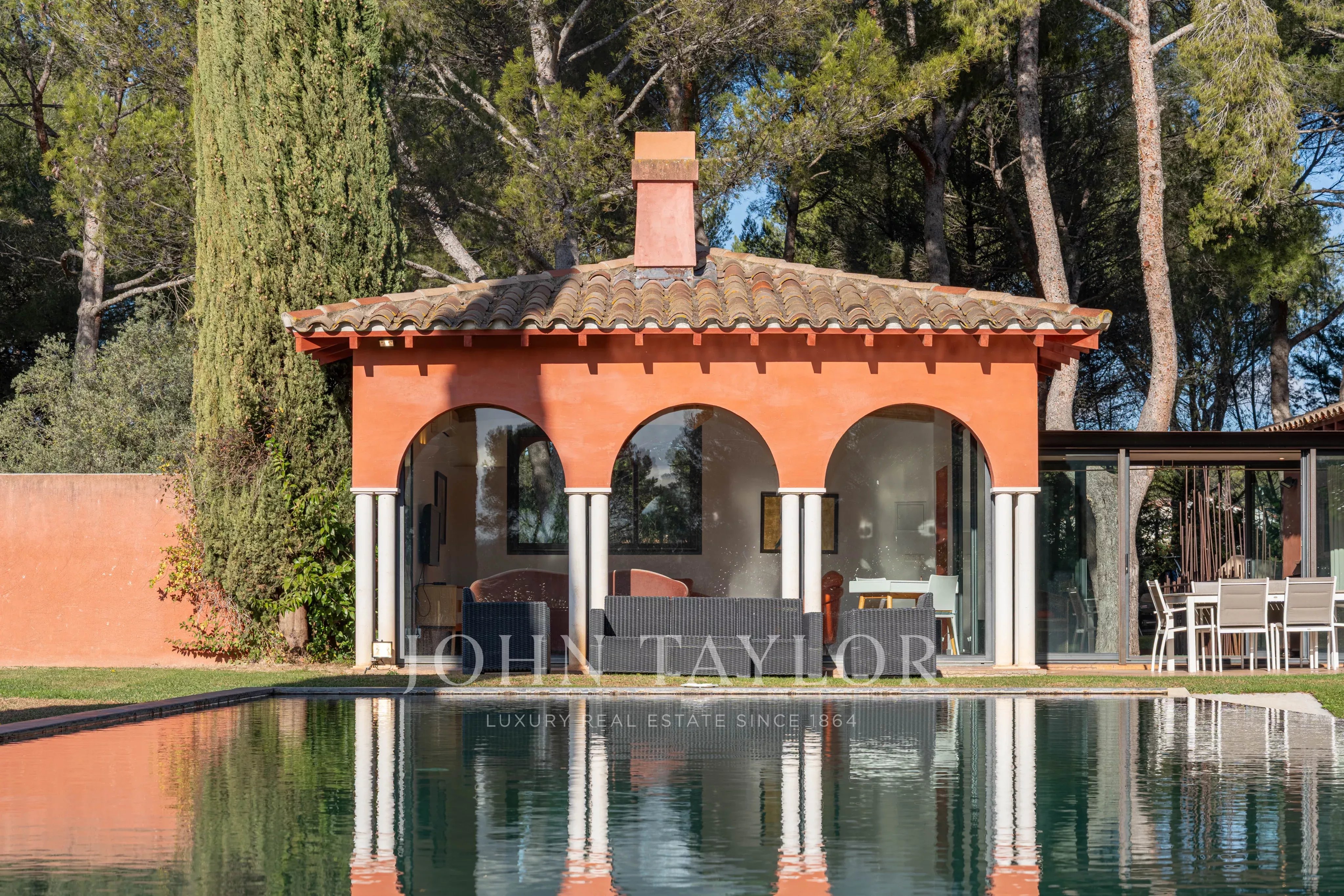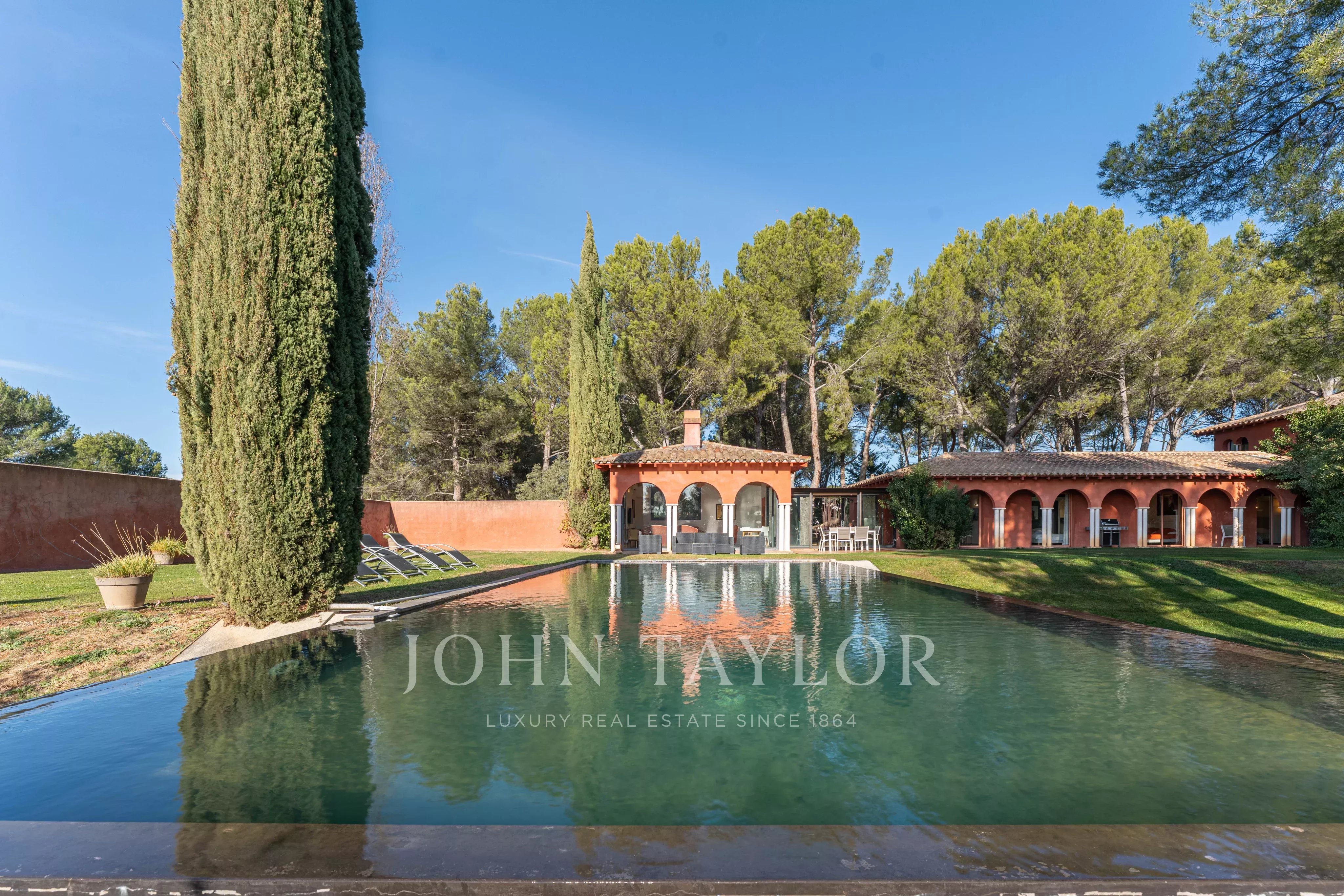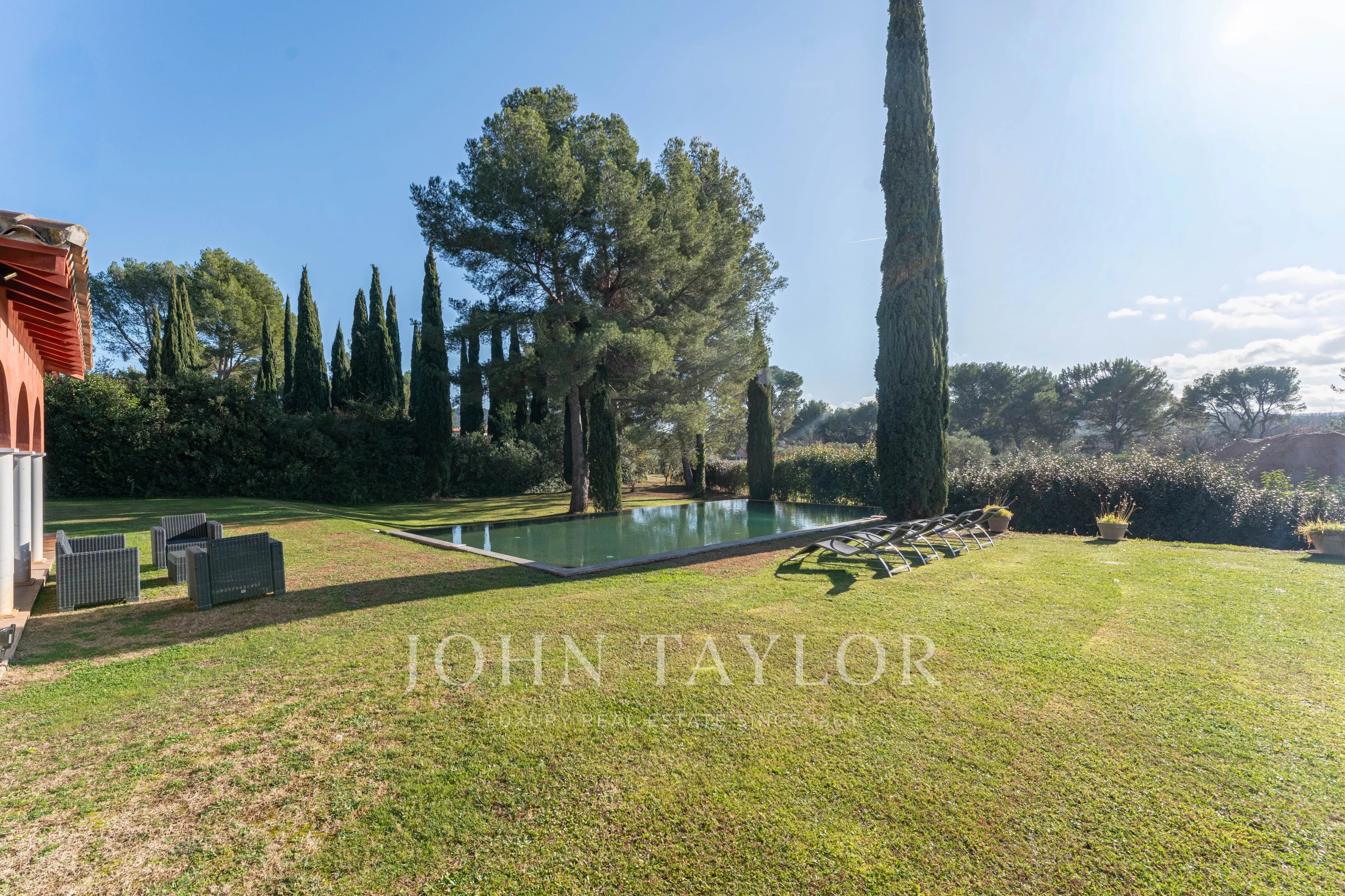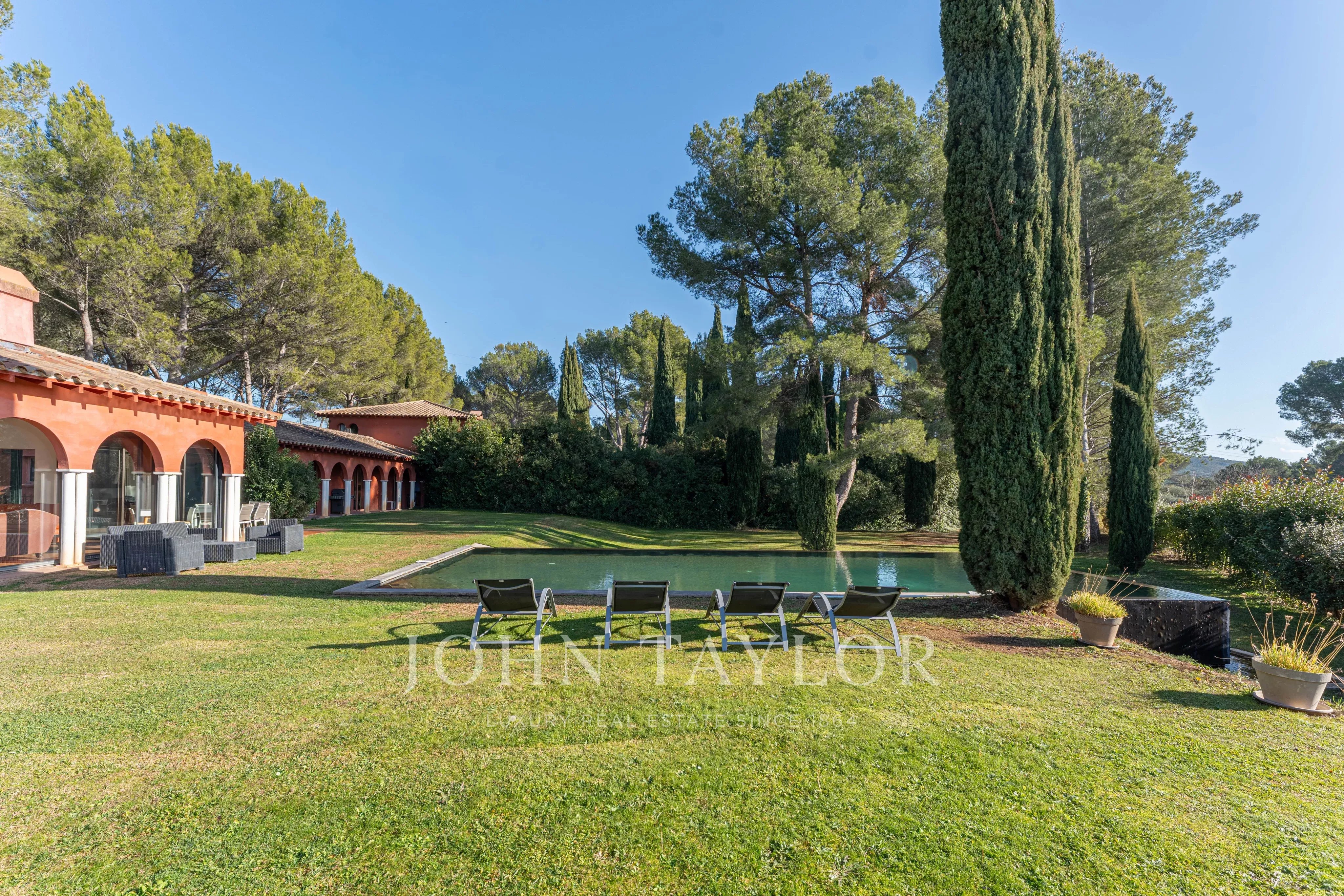 Der sorgfältig angelegte Garten beherbergt einen prächtigen 12 x 7 m großen Infinity-Pool, der zum Entspannen und zu geselligen Stunden in einer ruhigen und grünen Umgebung einlädt.
