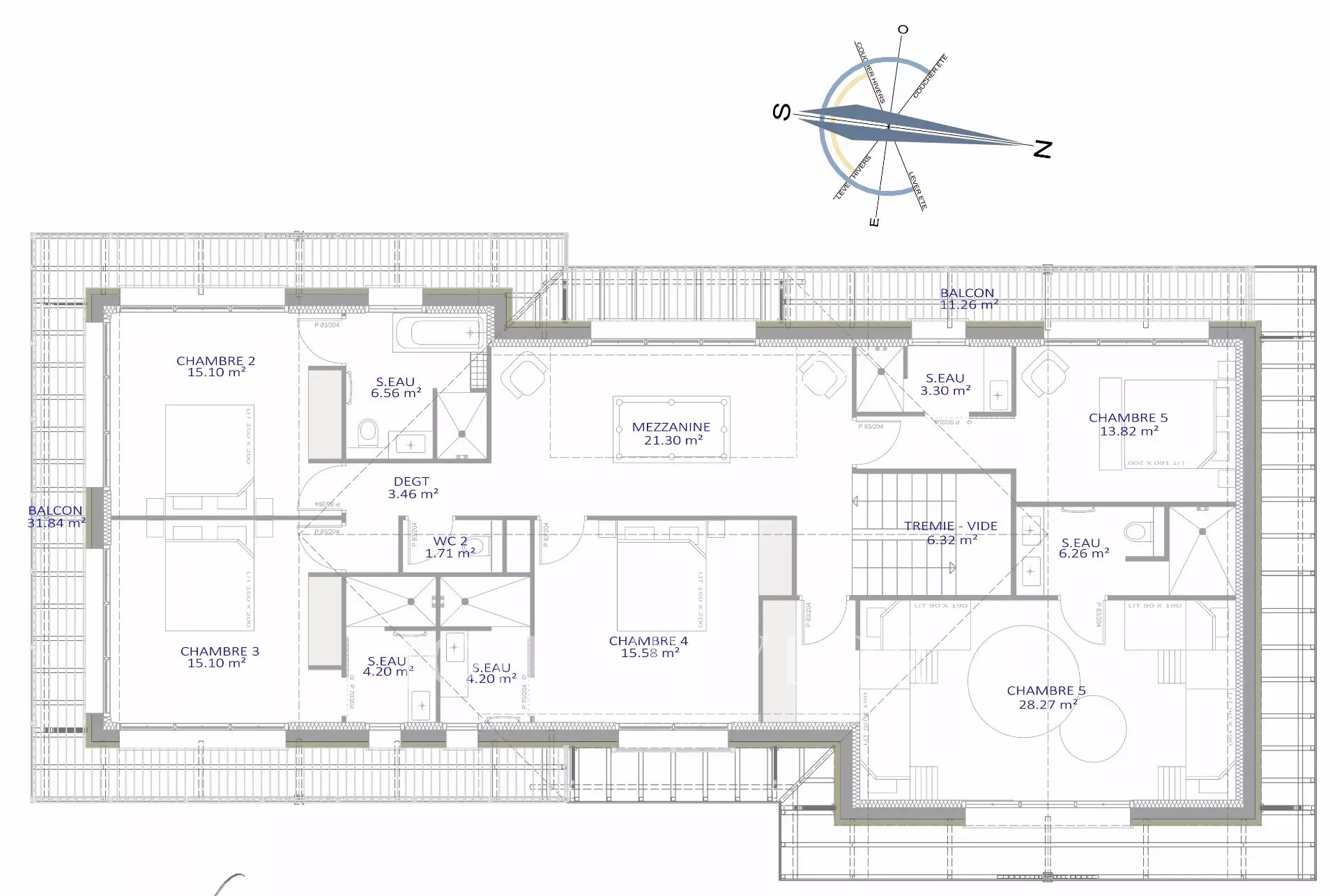 Dieses Projekt bietet 90m2 Wohnfläche und eine Suite im Erdgeschoss, die sich zum Garten hin öffnet. Im Obergeschoss befinden sich 5 Suiten, von denen eine über 30m2 groß ist.