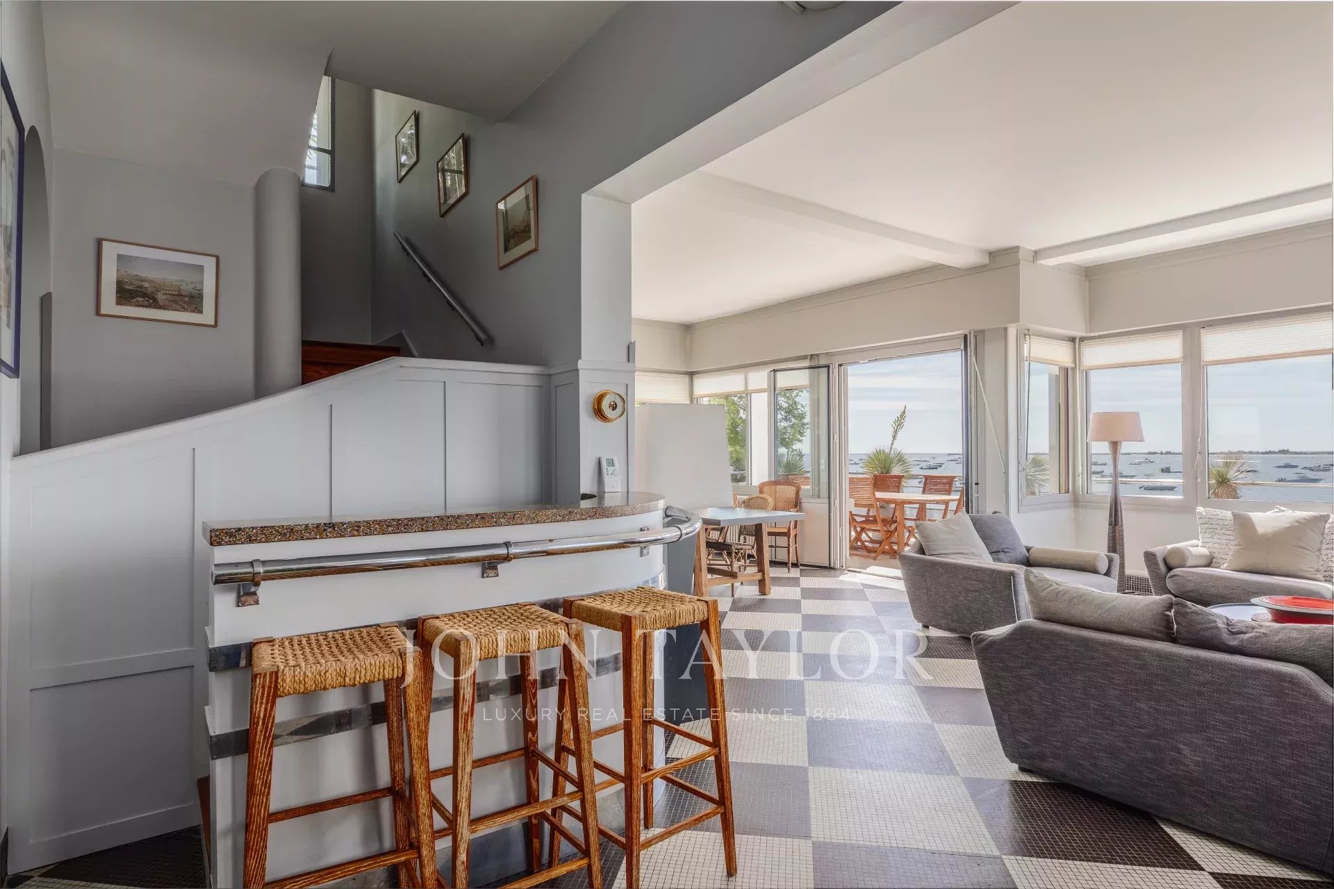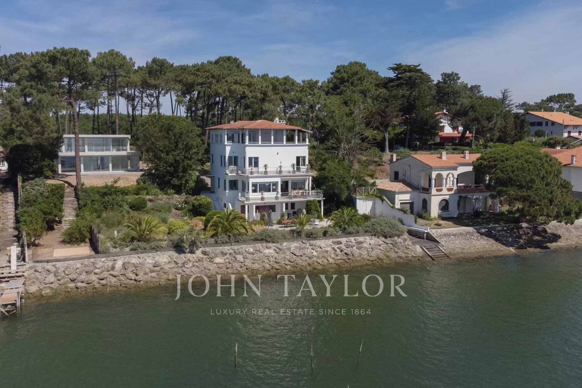 John Taylor Cap Ferret präsentiert Ihnen diese atemberaubende Villa in erster Linie des Bassin d'Arcachon, eine der ältesten Villen auf der Halbinsel, nur wenige Schritte vom Pier des Dorfes Grand Piquey und den Geschäften entfernt.