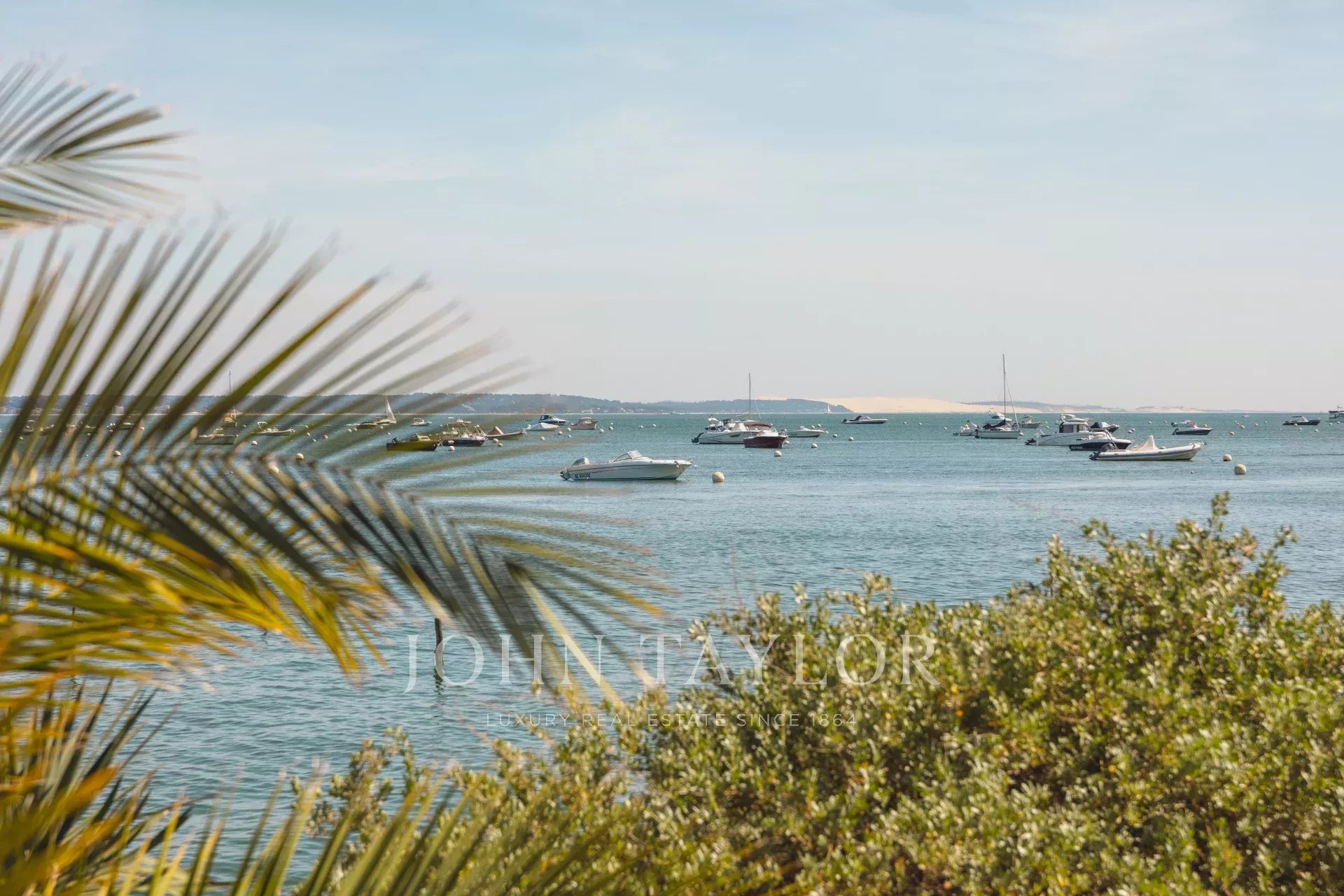 Umgeben von einem 2700m2 großen Park bietet die Villa sieben große, lichtdurchflutete Schlafzimmer und ein unglaubliches Wohnzimmer mit 180 Grad Blick auf das Vogelschutzgebiet und die Düne von Pilat.