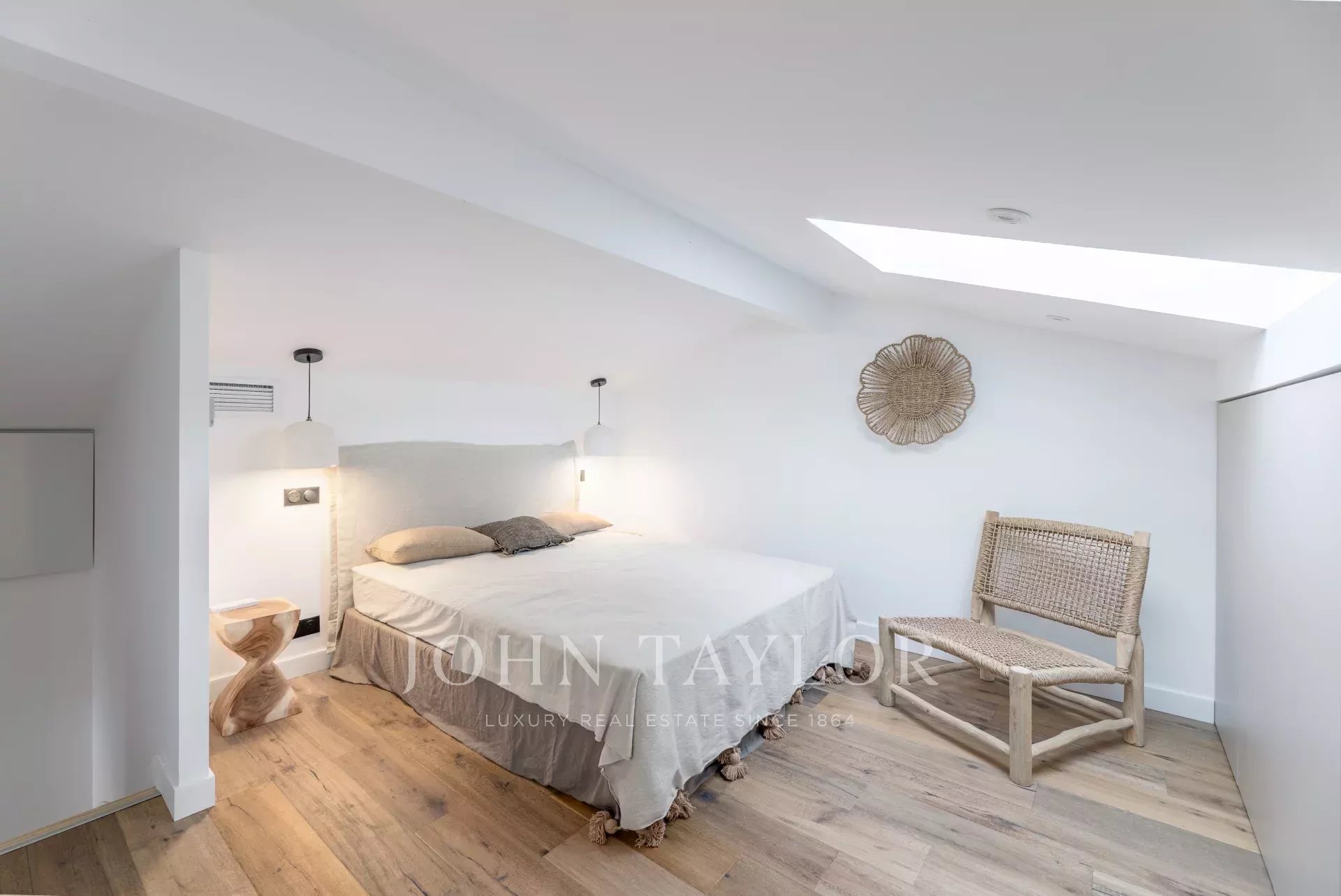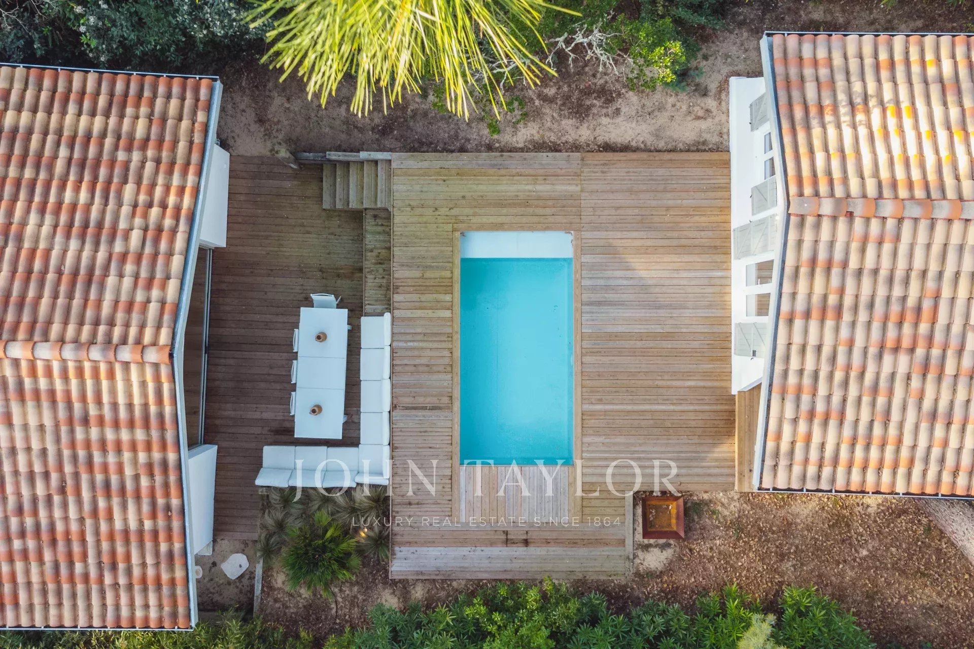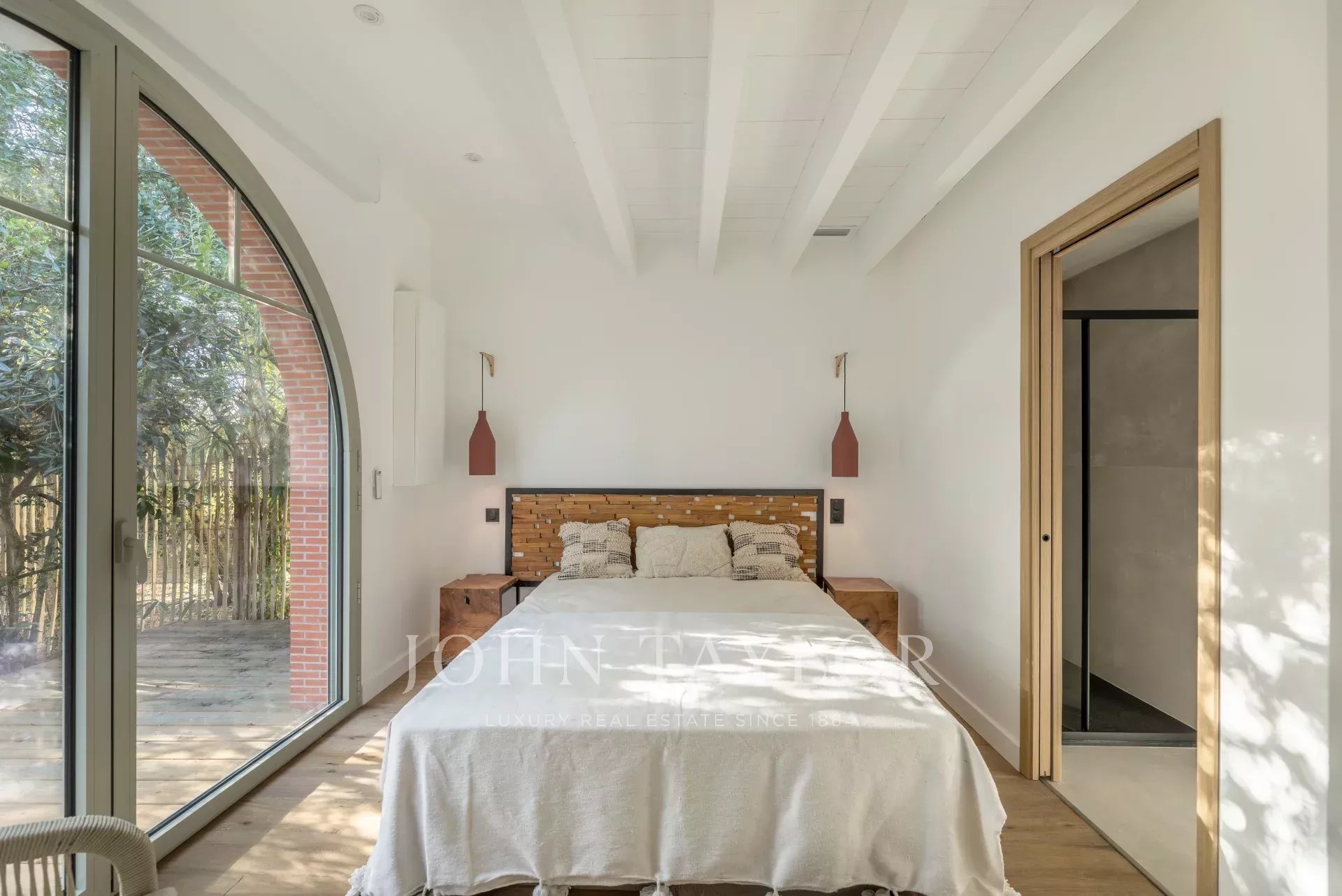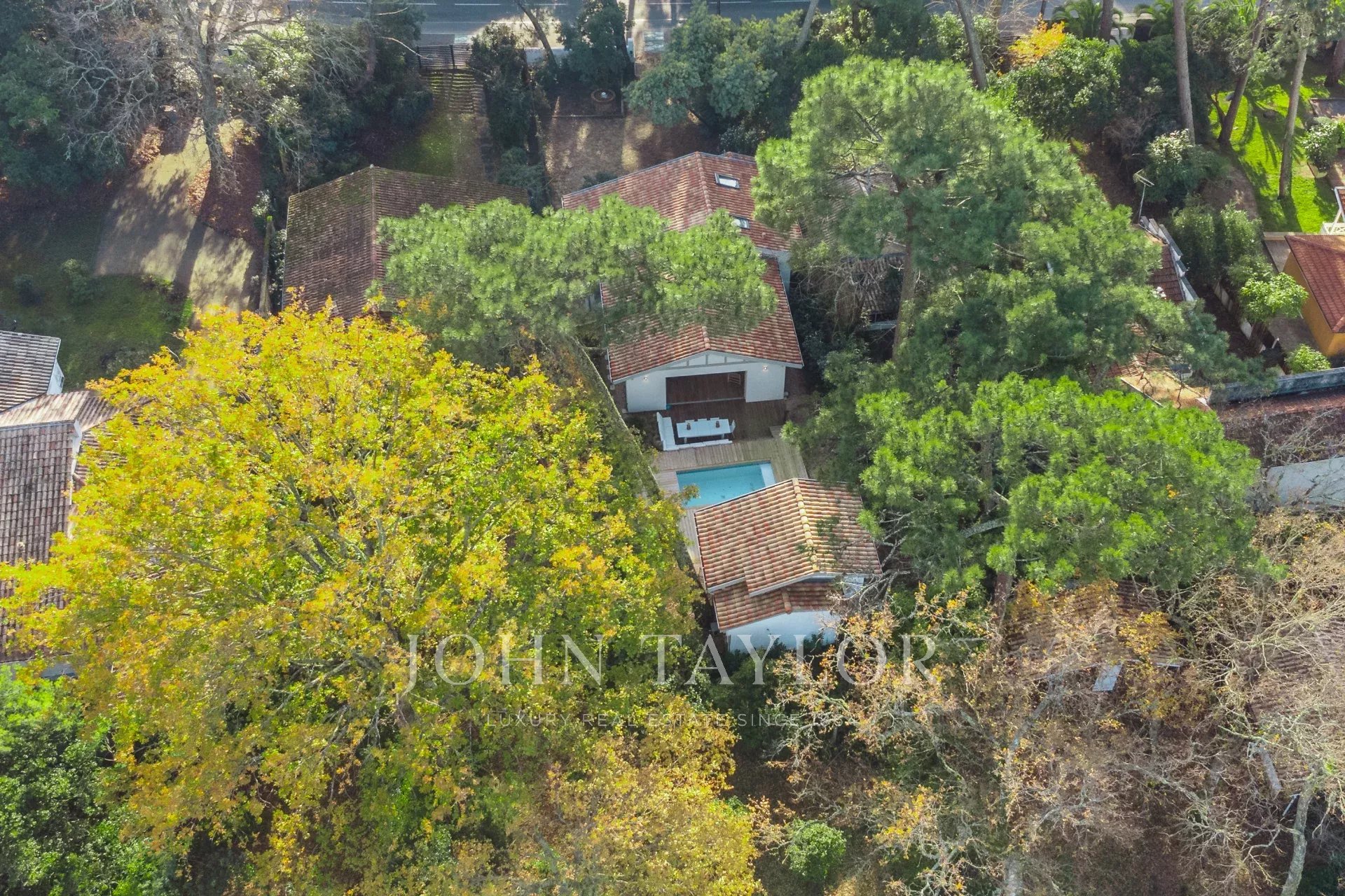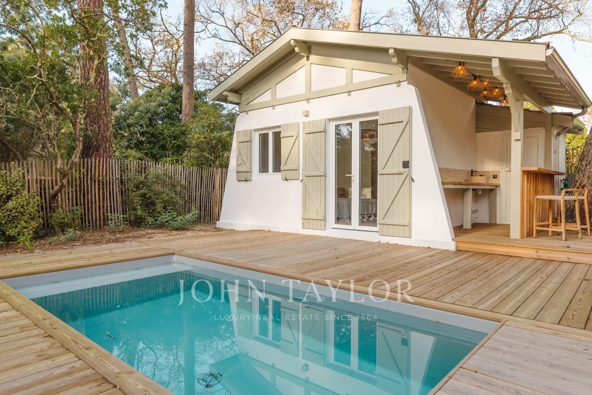 John Taylor Arcachon präsentiert diese beeindruckend renovierte Villa, die sich in der begehrten Gegend von Haïtza befindet, nur 200 Meter vom Strand entfernt.