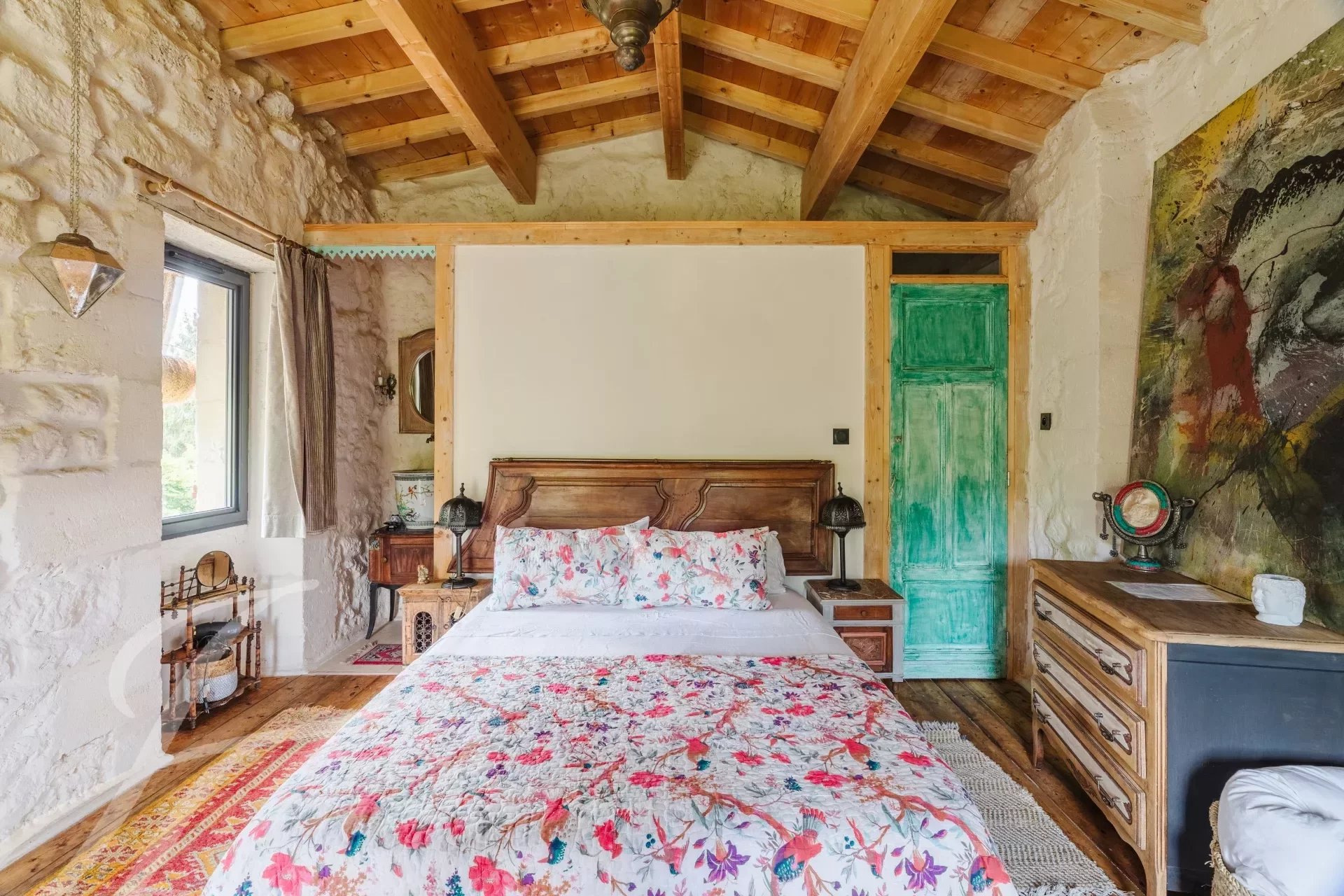 Das Anwesen erstreckt sich über 7000m² Land und bietet 260m² Wohnfläche, darunter 12 Wohnräume, ein geräumiges Wohnzimmer, ein Esszimmer, das in eine 48m² große Küche integriert ist, vier Gästezimmer mit Badezimmern, zwei Familienzimmer mit Badezimmern, ein offenes Büro, eine Waschküche und ein Dienstzimmer oder Vorratsraum. Ein 70m² großes troglodytisches Kellergewölbe und mehrere Nebengebäude, darunter ein Eselhaus und eine Futterkrippe, vervollständigen diese Immobilie.