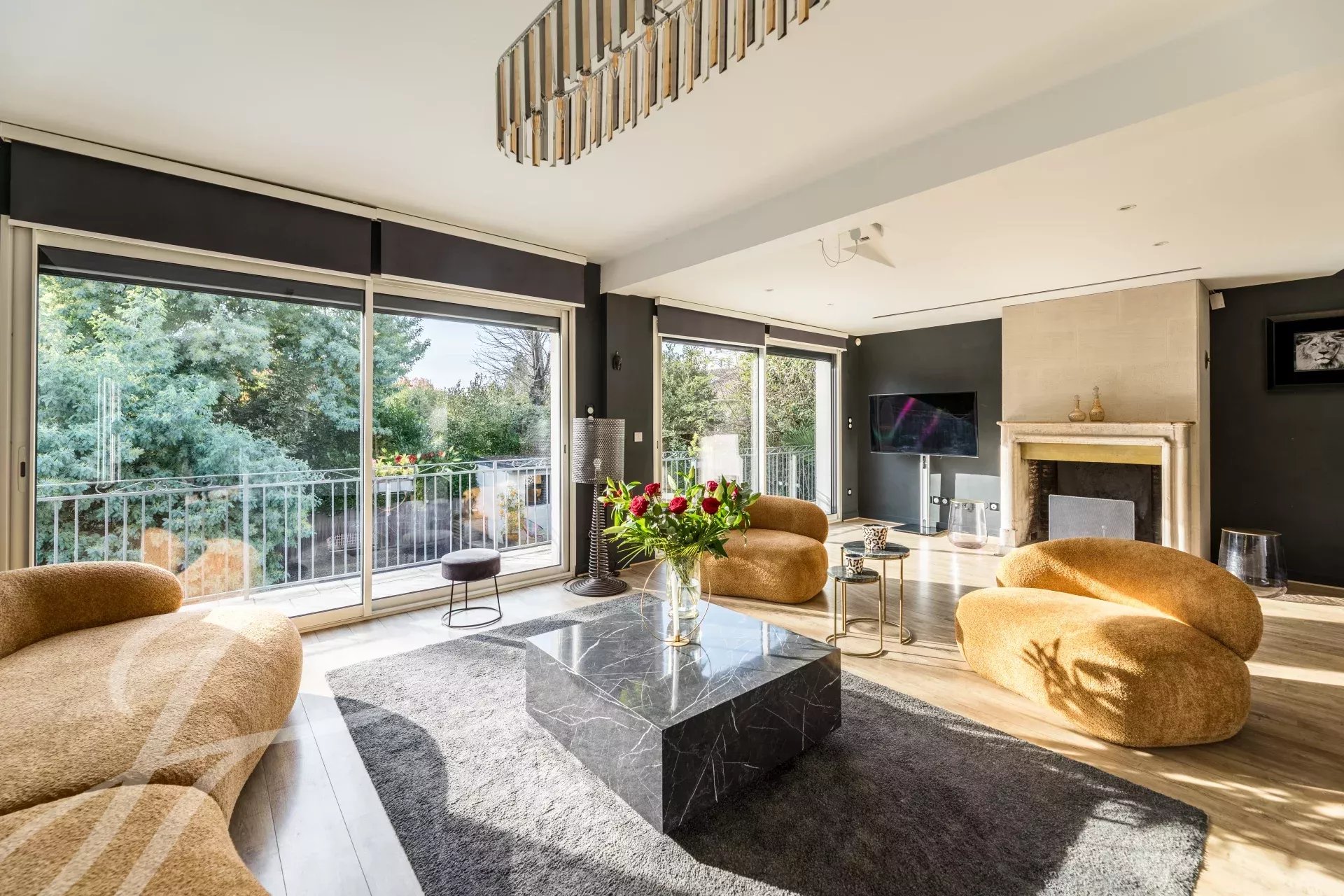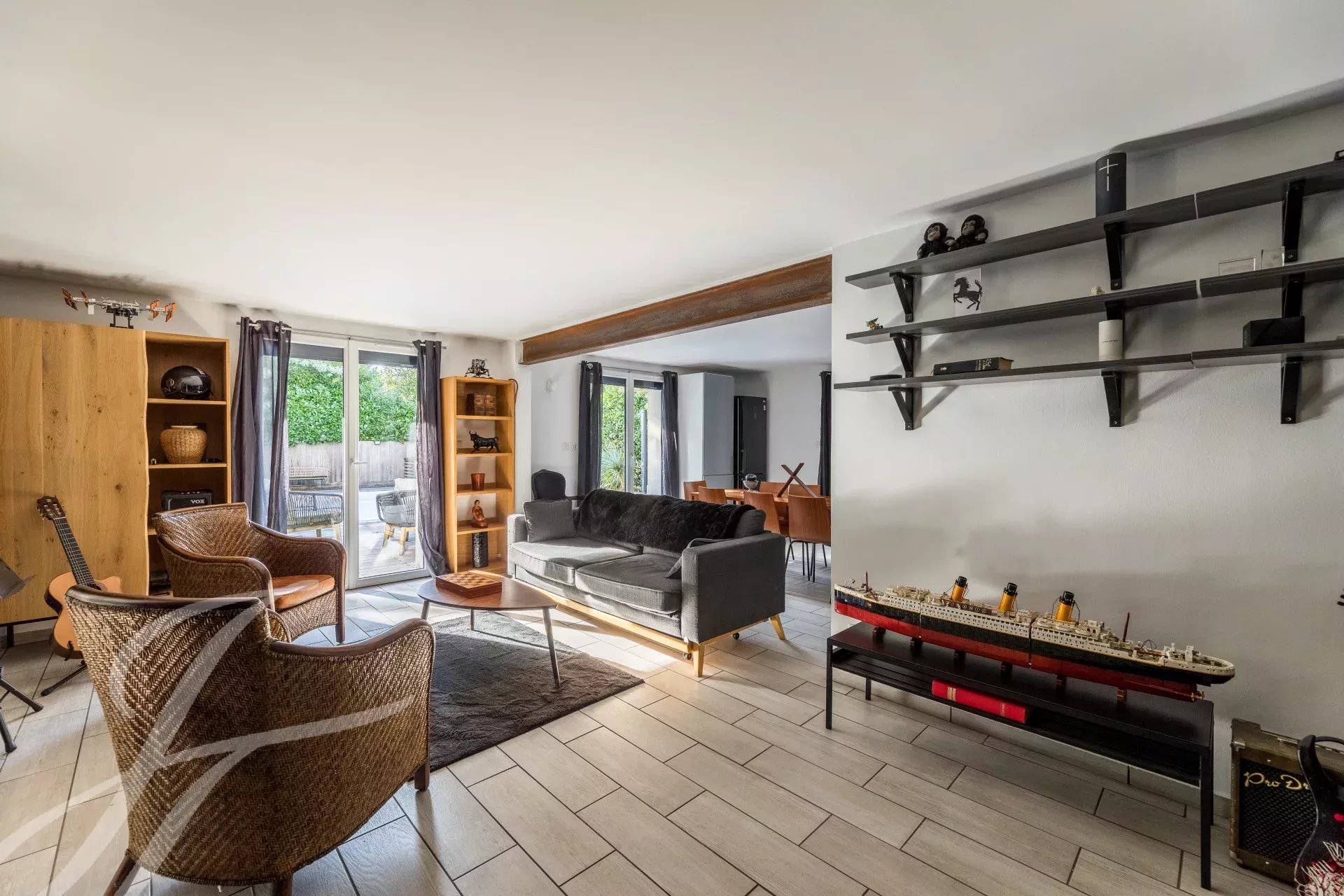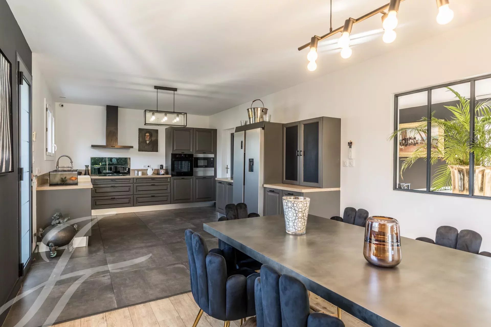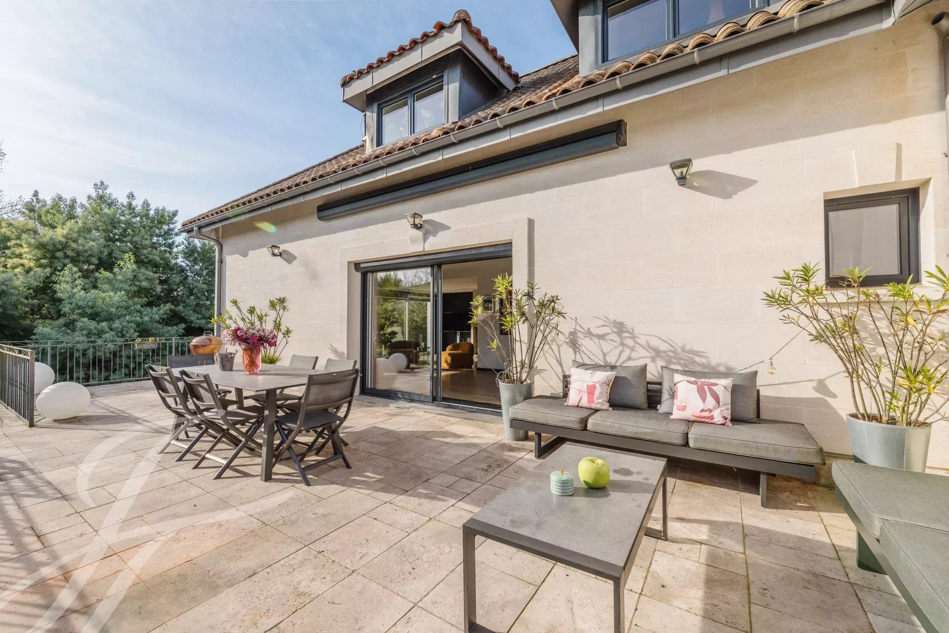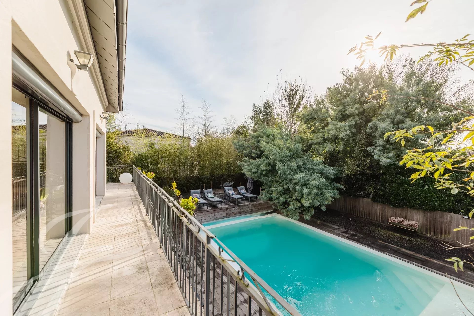 Dieses prächtige Haus in Mérignac erstreckt sich über 400 m² und bietet sieben geräumige Schlafzimmer sowie insgesamt zehn Zimmer. Jedes Detail spiegelt Komfort und Eleganz wider, beginnend mit der Klimaanlage und den doppelverglasten Fenstern. Der Wohnbereich besticht durch ein stilvolles Ambiente mit einem Kamin und großen Schiebefenstern, die für viel Licht sorgen.