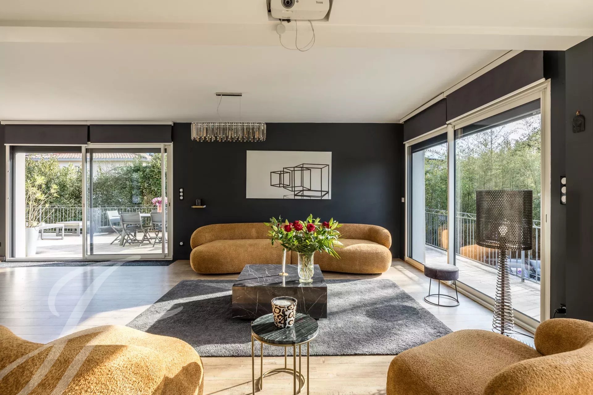Im Außenbereich finden Sie eine Oase der Entspannung mit einem großzügigen Swimmingpool und einem privaten Spa. Elektrische Markisen und Rollläden bieten zusätzlichen Komfort, während moderne Außenbeleuchtung und ein integriertes Intercom-System für Sicherheit sorgen. Das elektrisch betriebene Tor und die Sicherheitstür geben Ihnen ein Gefühl von Geborgenheit.