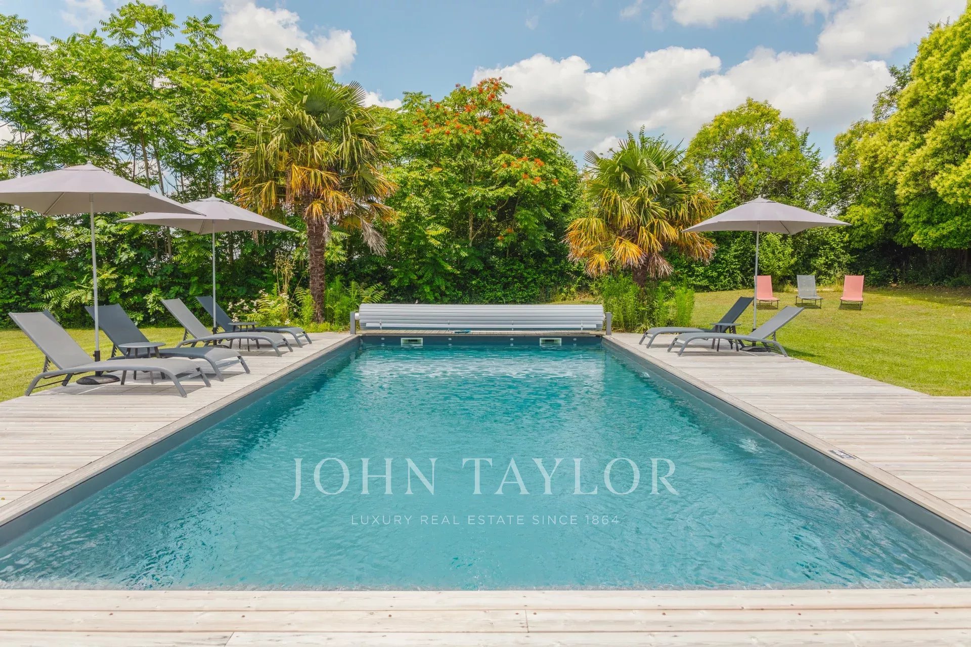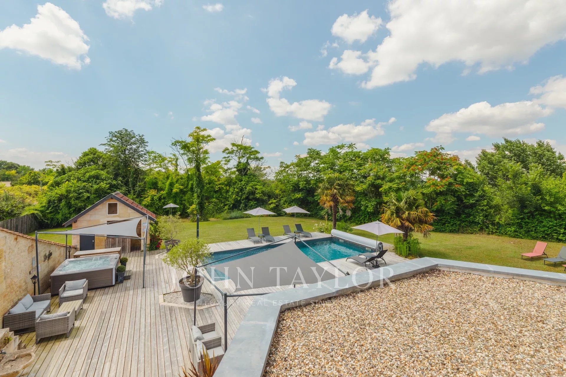 Nur 30 Minuten von Bordeaux entfernt präsentiert John Taylor exklusiv diese außergewöhnliche Residenz. Einst das Zuhause von Offizieren unter Napoleon, wurde sie in eine luxuriöse moderne Wohnung verwandelt, ergänzt durch drei unabhängige Ferienhäuser, die sich alle auf über 2 Hektar erstrecken. Das Anwesen besteht aus drei Hauptgebäuden, die historische Elemente harmonisch mit modernem Komfort verbinden.