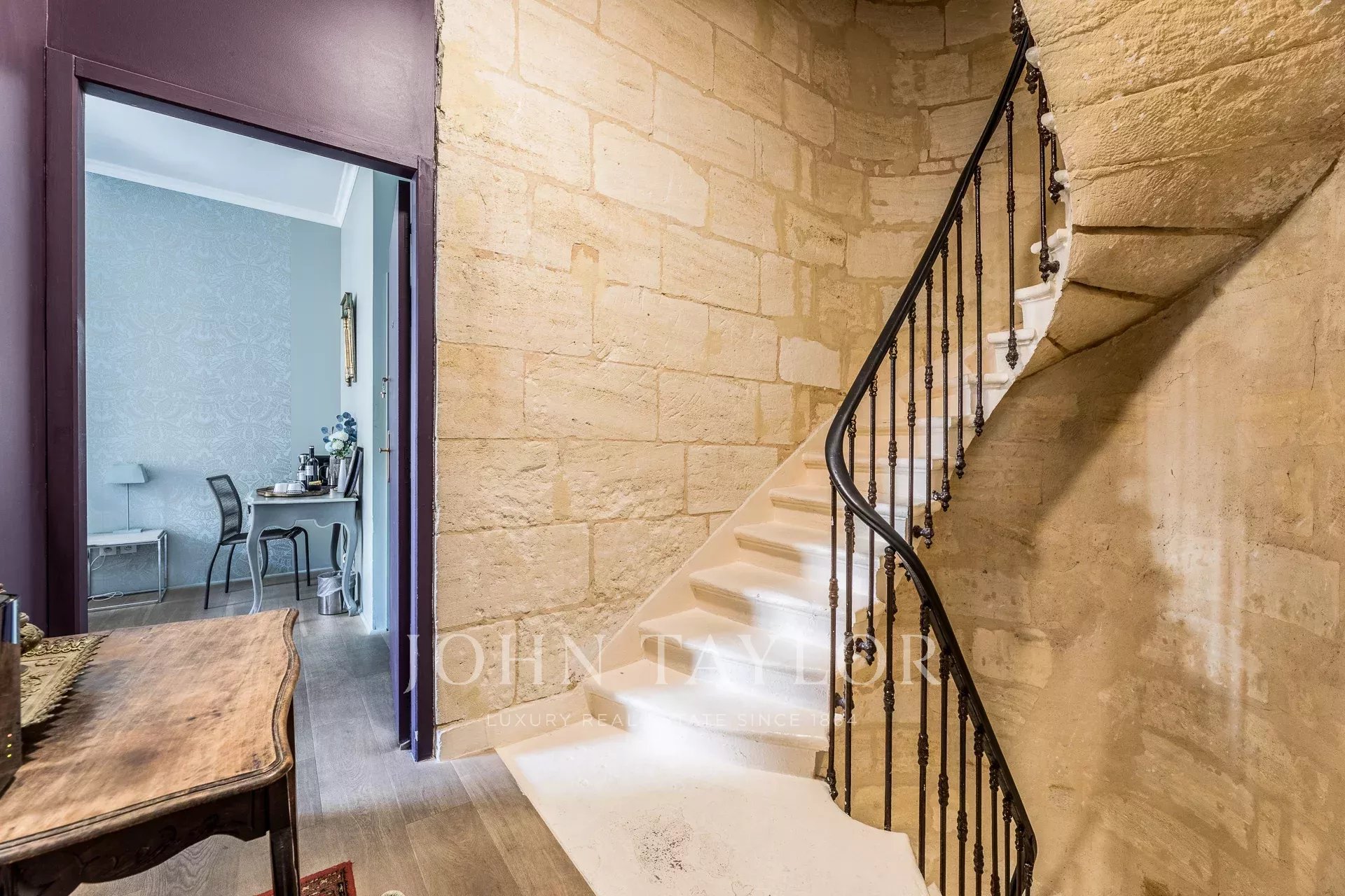 Die letzten beiden Etagen auf 100 m² werden derzeit privat genutzt mit Wohnzimmer, Küche, drei Schlafzimmern, Badezimmer, Ankleidezimmer und einer kleinen Terrasse mit freiem Blick über die Dächer. Ideal für Eigentümer oder Personal.