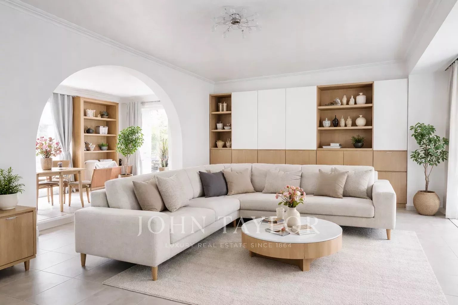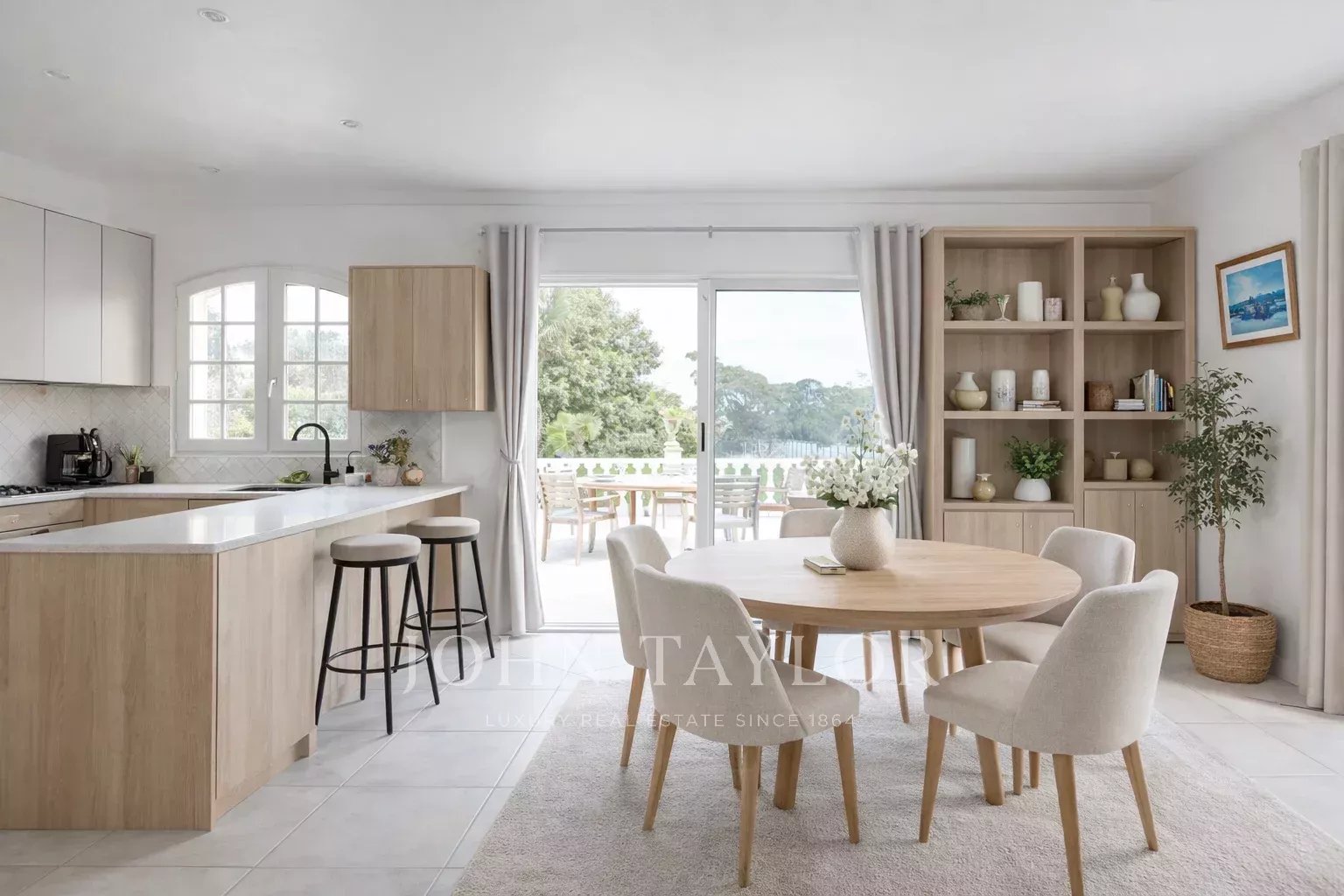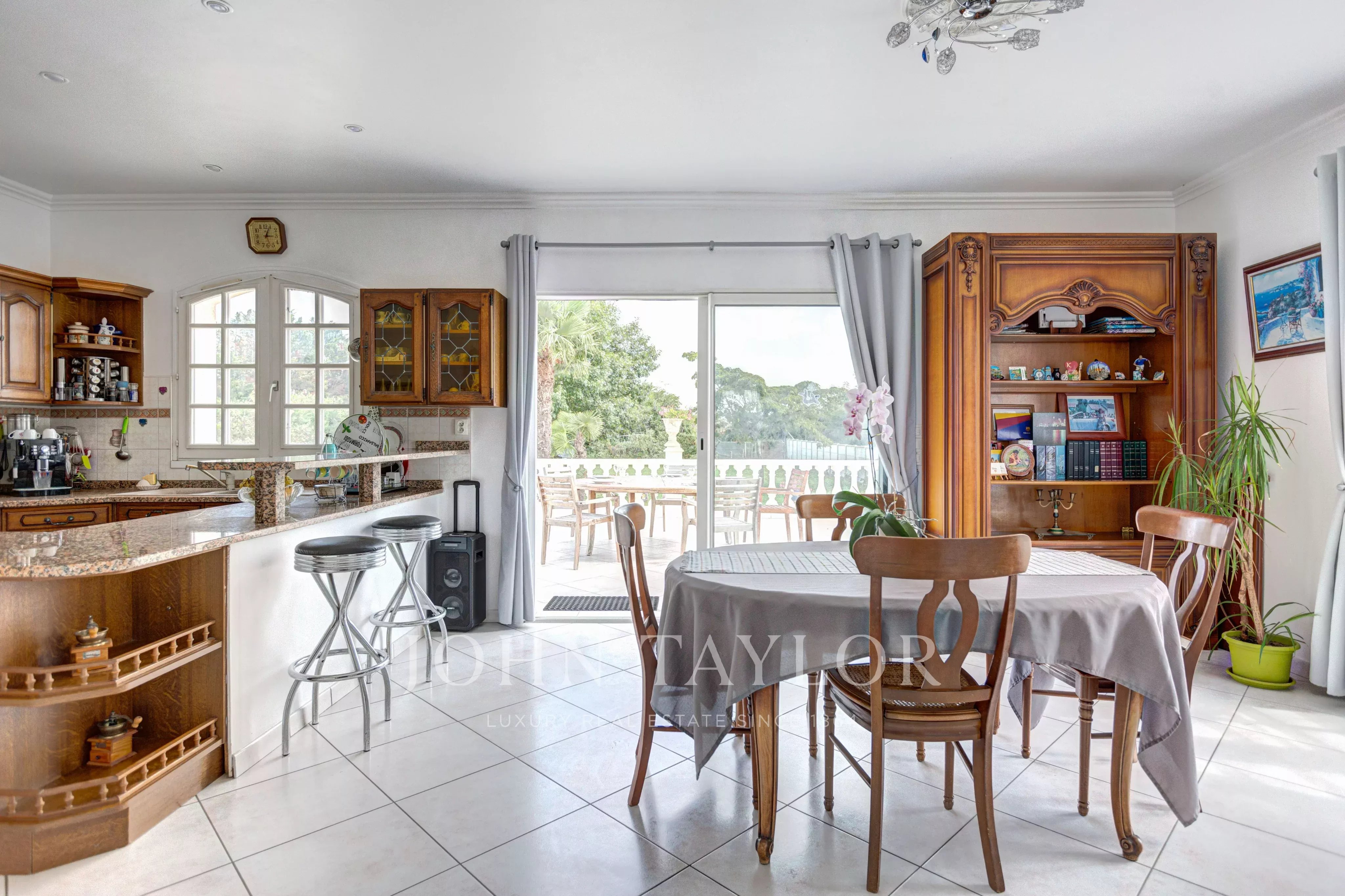 Die Eingangshalle führt zu einem großen, hellen Wohnbereich, der einen Essbereich mit offener Küche und ein Wohnzimmer verbindet und auf eine Terrasse führt, die den Garten und den Pool überblickt. Der Schlafbereich bietet drei Schlafzimmer mit Einbauschränken, ein Badezimmer mit Badewanne, Dusche und Doppelwaschbecken, eine separate Toilette und einen begehbaren Kleiderschrank.