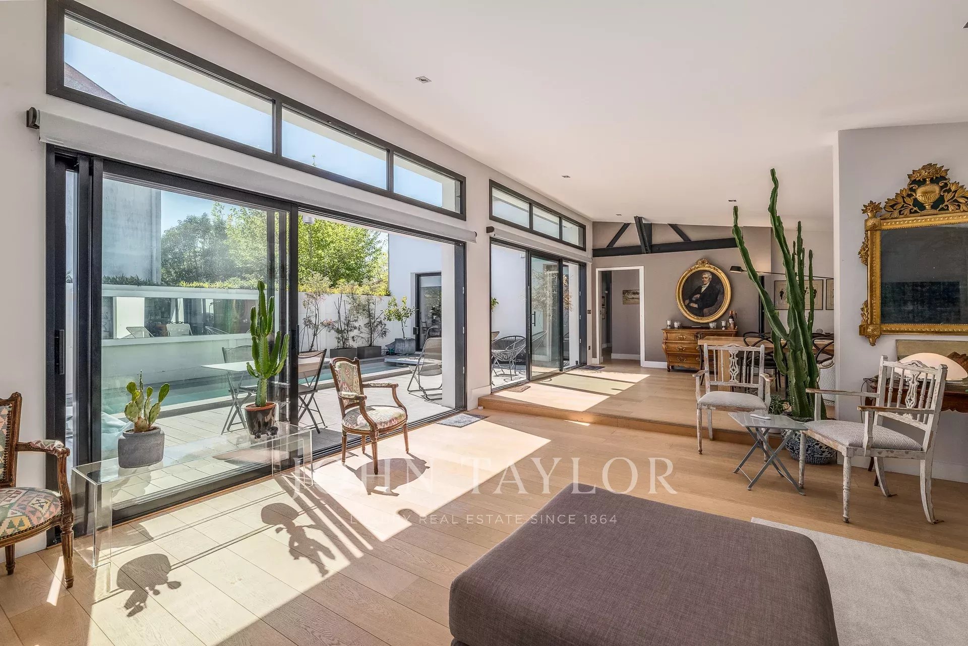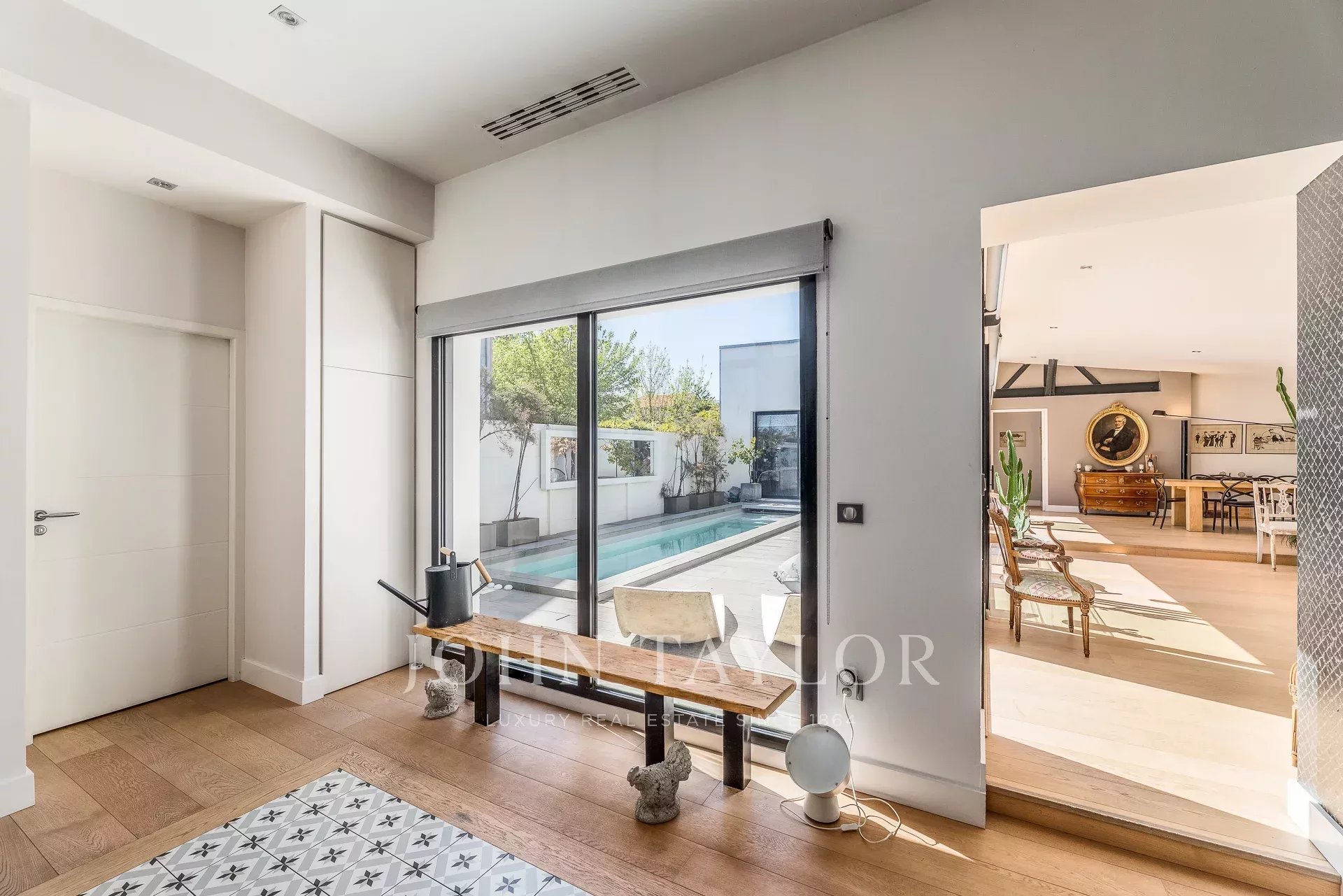 Für maximalen Komfort sorgt ein Alarmsystem mit Gegensprechanlage und Videotelefon. Die großen Schiebefenster ermöglichen einen direkten Übergang vom Innen- zum Außenbereich und bieten viel natürliches Licht. Diese Immobilie in Bordeaux Caudéran ist der perfekte Rückzugsort für alle, die modernsten Wohnkomfort in einer der schönsten Regionen Frankreichs suchen.