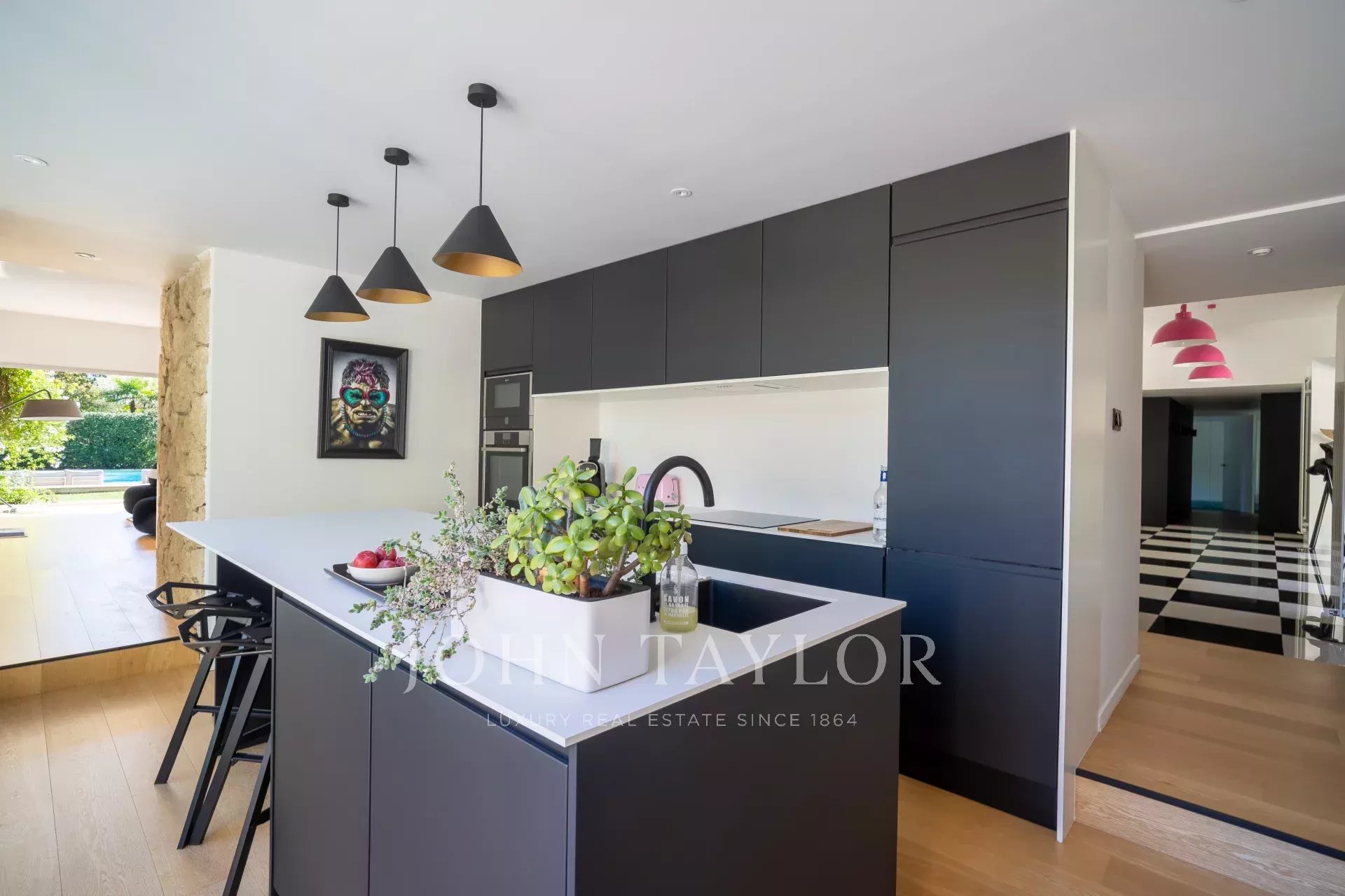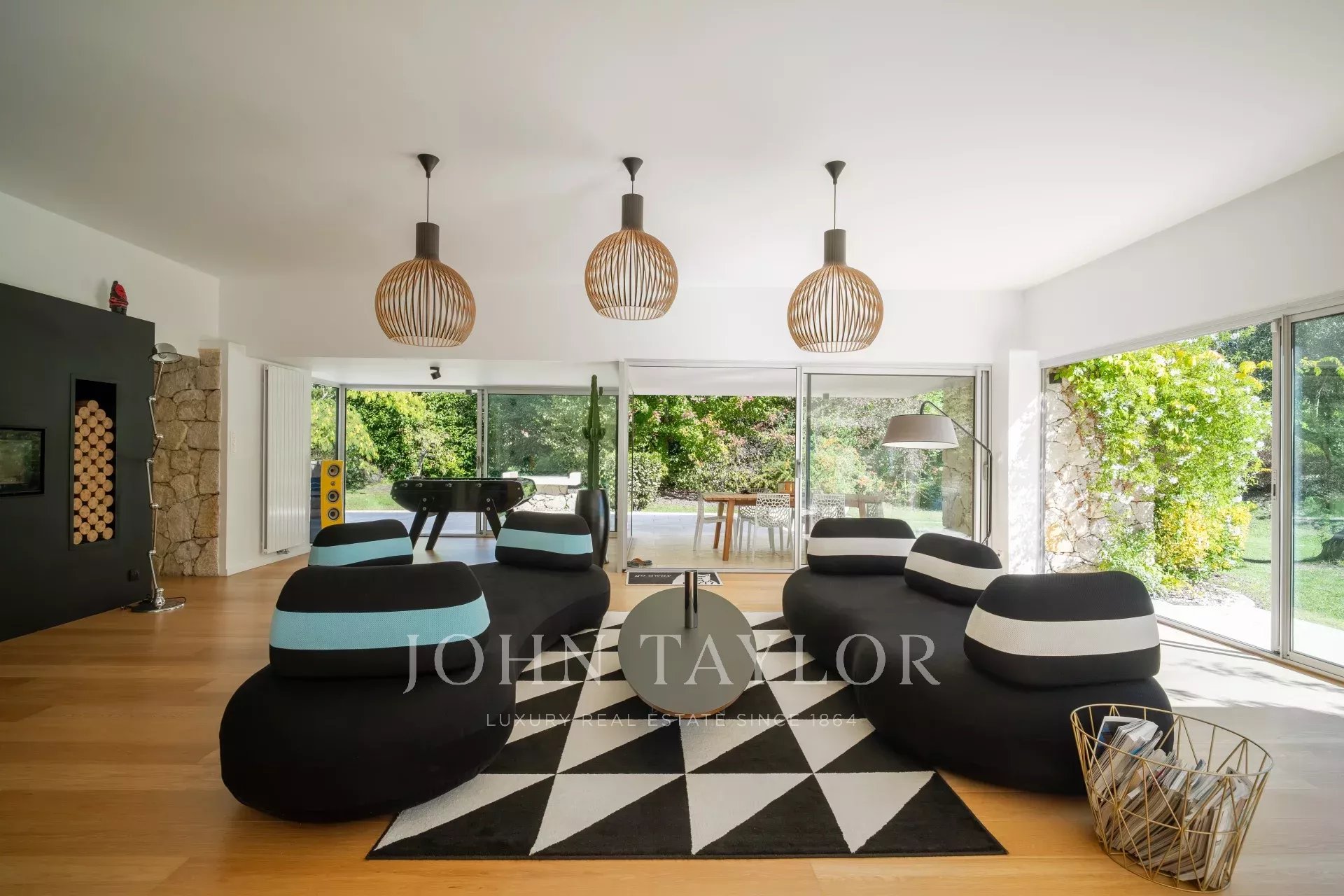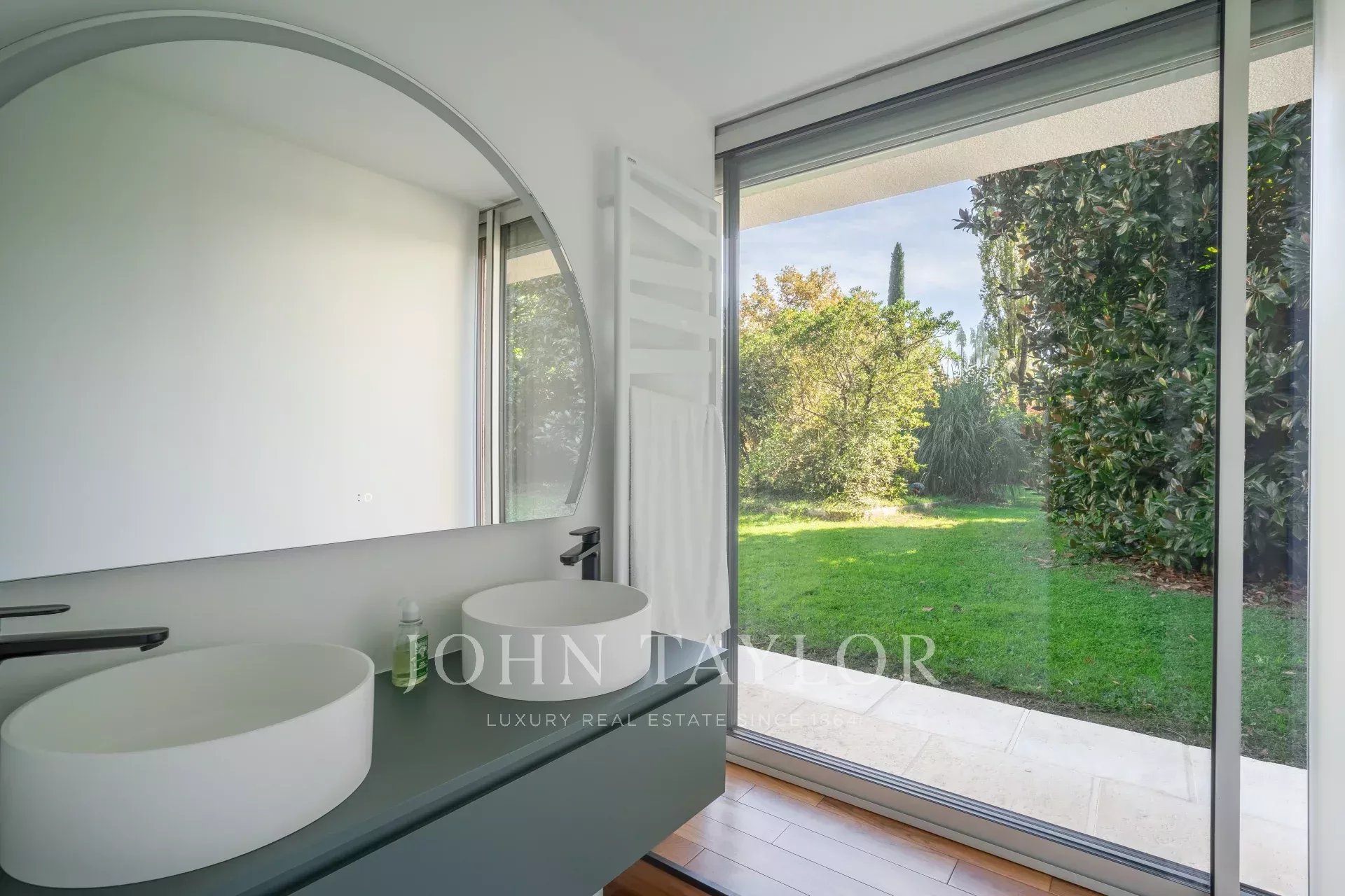 Eingebettet in eine üppige, grüne Umgebung in Gradignan bietet dieses zeitgenössische Haus aus den 1970er Jahren eine Wohnfläche von 270 m². Es wurde im Jahr 2022 vollständig renoviert und überzeugt durch hochwertige Ausstattungen, die modernes Design und edle Materialien harmonisch miteinander verbinden.