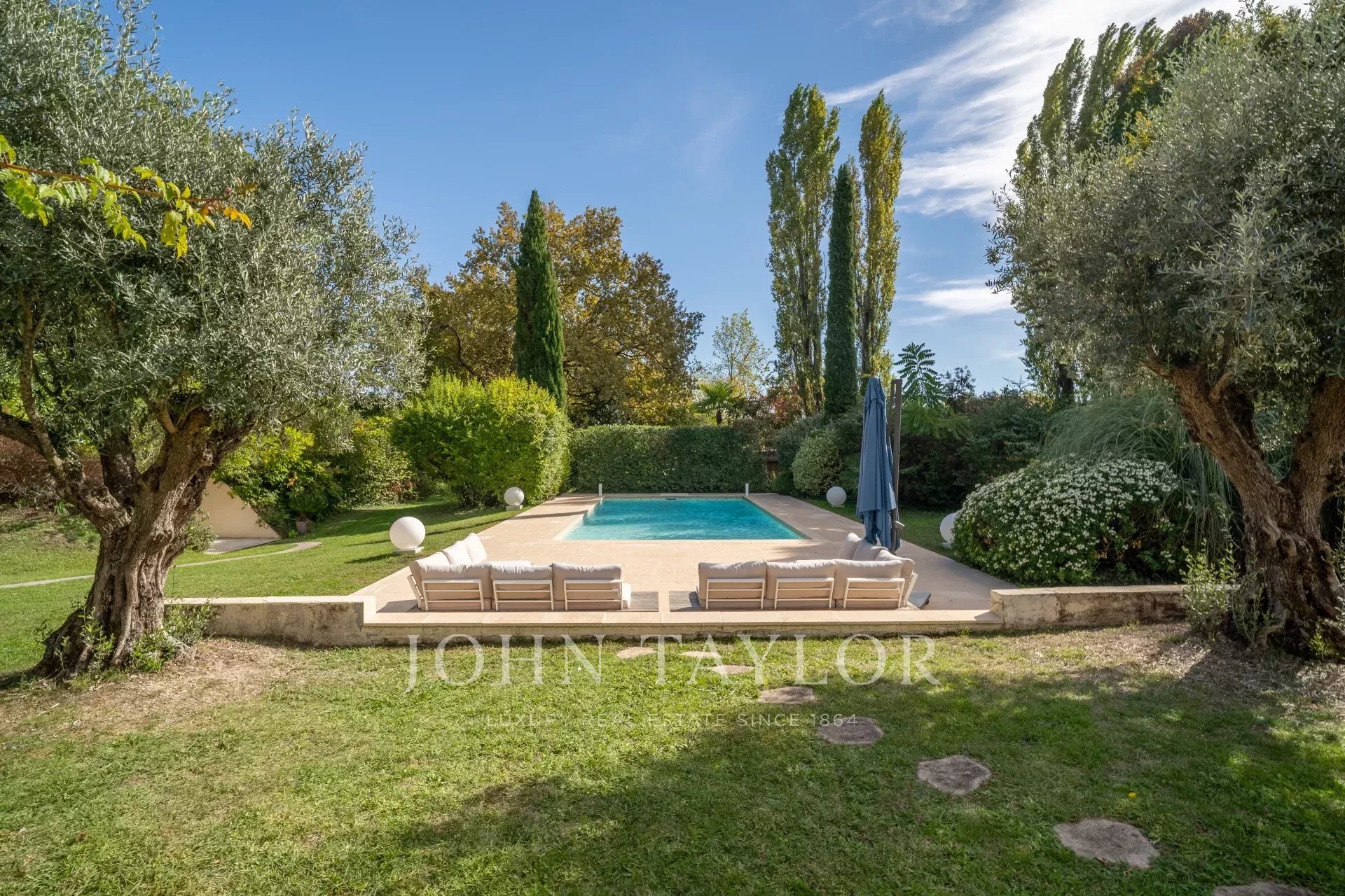 Im Außenbereich bietet das eingezäunte, angelegte Grundstück von 6.350 m², bepflanzt mit verschiedenen Baumarten (Magnolie, Hainbuche usw.), ein beheiztes Schwimmbad, großzügige Terrassen, ein Doppelcarport sowie ein Nebengebäude (ca. 20 m²) mit einem Raum und einem Weinkeller, das je nach Ihren Vorstellungen weiteres Potenzial bietet. Ein Brunnen dient ideal zur Gartenbewässerung.