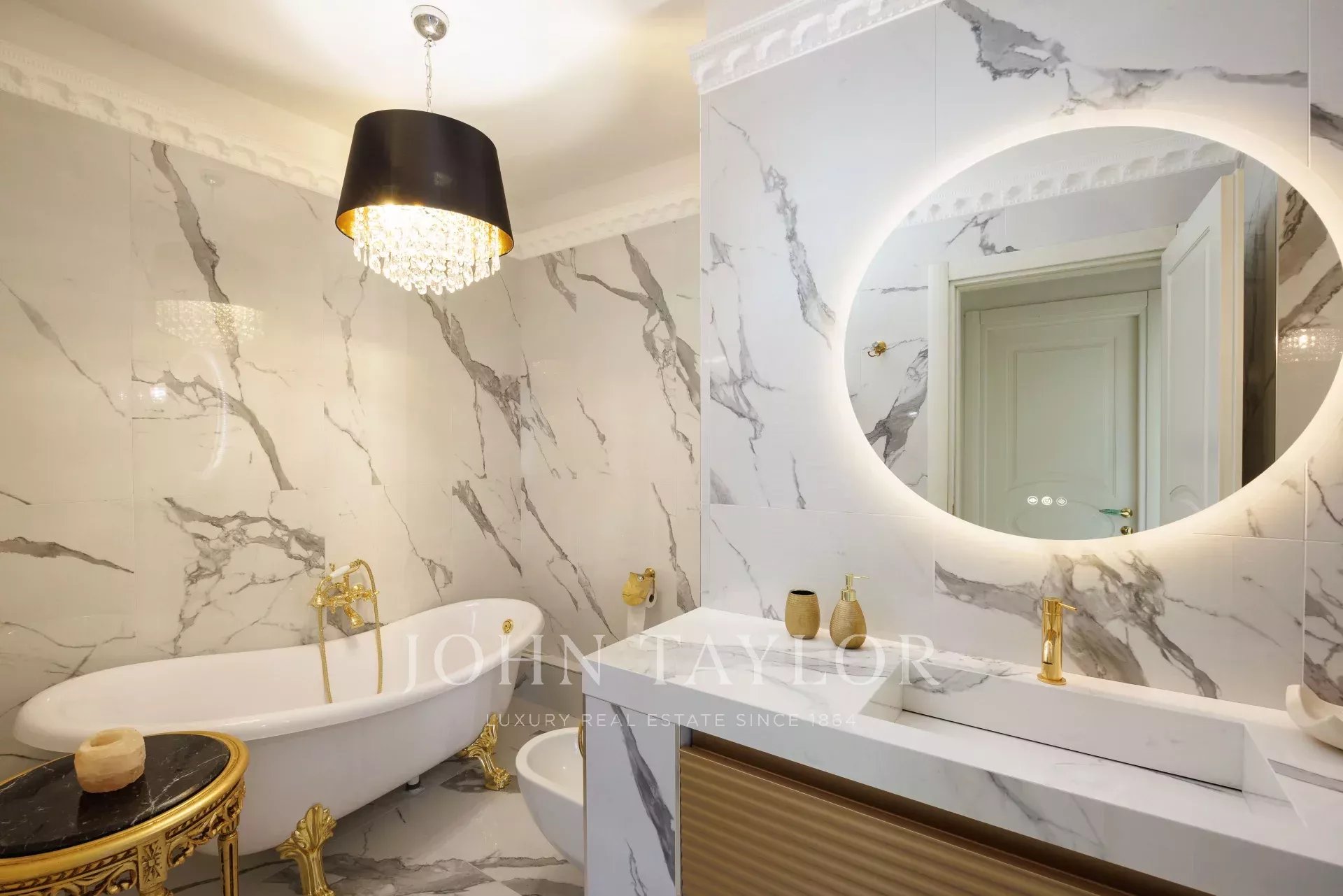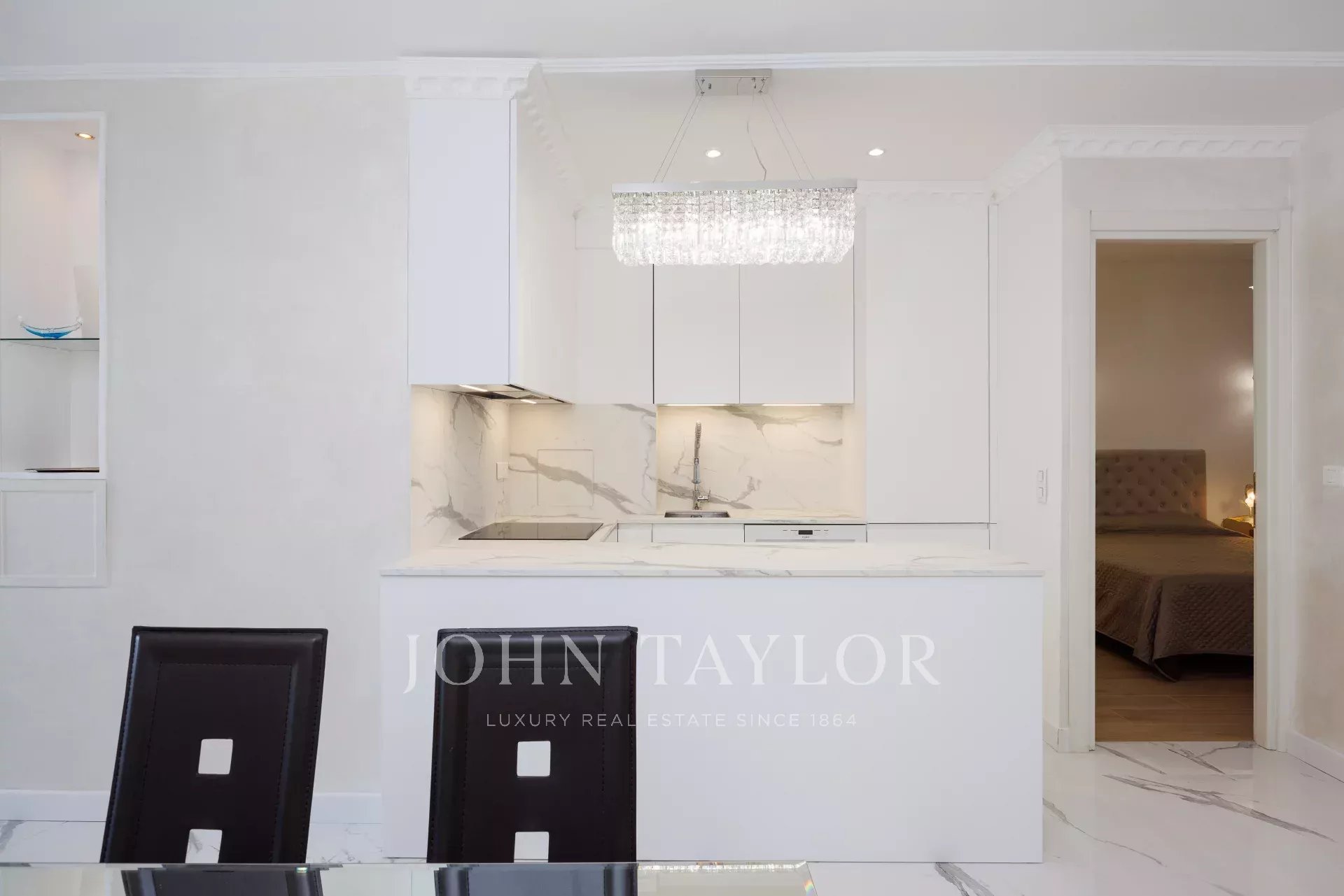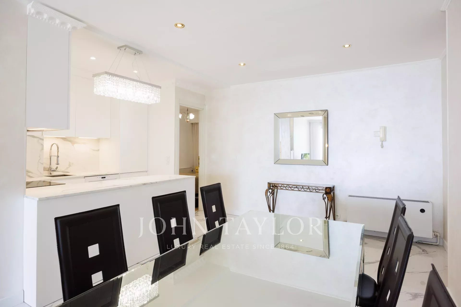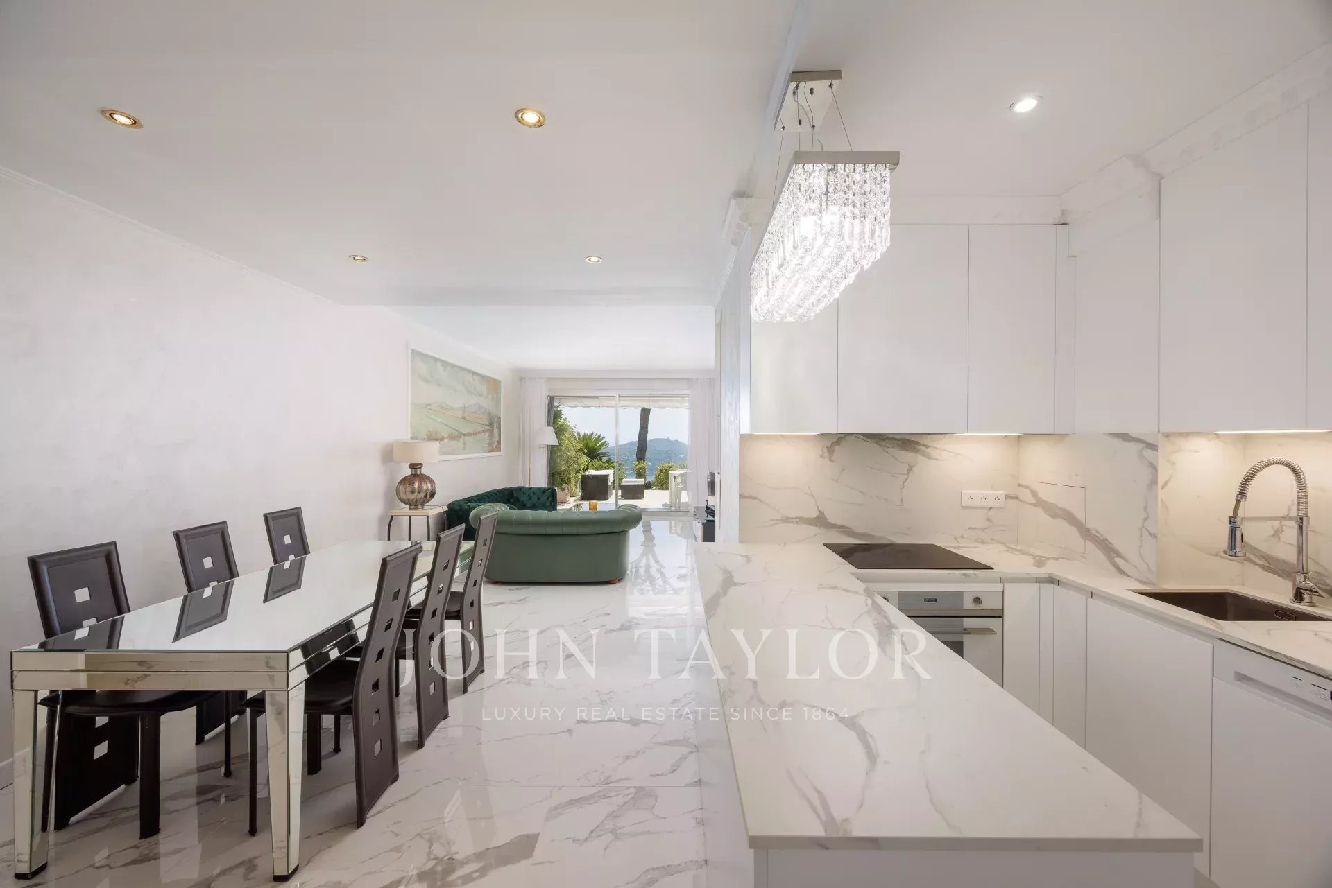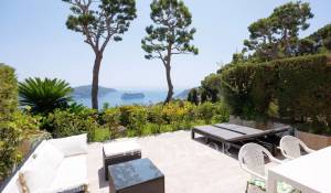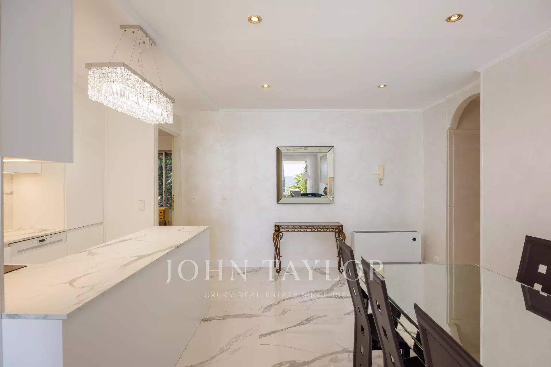 In einer gesicherten Luxusresidenz bietet diese angenehme, kürzlich renovierte 3-Zimmer-Wohnung von ca. 85 m² im Hochparterre mit 37 m² Terrasse einen sehr schönen Blick auf das Meer und Cap Ferrat.