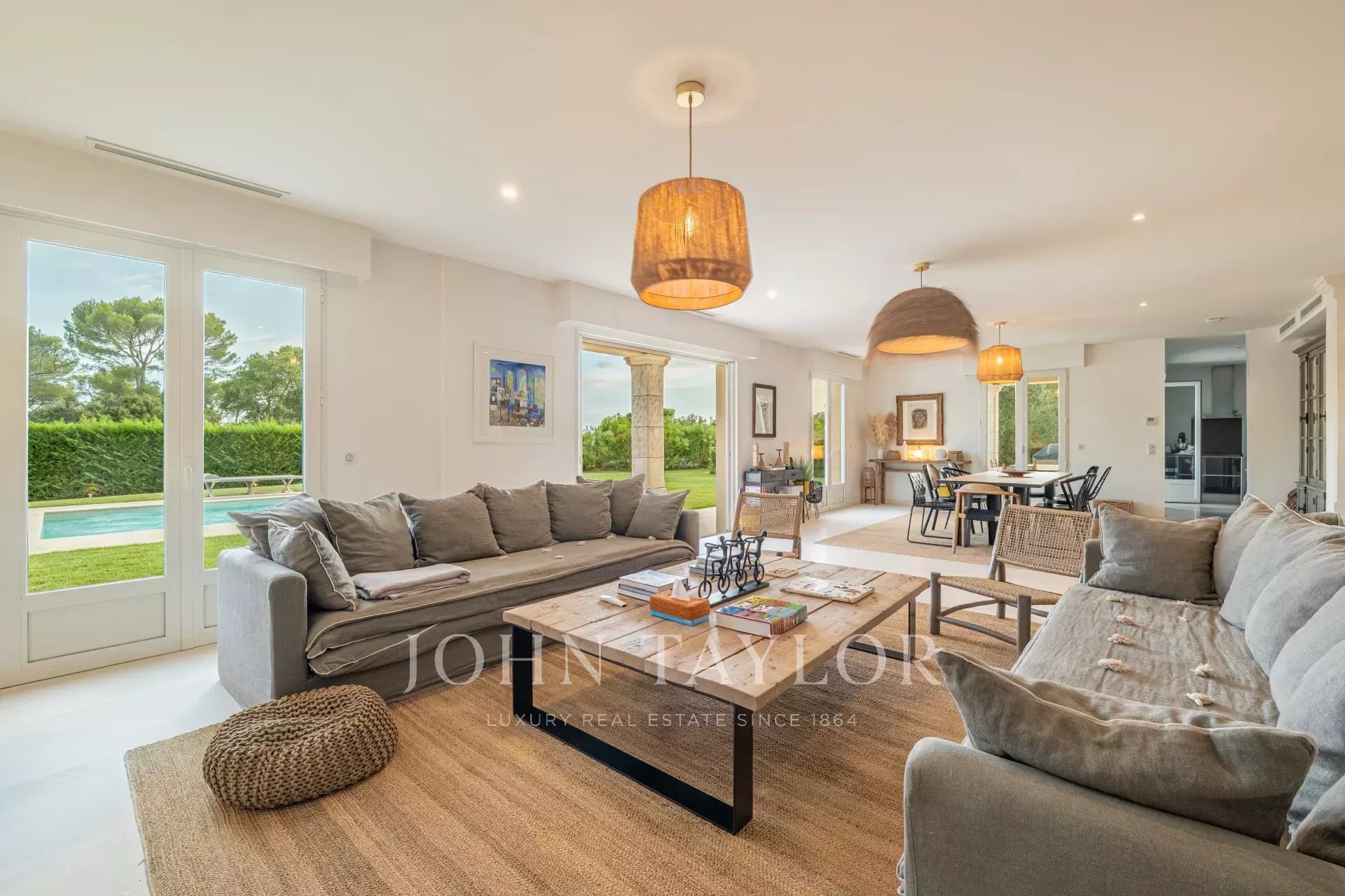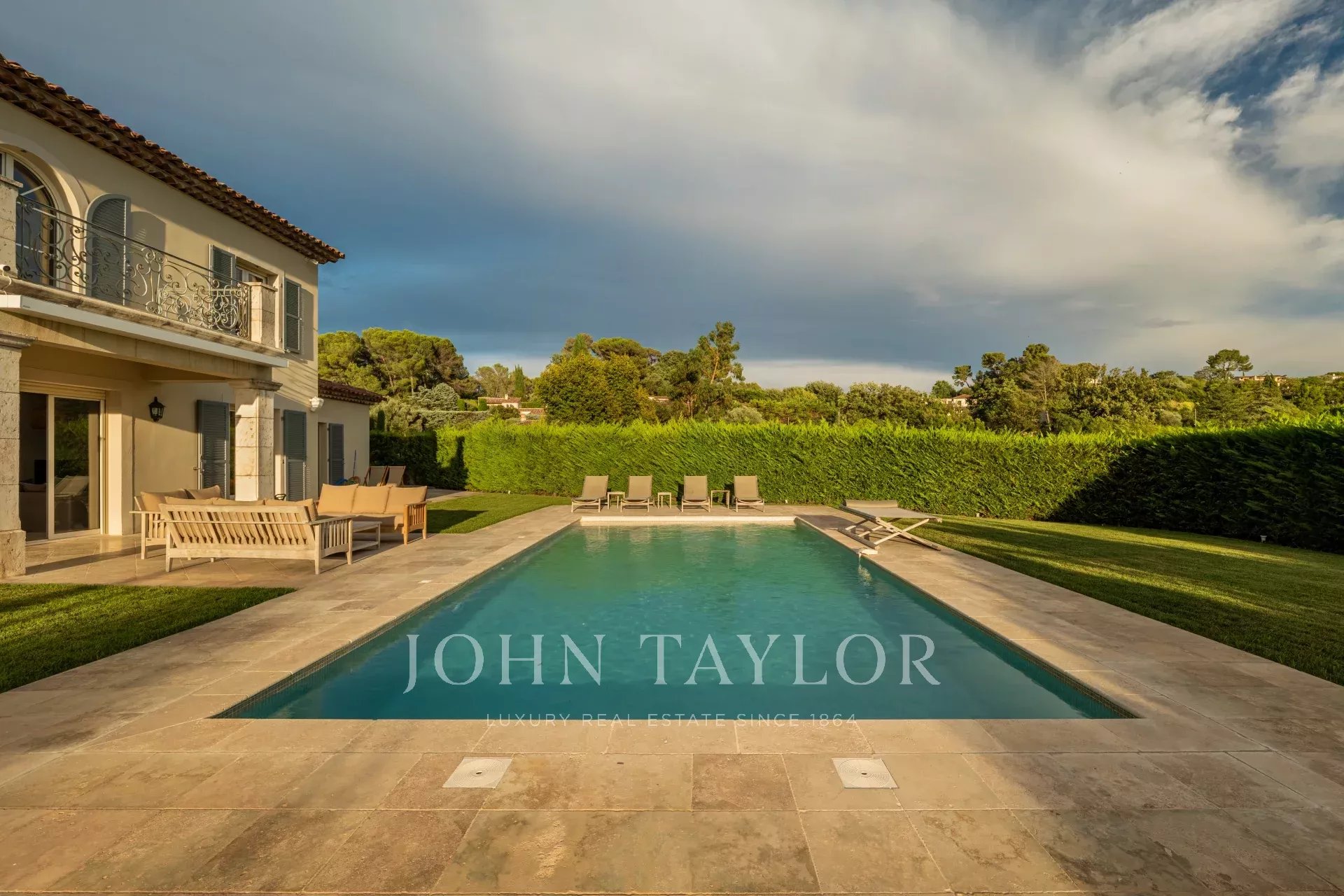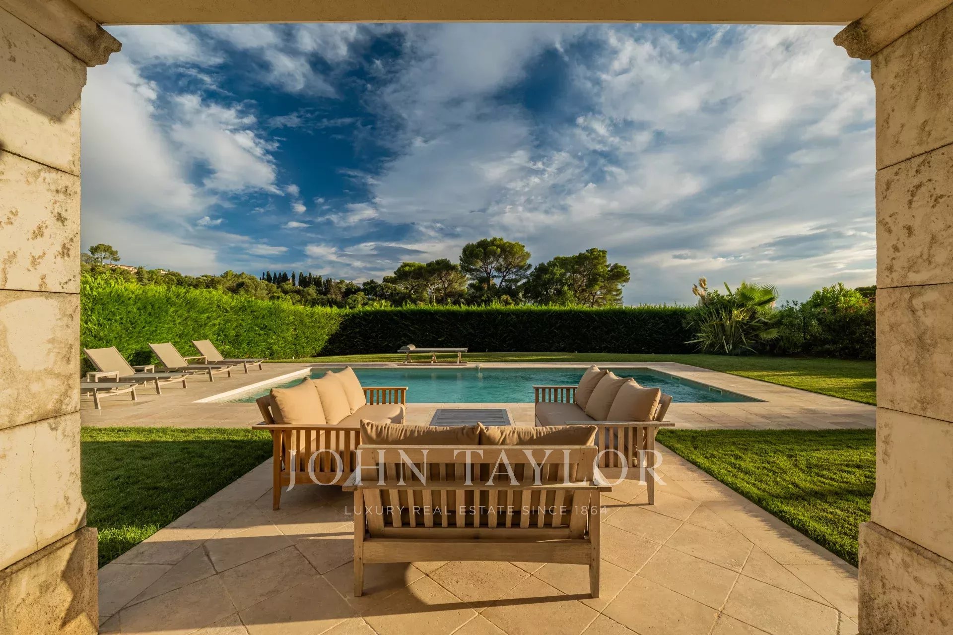 Eine ideale Villa für eine Familie. Diese Immobilie vereint modernen Komfort, luxuriöse Leistungen und eine privilegierte Lage in unmittelbarer Nähe des alten Dorfes Mougins, der internationalen Schulen, der berühmten Golfplätze und von Cannes und der Croisette.