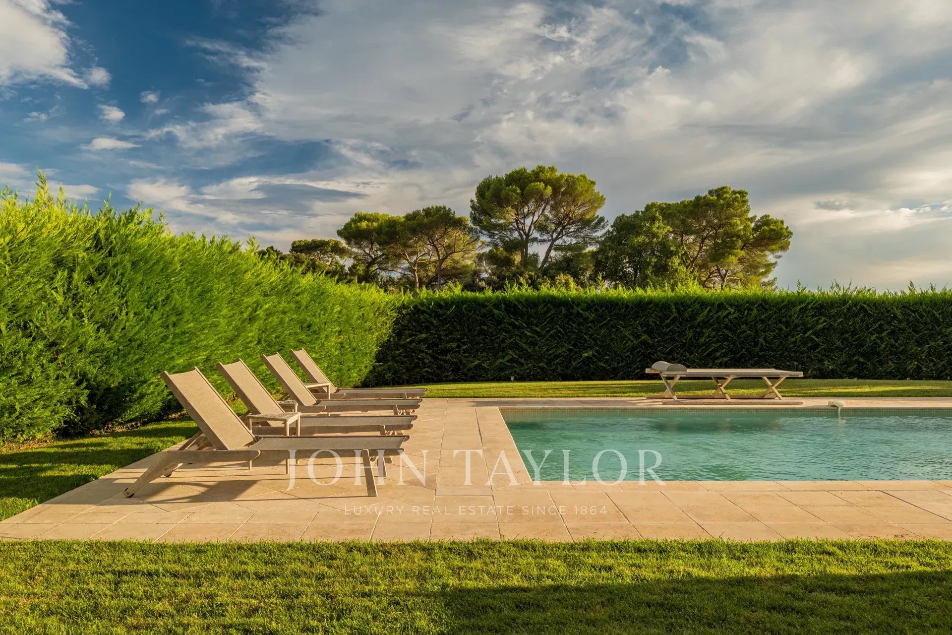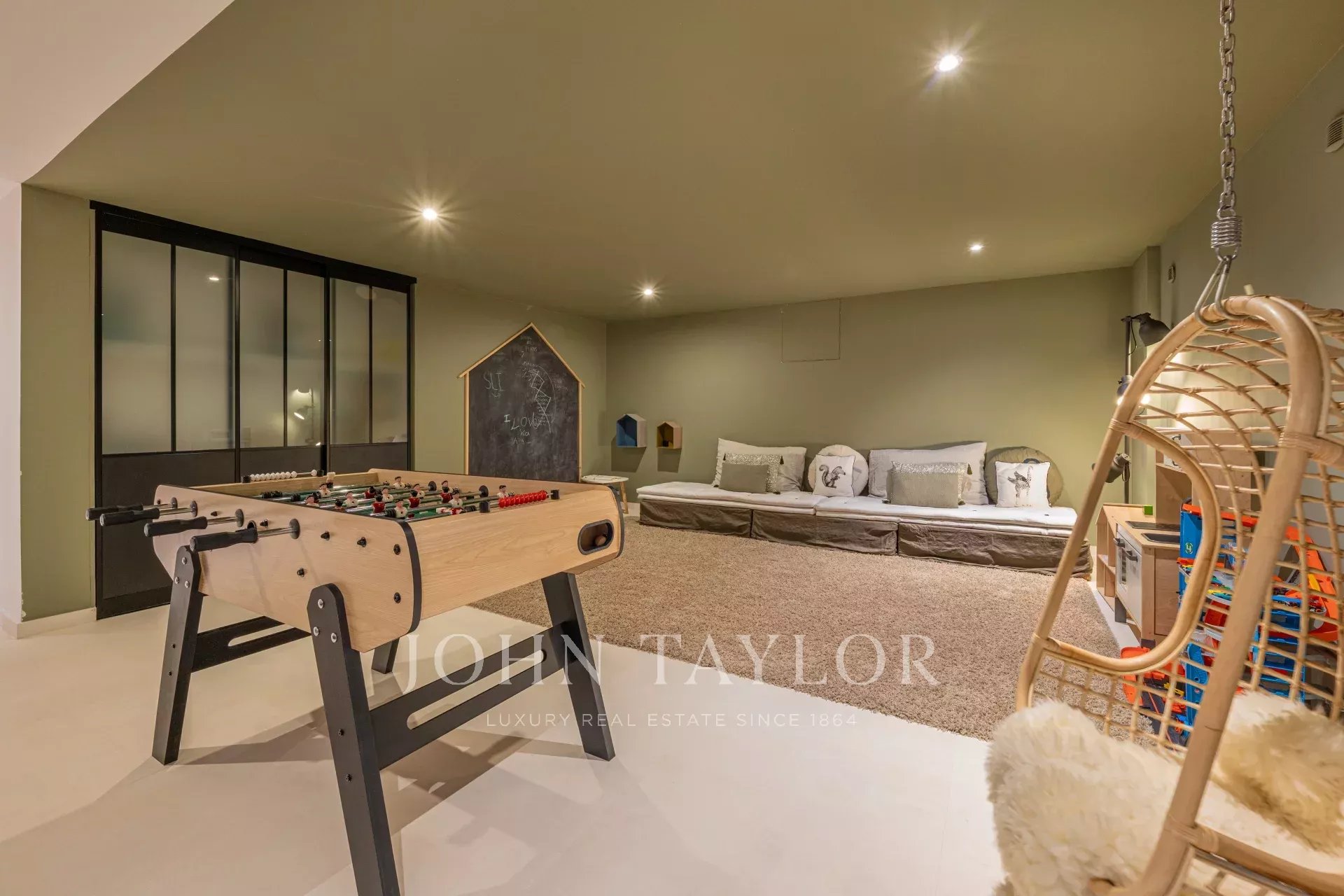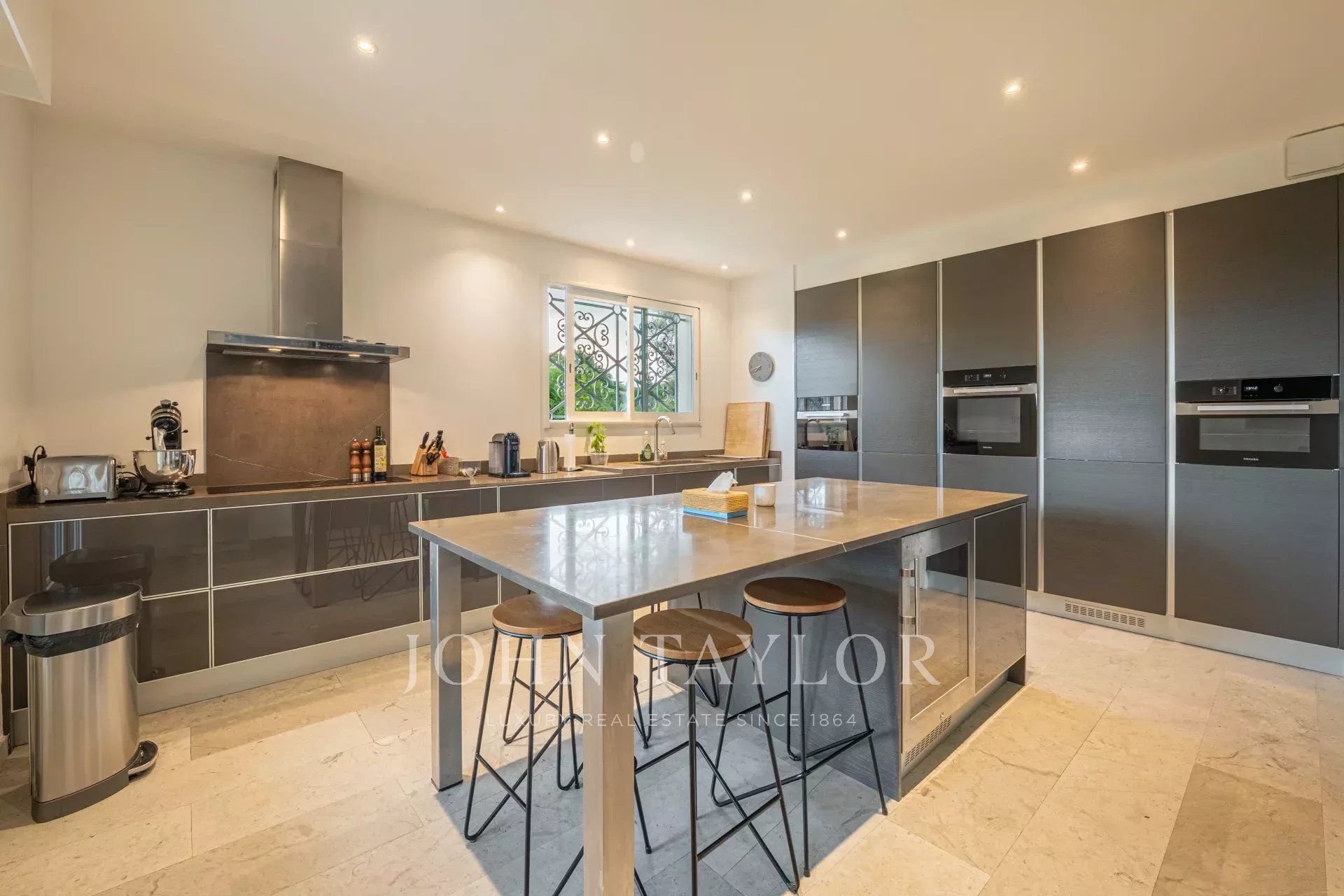 Eine ideale Villa für eine Familie. Diese Immobilie vereint modernen Komfort, luxuriöse Leistungen und eine privilegierte Lage in unmittelbarer Nähe des alten Dorfes Mougins, der internationalen Schulen, der berühmten Golfplätze und von Cannes und der Croisette.