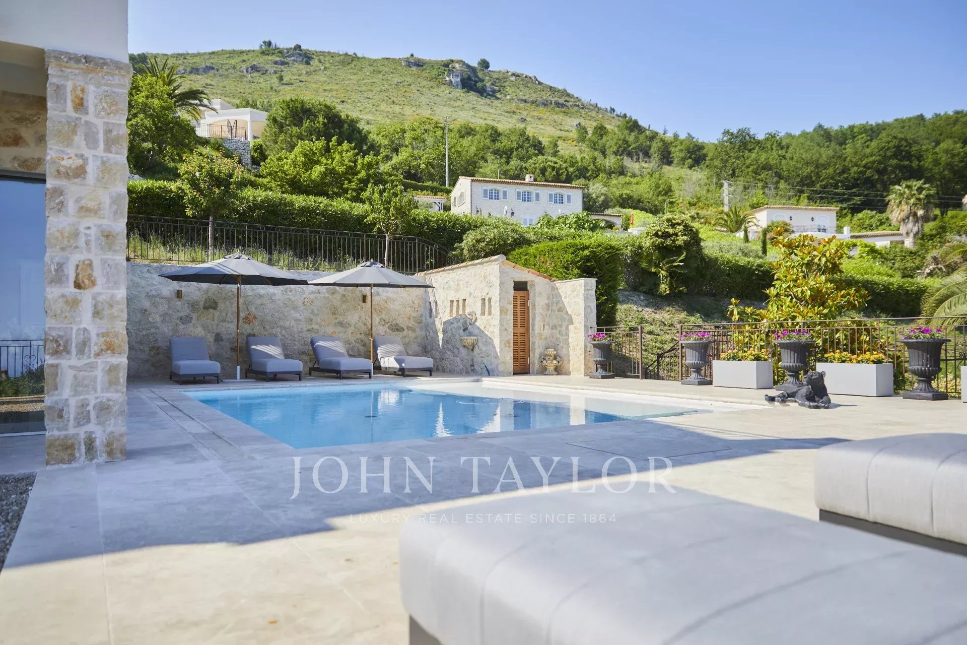 Ideale Lage in der Nähe des Flughafens Nizza, 40 Minuten von Nizza, Cannes und Antibes entfernt, aber in einer erholsamen Umgebung im Hinterland.