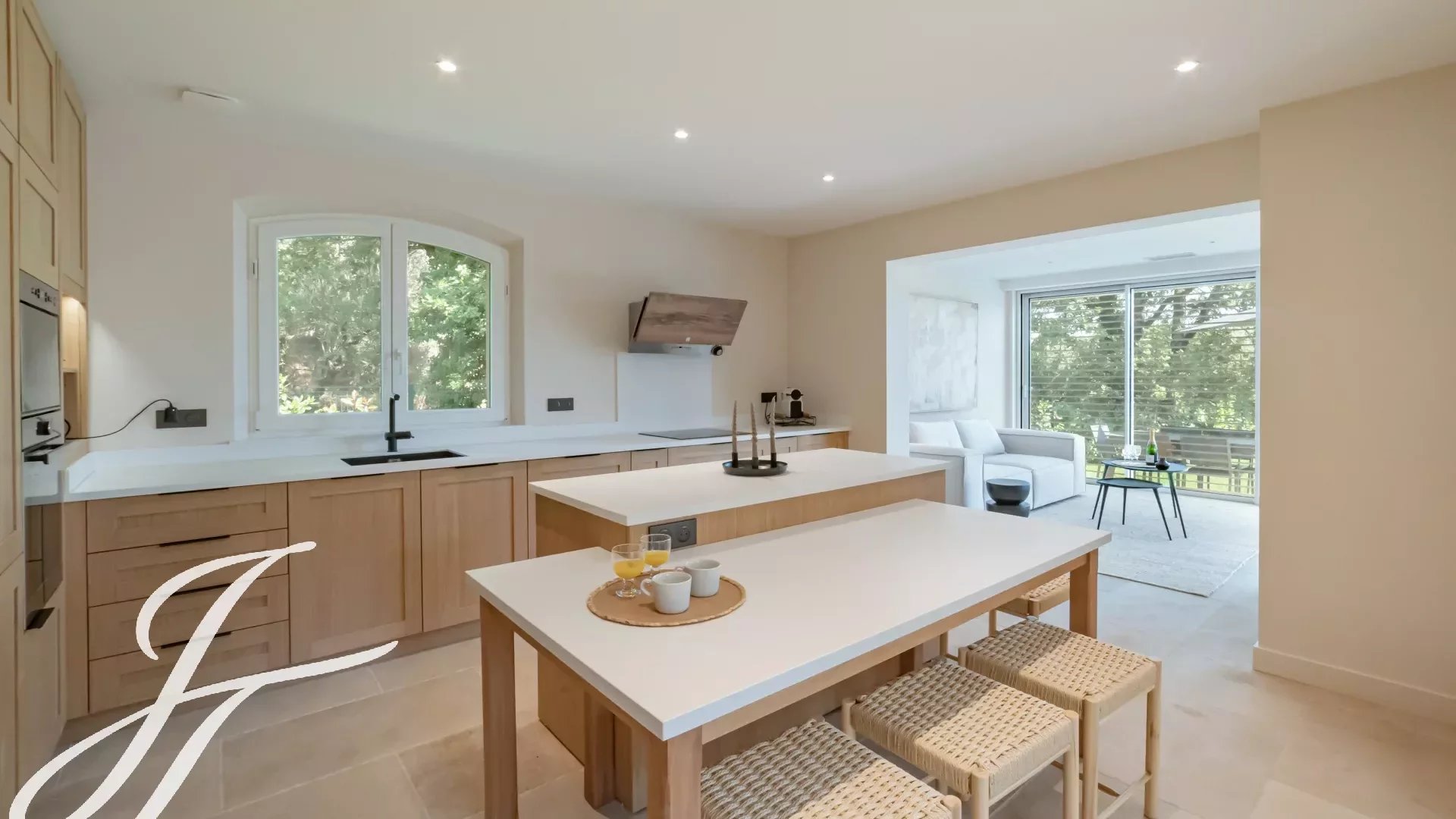 Der Geist dieses Hauses liegt in der Wahl edler und zeitloser Materialien: Burgunderstein, Massivparkett und Wände, die durch Kalkmalereien verschönert sind. Jedes Detail wurde bedacht, um einen harmonischen Lebensraum zu schaffen, in dem Komfort und Ästhetik elegant aufeinandertreffen.