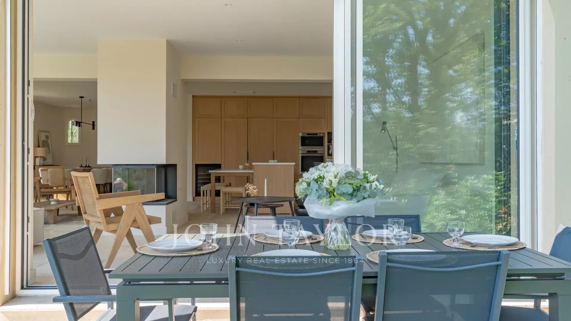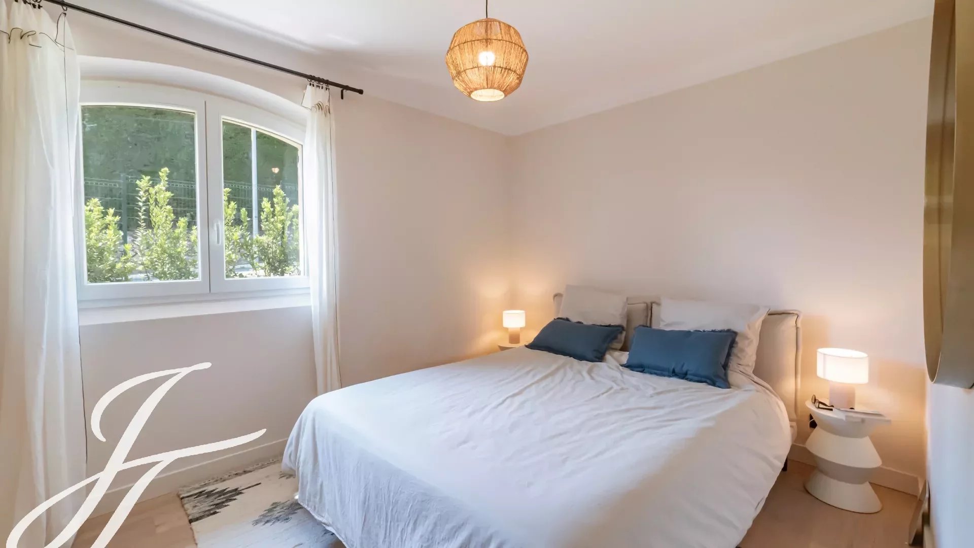 In einer ruhigen Umgebung, im Herzen eines begehrten Wohnviertels, bietet Ihnen diese prächtige ebenerdige Villa, die vollständig mit äußerster Sorgfalt renoviert wurde, eine unvergleichliche Lebensqualität. Wenige Gehminuten vom charmanten Dorf Valbonne entfernt, verbindet sie authentische Atmosphäre und Modernität.