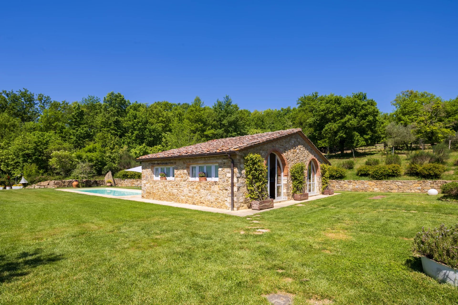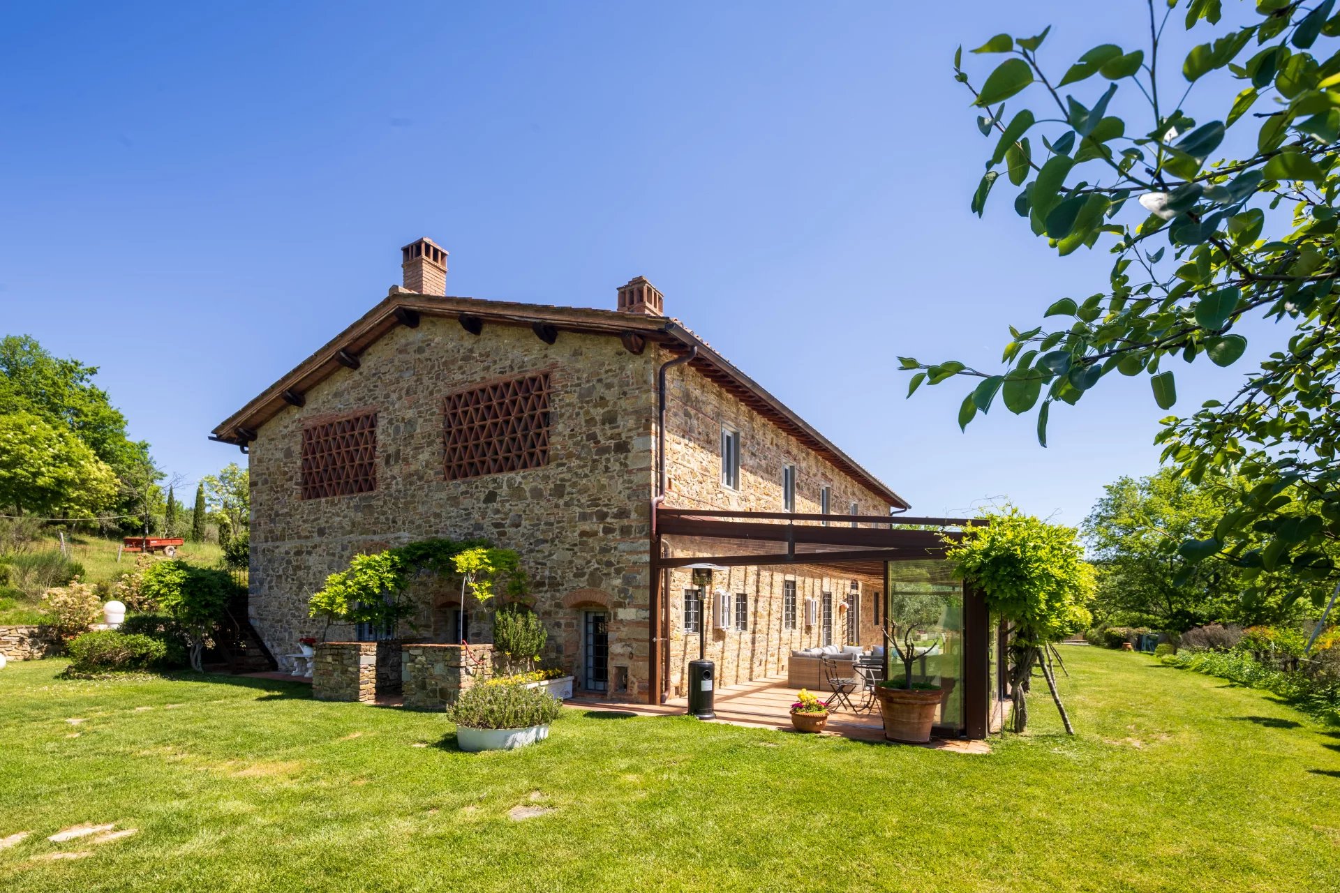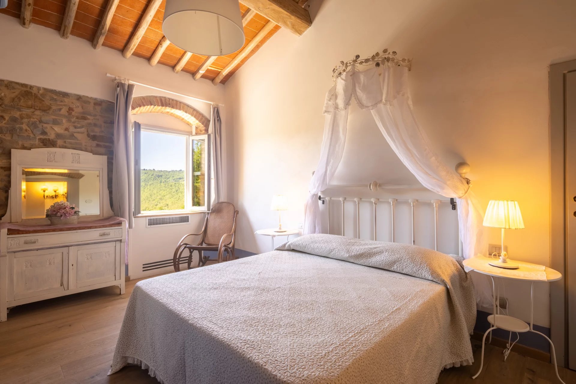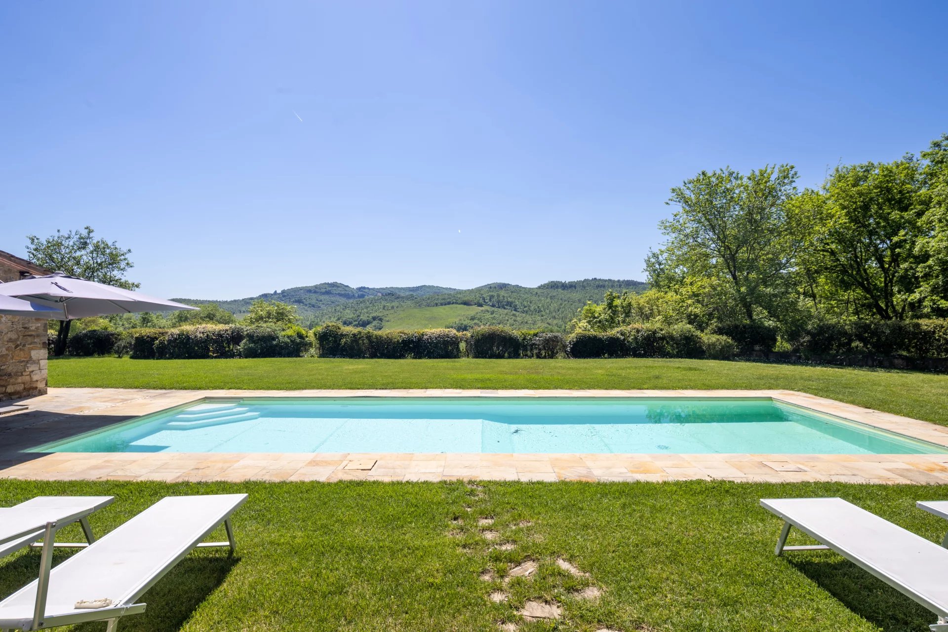 Das Anwesen hat einen Panoramablick auf die umliegenden Hügel und bietet viel Freiraum, um in Kontakt mit der Natur zu leben. Obwohl es sich in einer zurückhaltenden und ruhigen Umgebung befindet, ist es von den Hauptverkehrswegen aus leicht erreichbar und liegt in der Nähe der Städte.