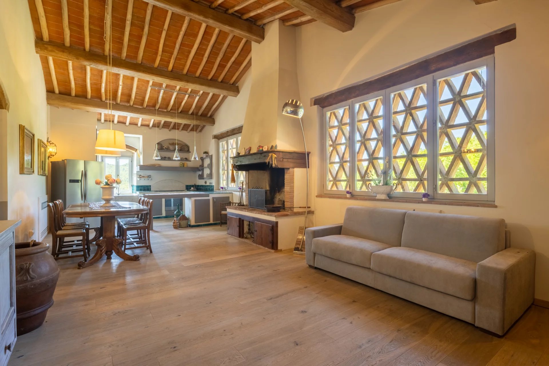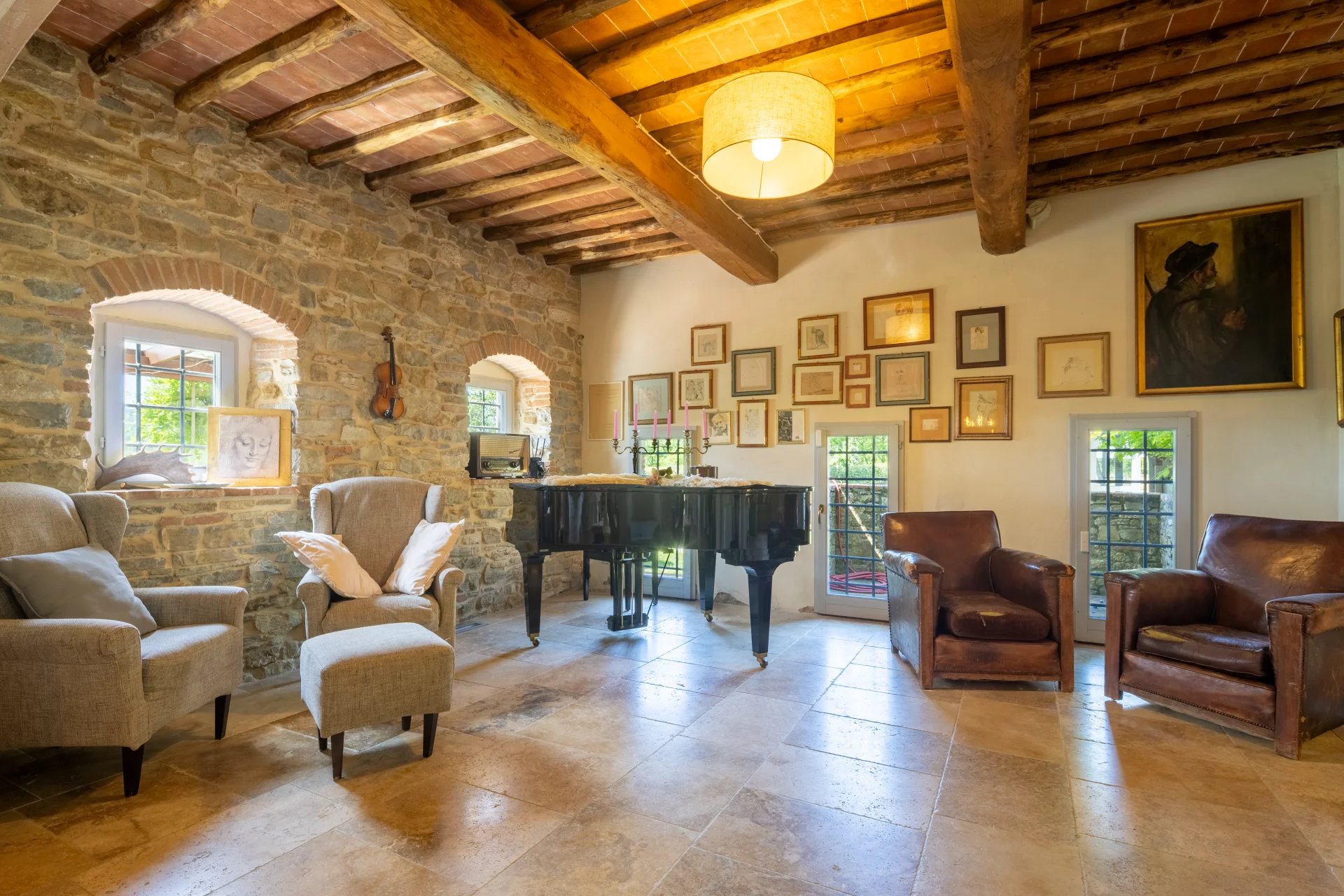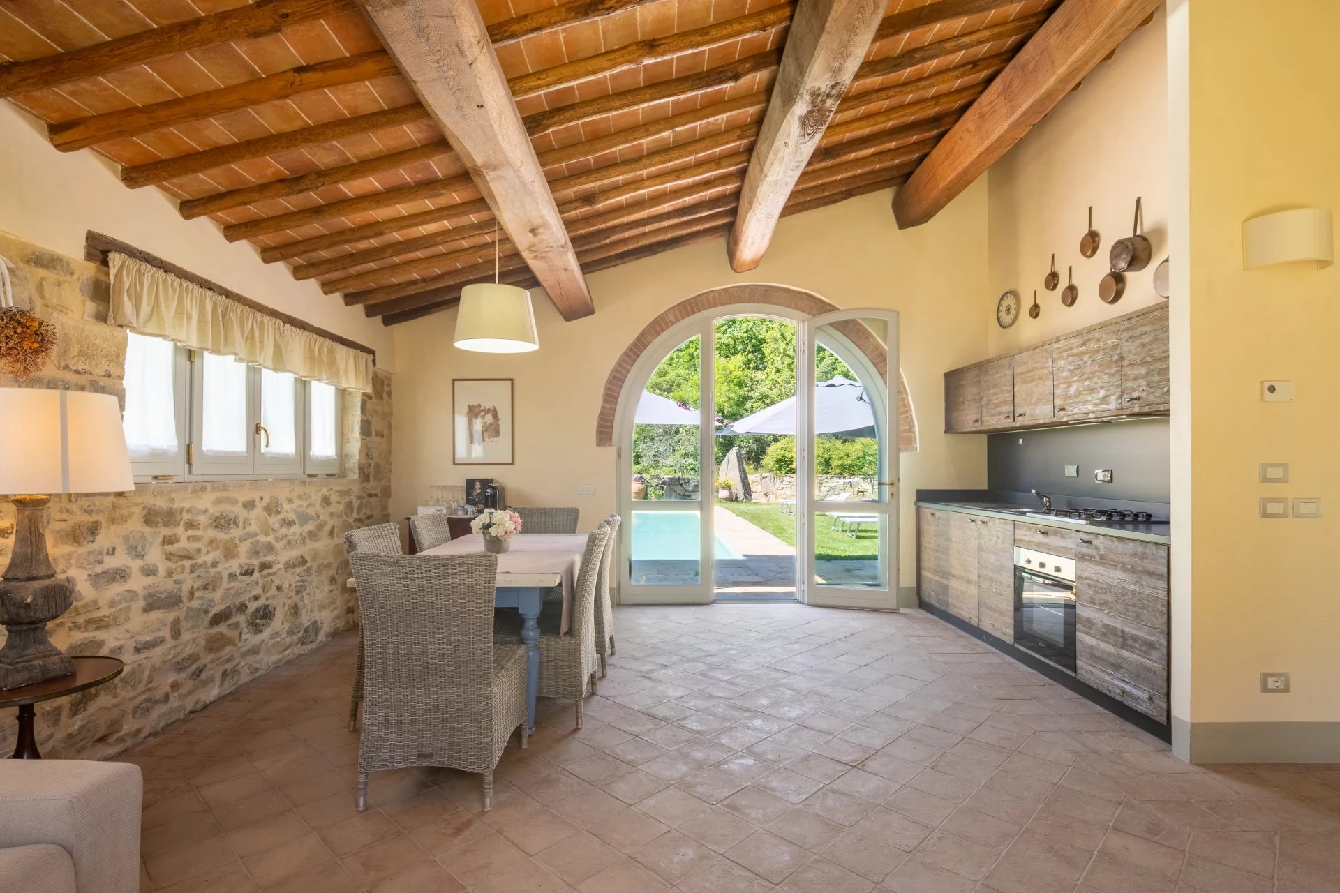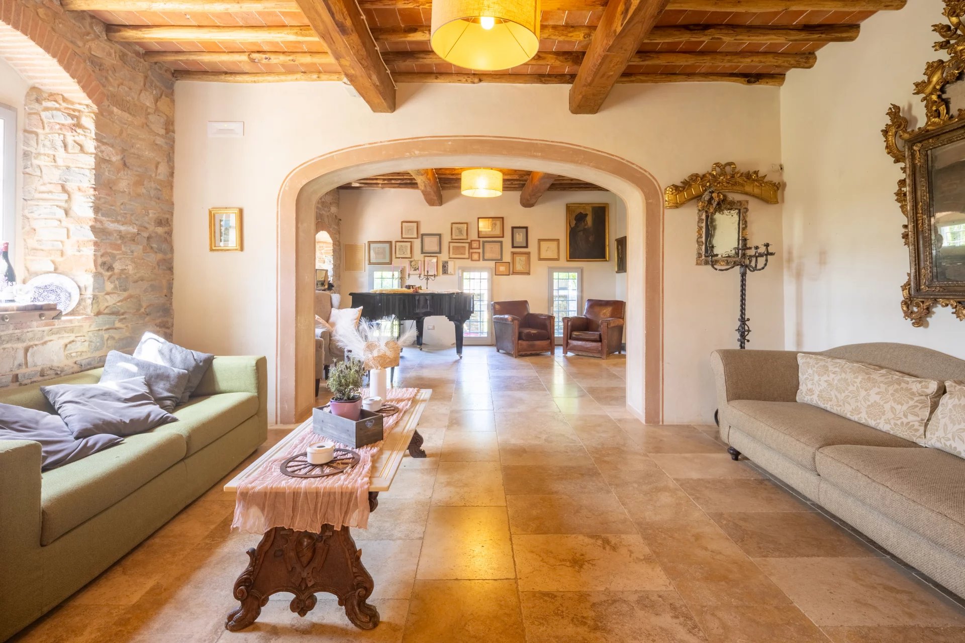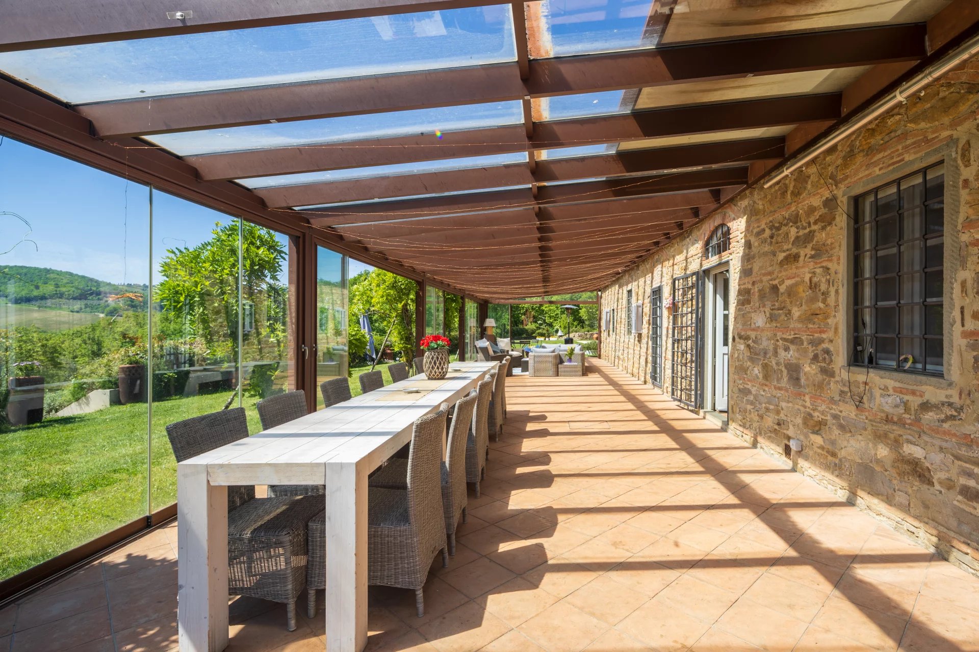 Das Anwesen hat einen Panoramablick auf die umliegenden Hügel und bietet viel Freiraum, um in Kontakt mit der Natur zu leben. Obwohl es sich in einer zurückhaltenden und ruhigen Umgebung befindet, ist es von den Hauptverkehrswegen aus leicht erreichbar und liegt in der Nähe der Städte.