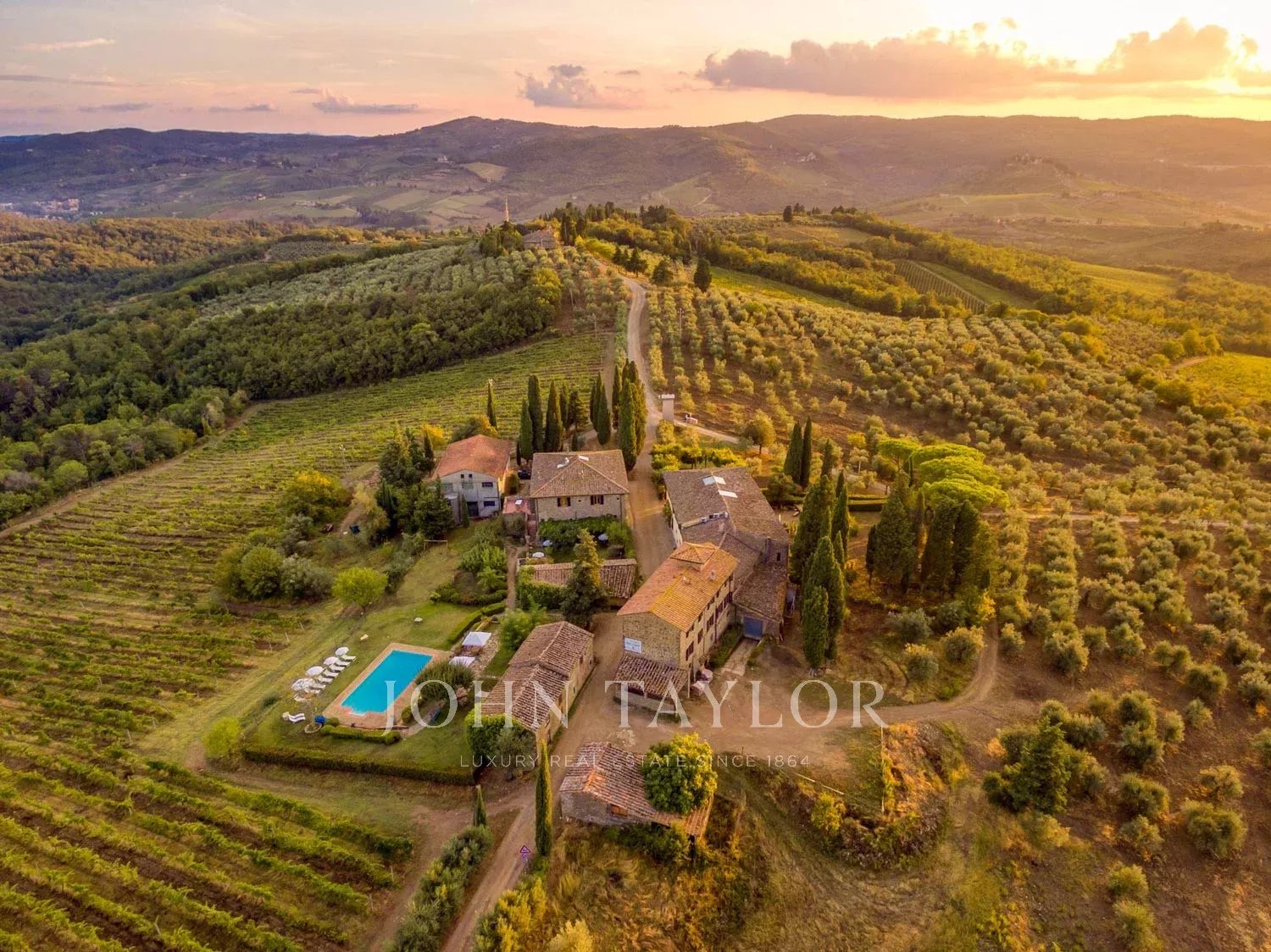 In den malerischen Hügeln der Toskana, im Herzen des Produktionsgebiets des Chianti Classico DOCG, liegt ein charmanter Weiler, der aus drei Hauptgebäuden besteht.