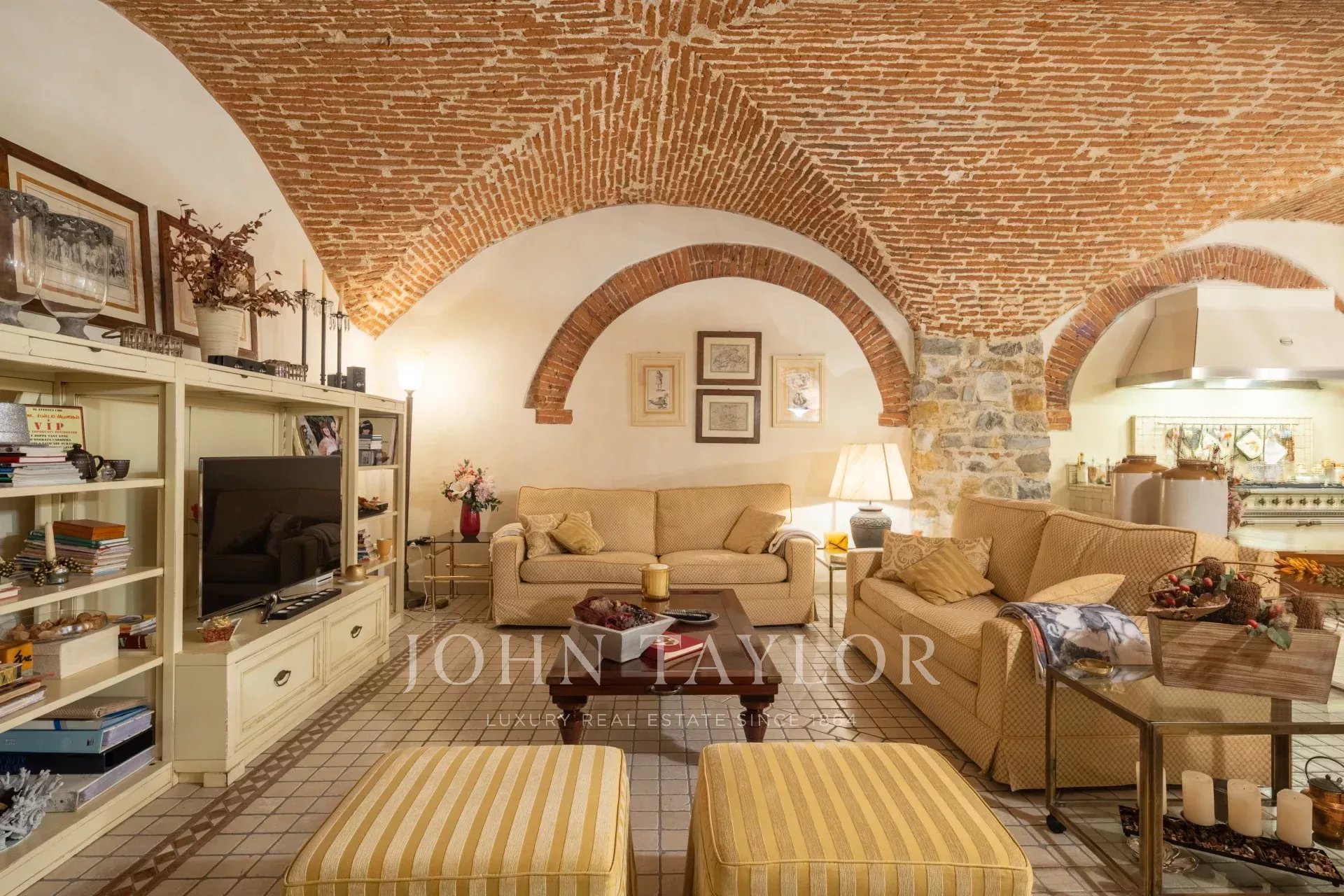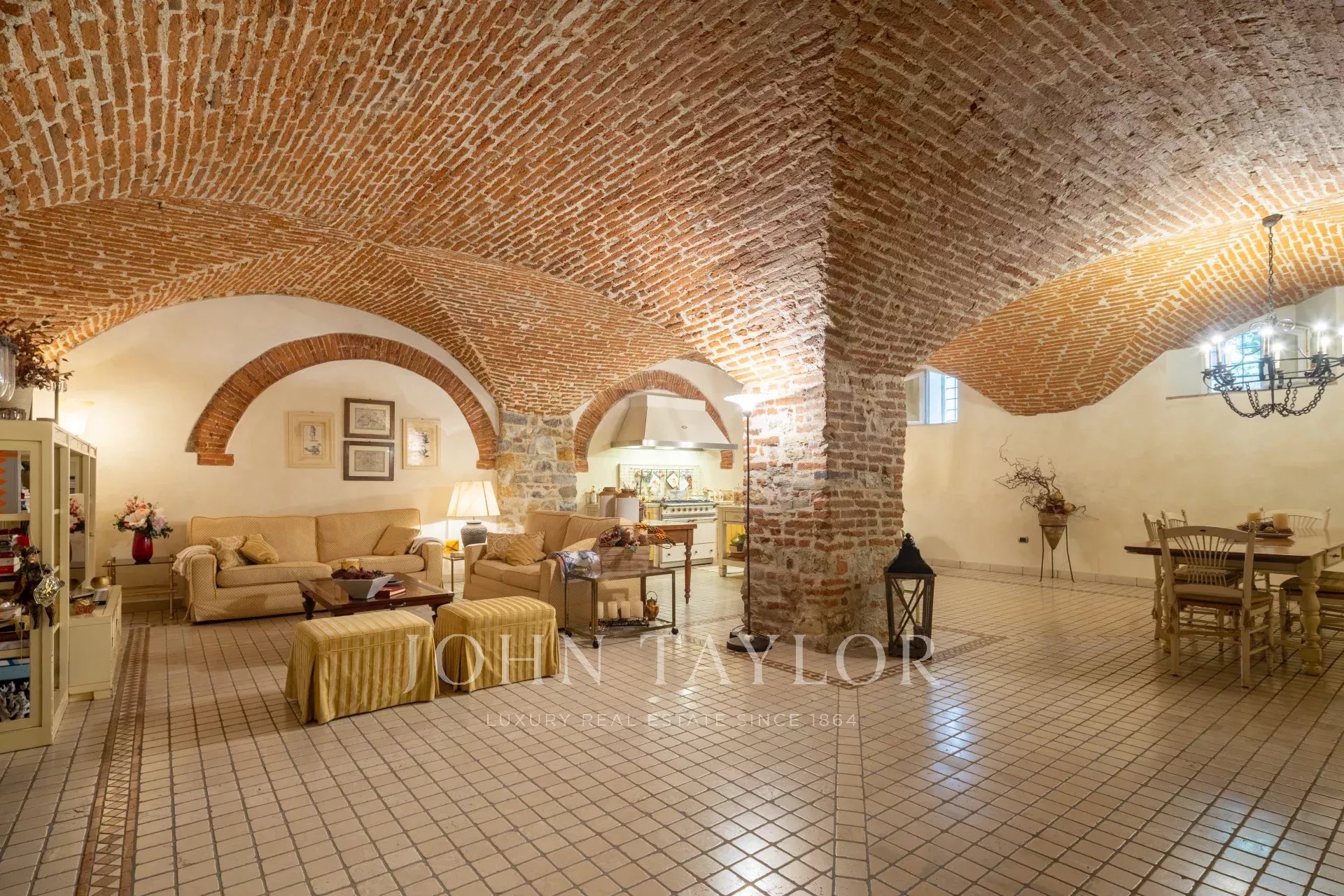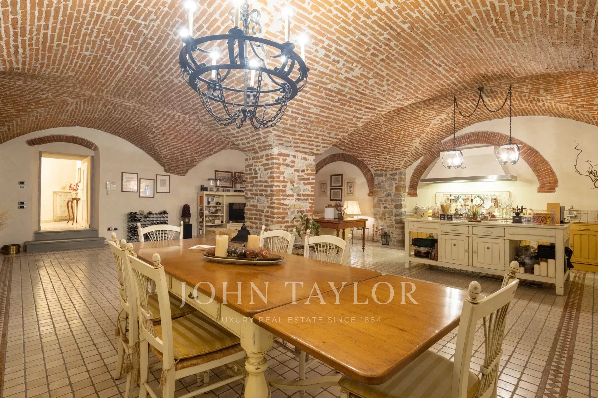 Das Untergeschoss beherbergt eine prächtige Taverne mit originalen Gewölben, ausgestattet mit einer zweiten Küche, TV-Bereich, Weinkeller und Waschküche – ein idealer Raum zum Entspannen oder Empfangen.