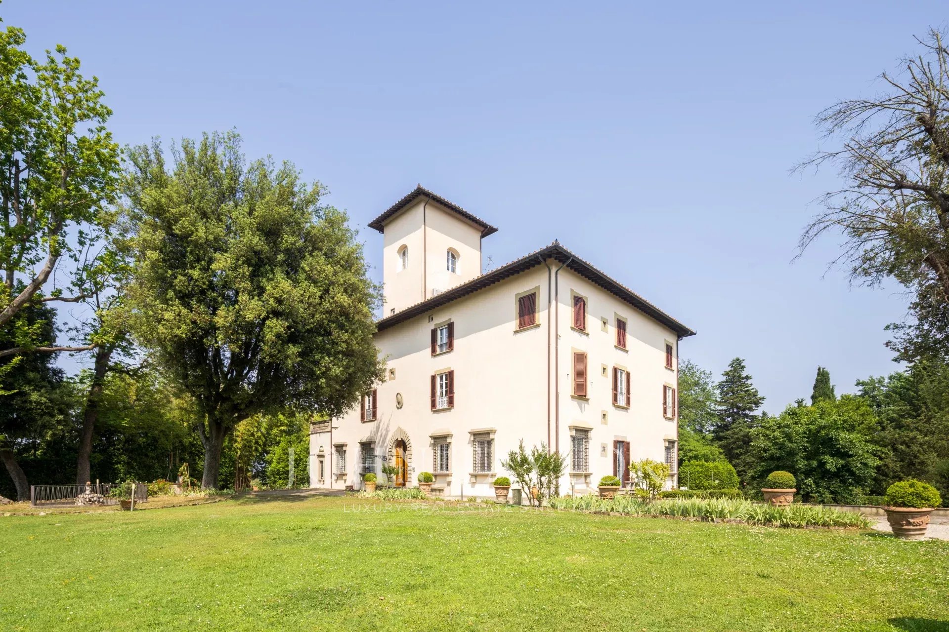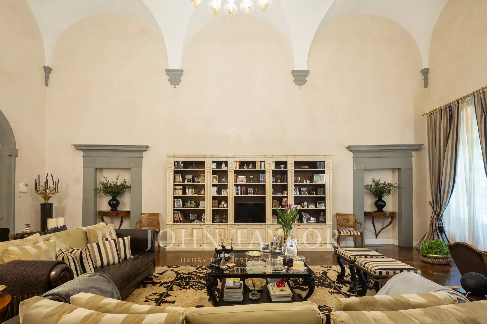 Auf den ersten Hügeln von Lastra a Signa, innerhalb einer prestigeträchtigen, fein restaurierten historischen Villa aus dem 15. Jahrhundert, befindet sich diese elegante Erdgeschosswohnung von ca. 300 m², umgeben von Grün.