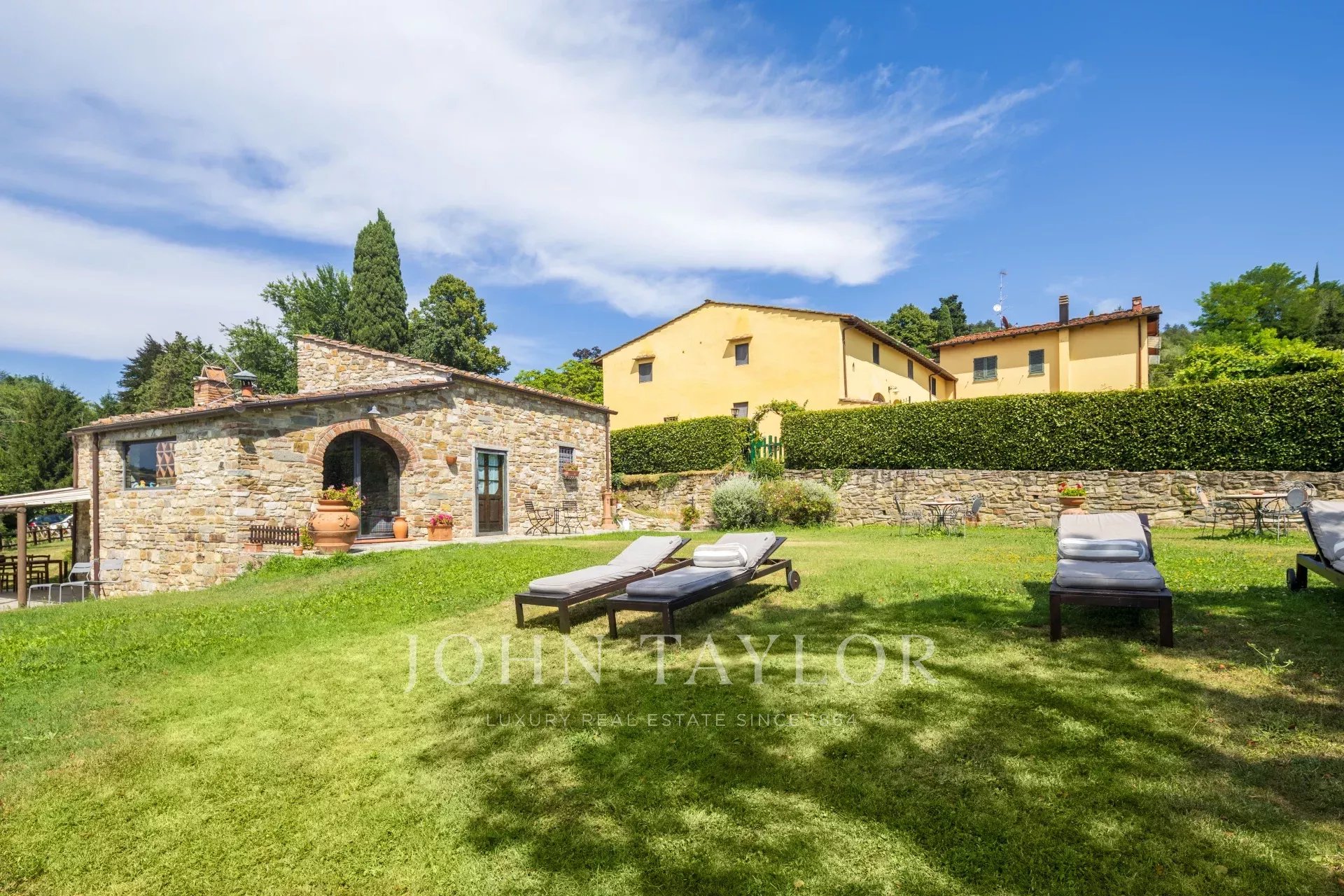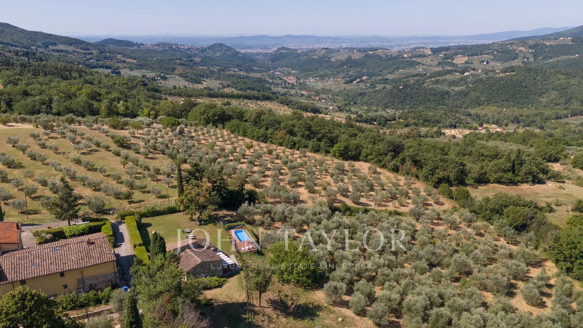 Dieses bezaubernde Anwesen aus dem 17. Jahrhundert liegt auf dem malerischen Hügel von Fiesole und umfasst fast 3 Hektar Land mit Olivenhainen, einem 500 qm großen Garten und einem entspannenden Pool.