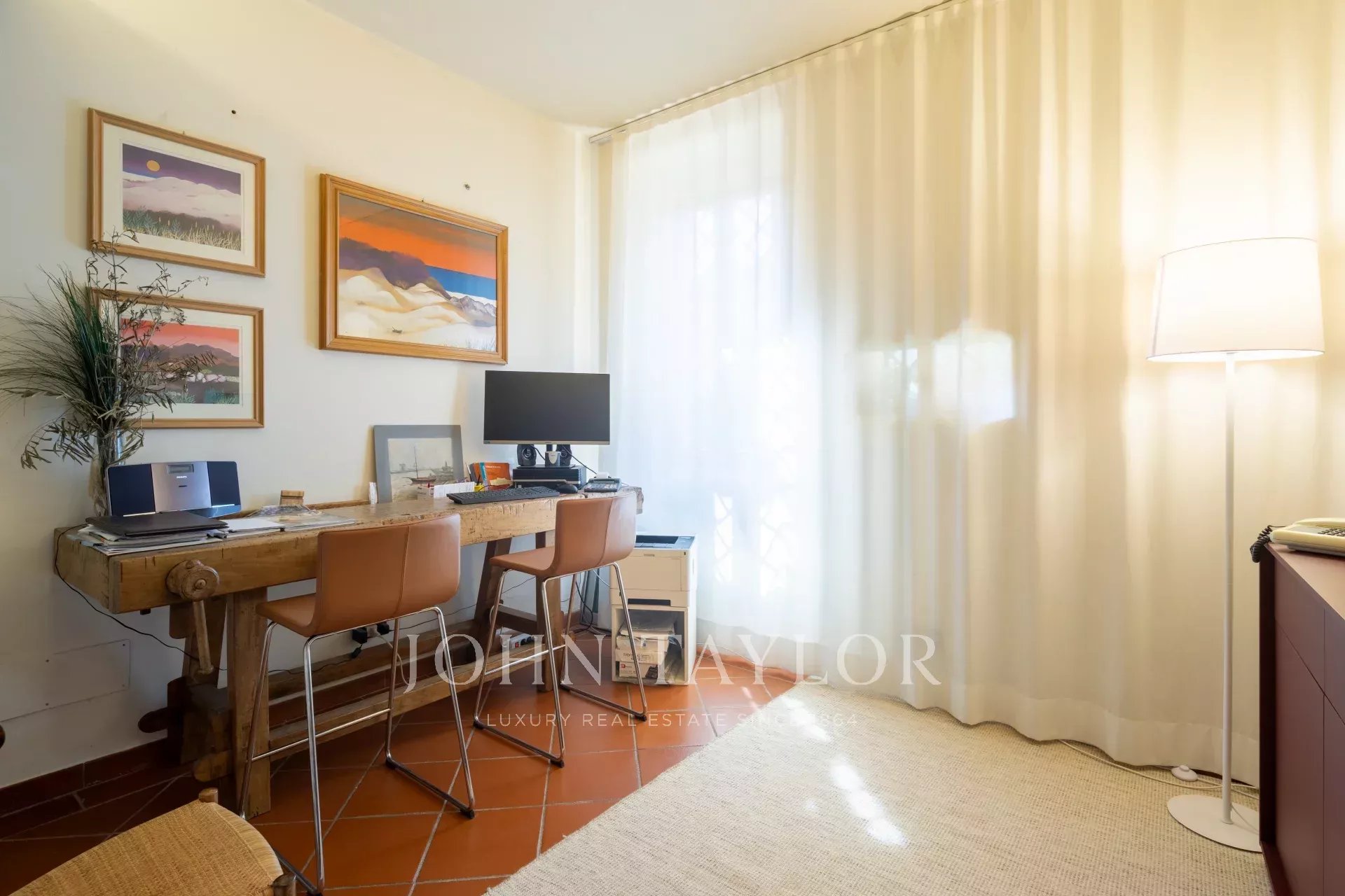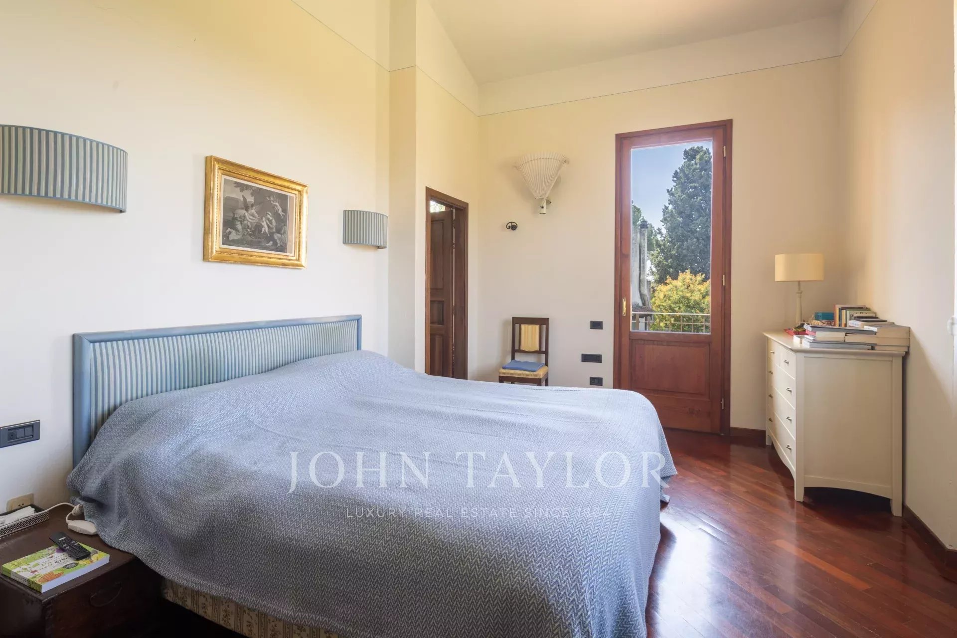 Eines der Highlights der Villa ist der gepflegte und private Garten, der eine echte Verlängerung des Wohnraums darstellt. Hier kann man in absoluter Privatsphäre Zeit im Freien genießen, in der warmen Jahreszeit Essen veranstalten oder einfach die Ruhe und das umliegende Grün erleben. Auf dem Grundstück befindet sich zudem eine private Garage – ein großer Vorteil in einem Wohngebiet wie diesem.