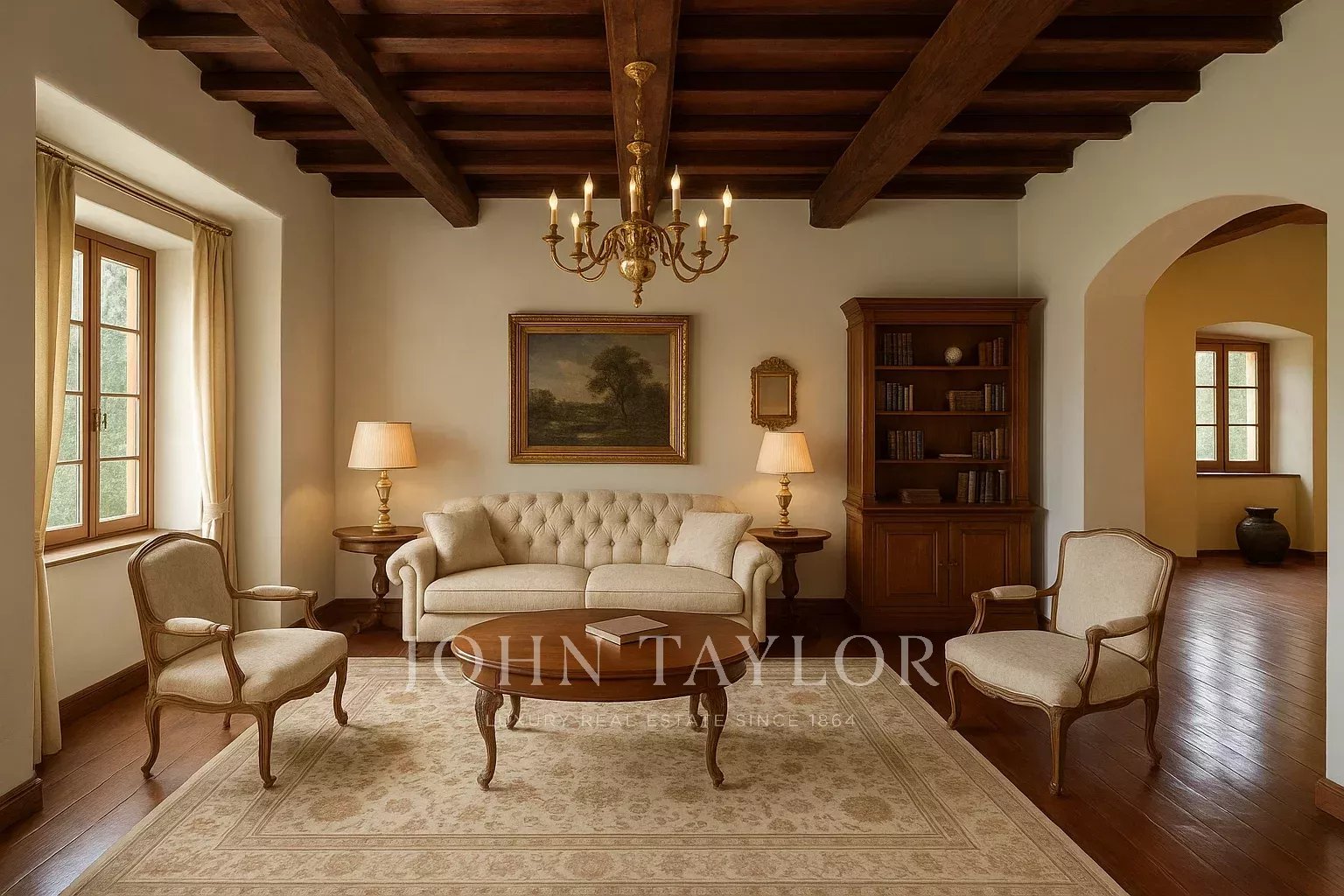 Im Hauptteil der Villa befinden sich vier geräumige Schlafzimmer, große Wohnbereiche und eine Taverne mit einer zweiten Küche mit traditionellen toskanischen Elementen.