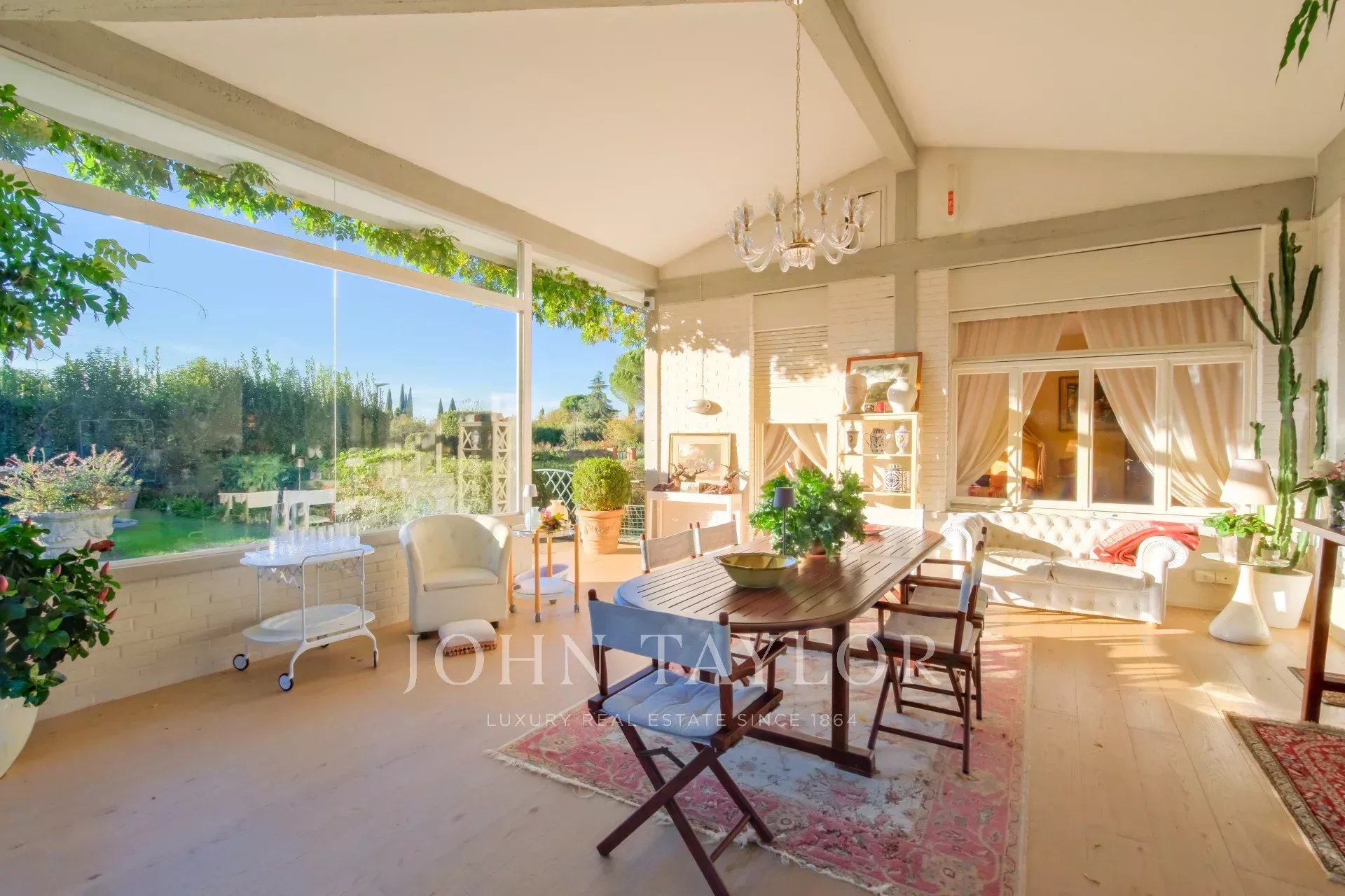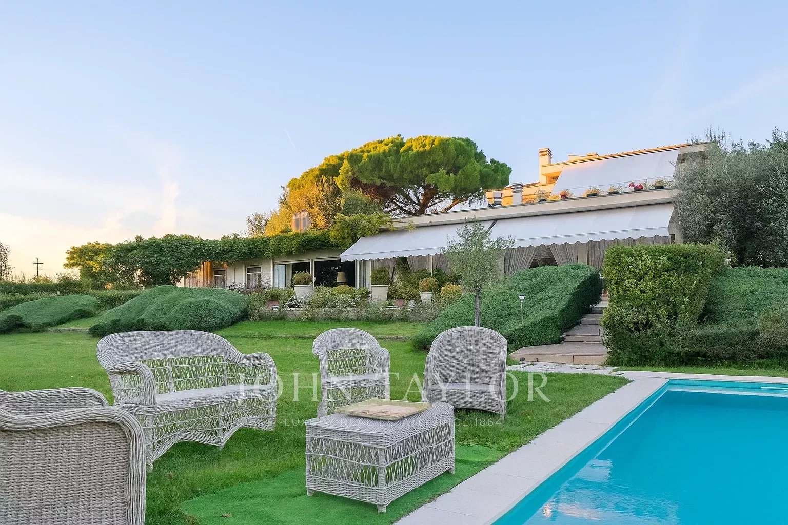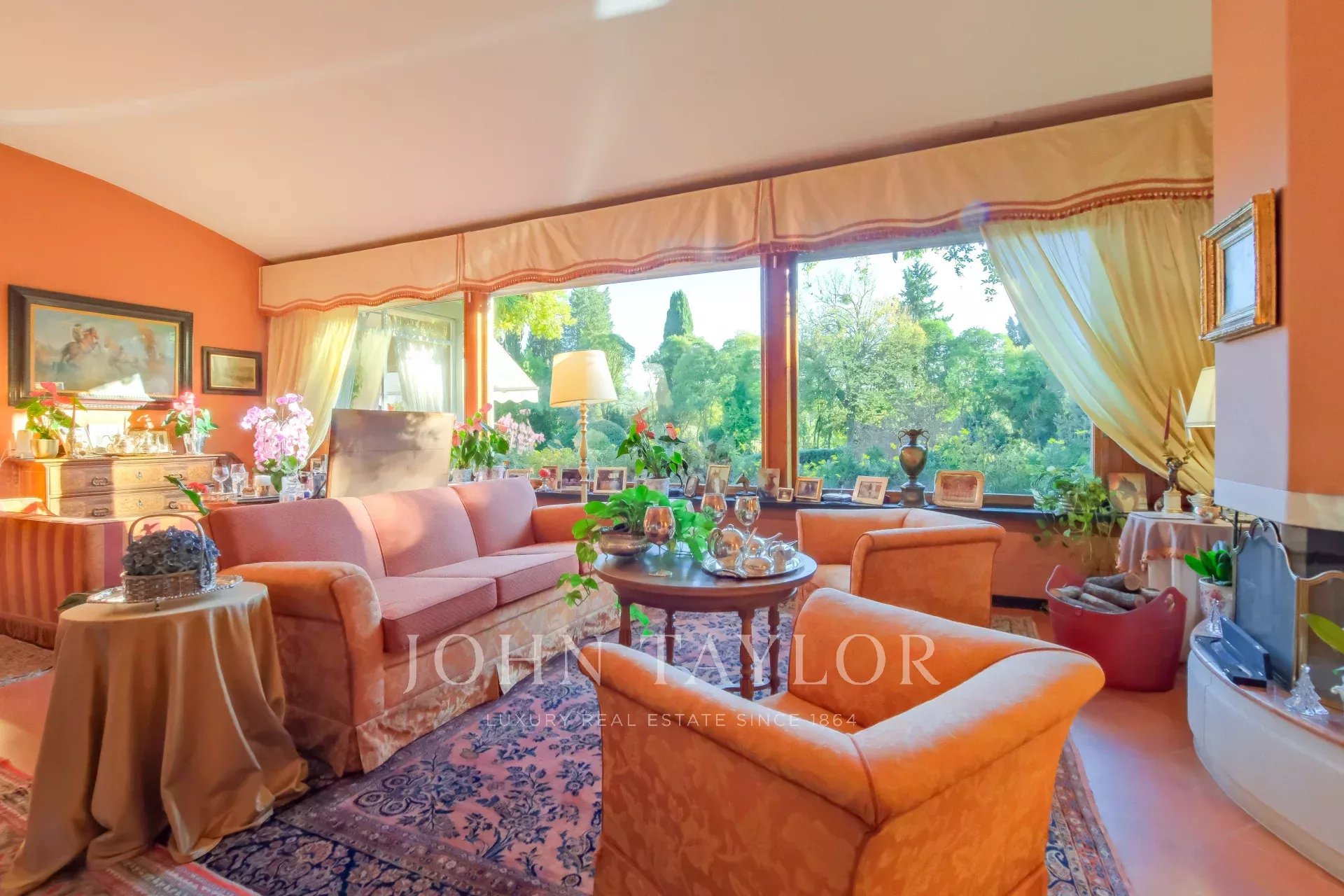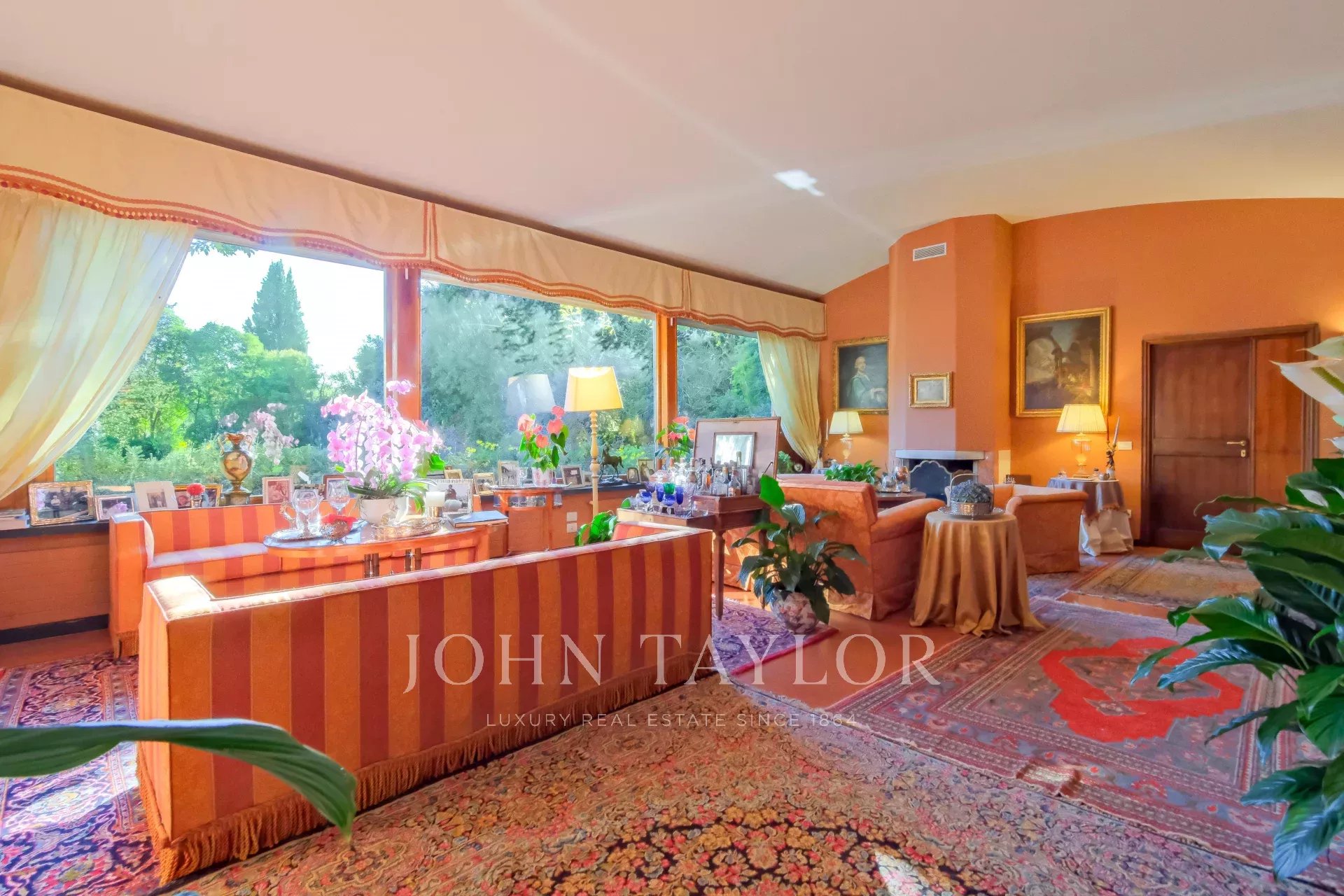 Die Außenanlagen stellen einen echten Mehrwert dar: Ein großer Park, der vom renommierten Landschaftsarchitekten Pietro Porcinai entworfen wurde, umrahmt die Villa und schafft eine raffinierte und zurückhaltende Umgebung. Das Schwimmbad und die Entspannungsbereiche vervollständigen das Anwesen und machen es perfekt für das Leben im Freien zu jeder Jahreszeit.