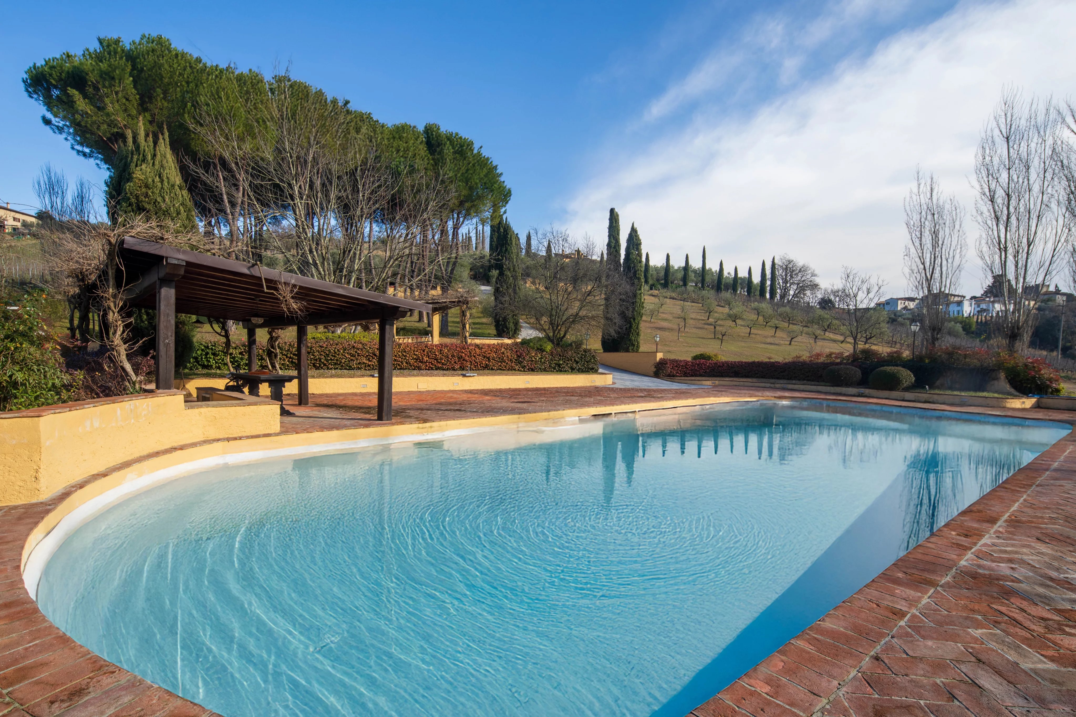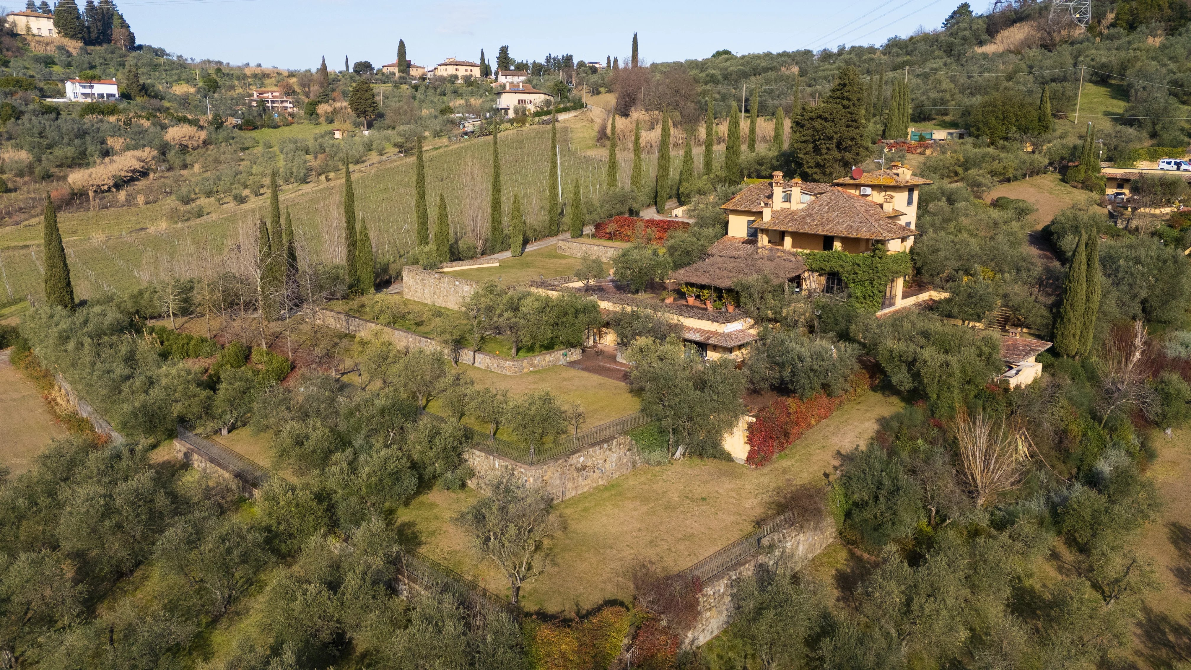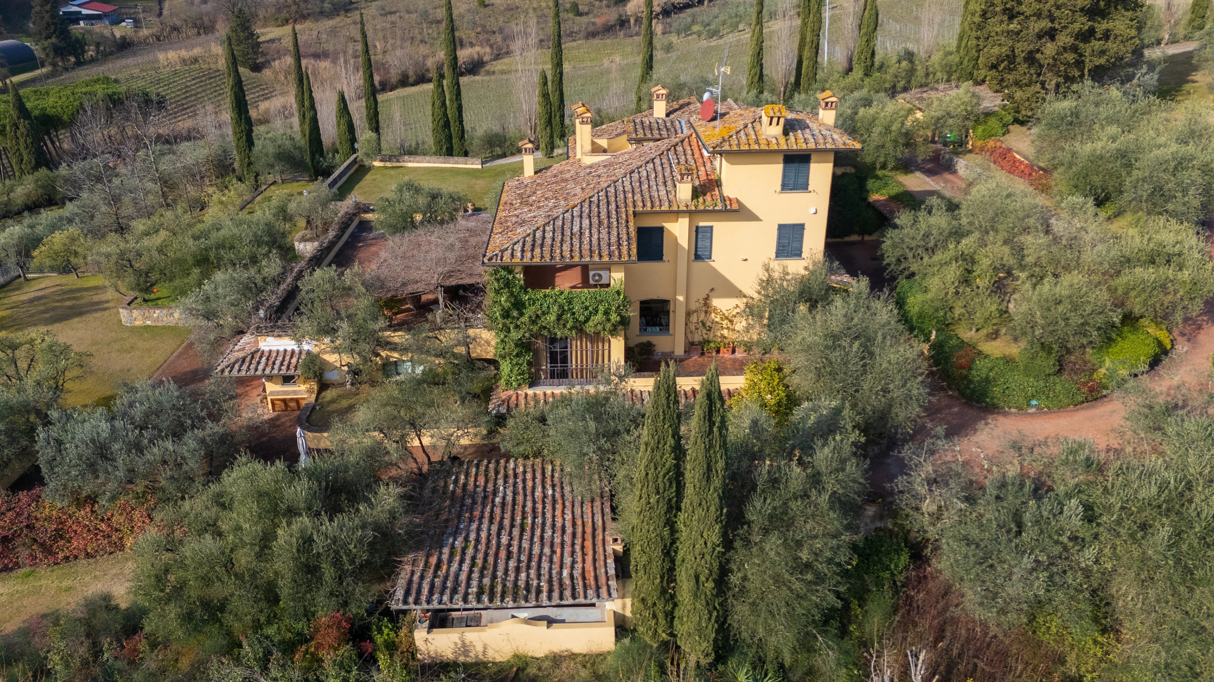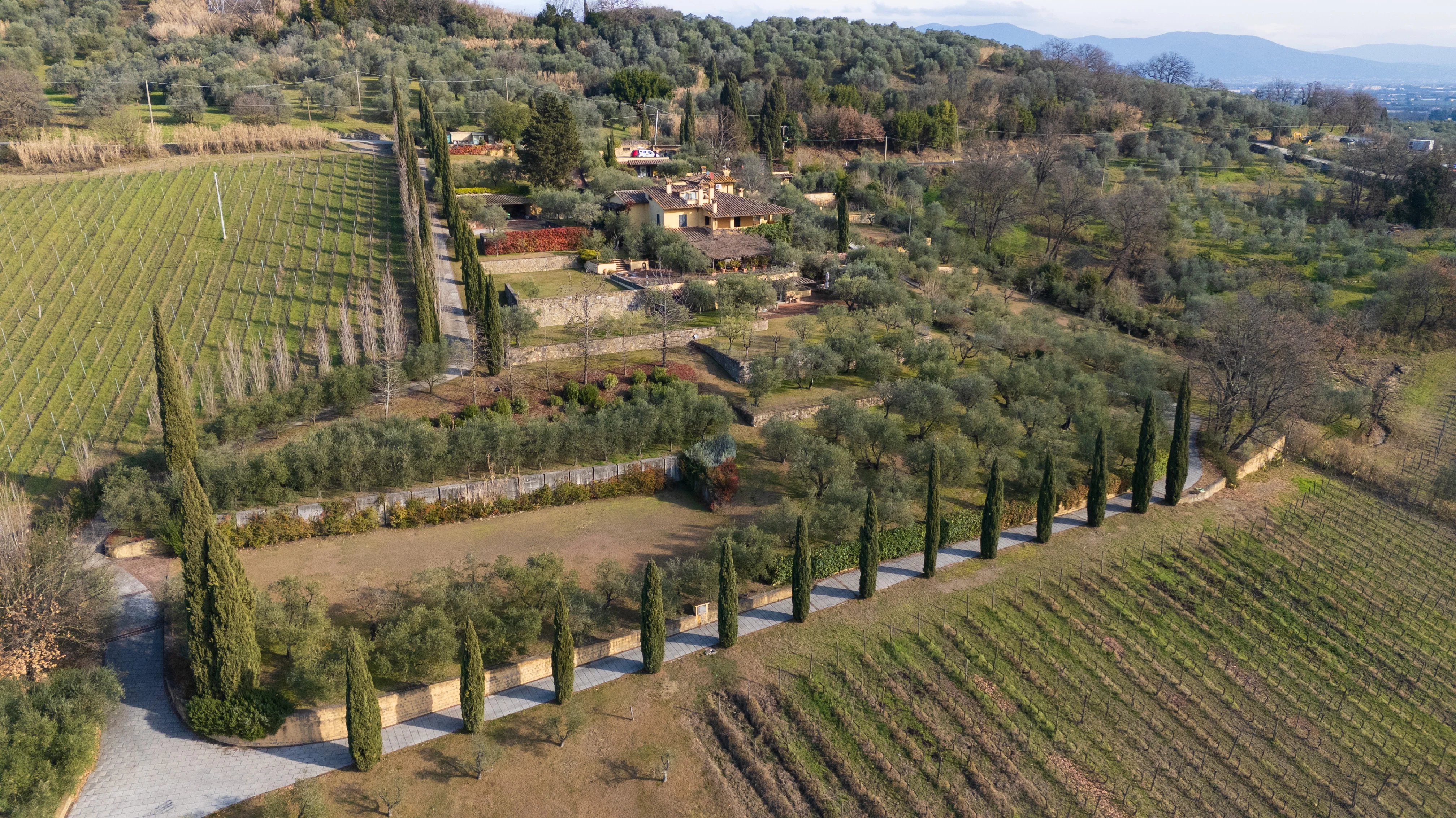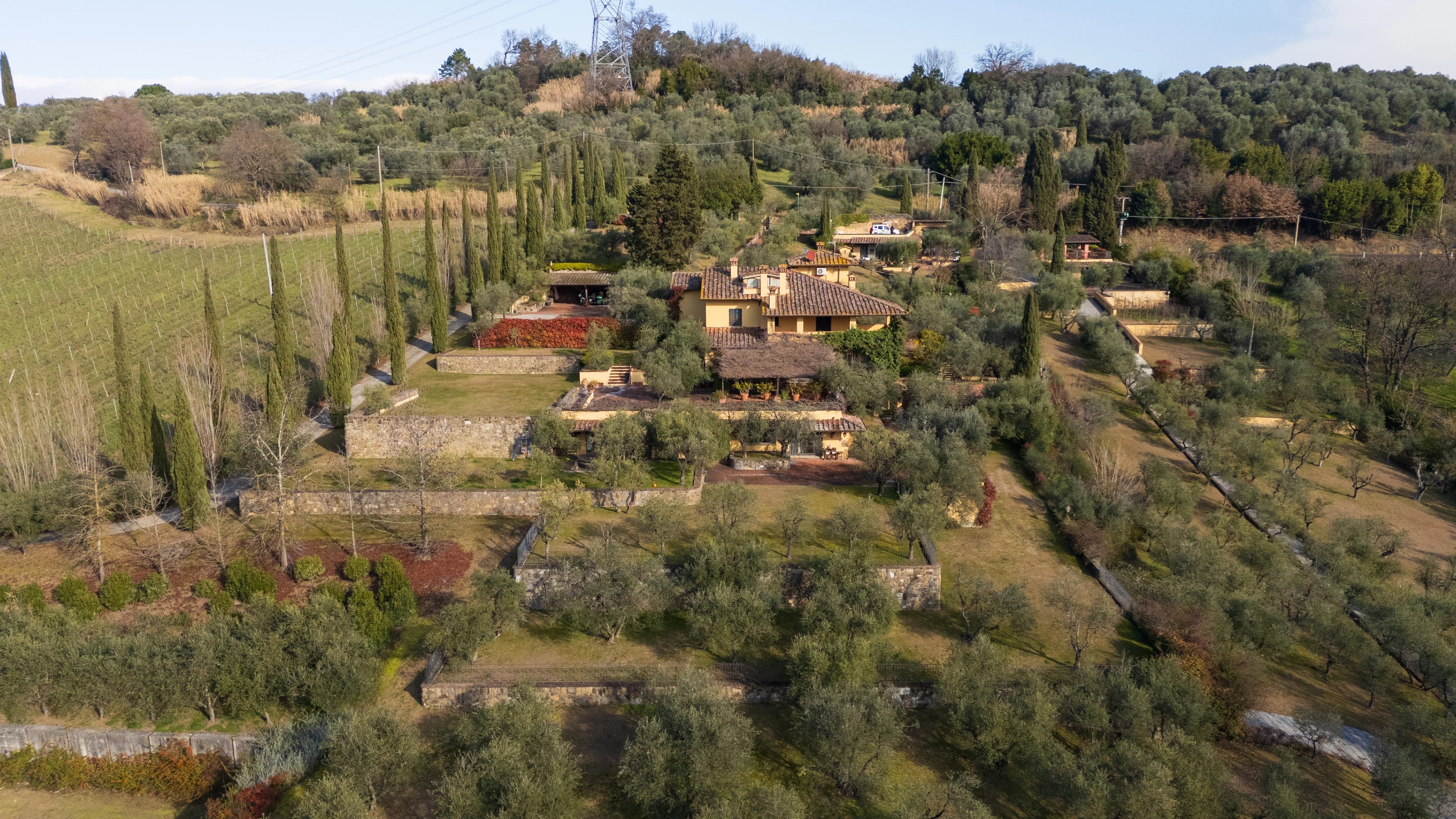 Etwa dreißig Minuten von Florenz entfernt, fügt sich dieses Anwesen mit natürlicher Harmonie in die Landschaft der Toskana ein. Ein privater Ort, an dem die Architektur mit der Natur in einem diskreten und zeitlosen Gleichgewicht dialogisiert.