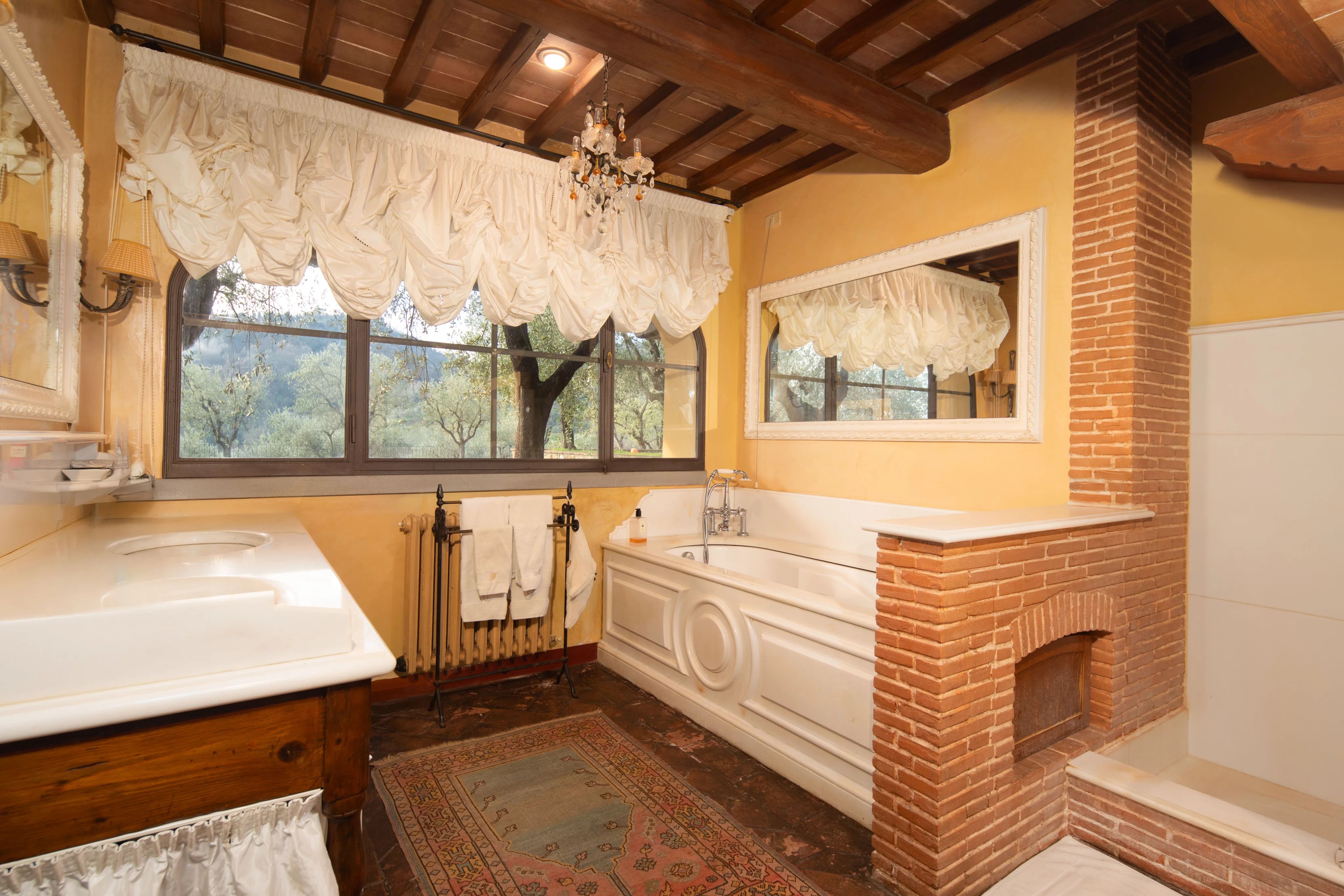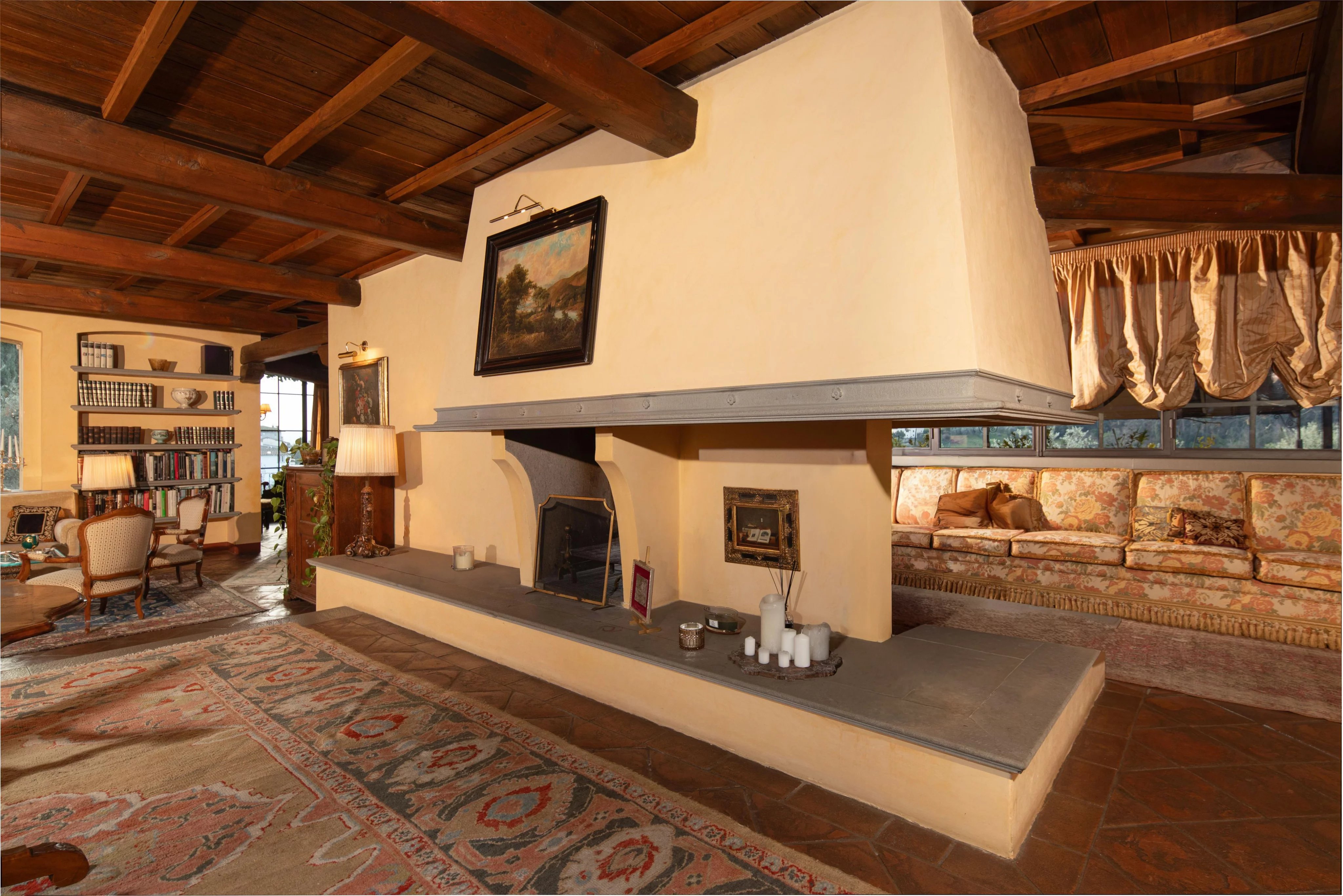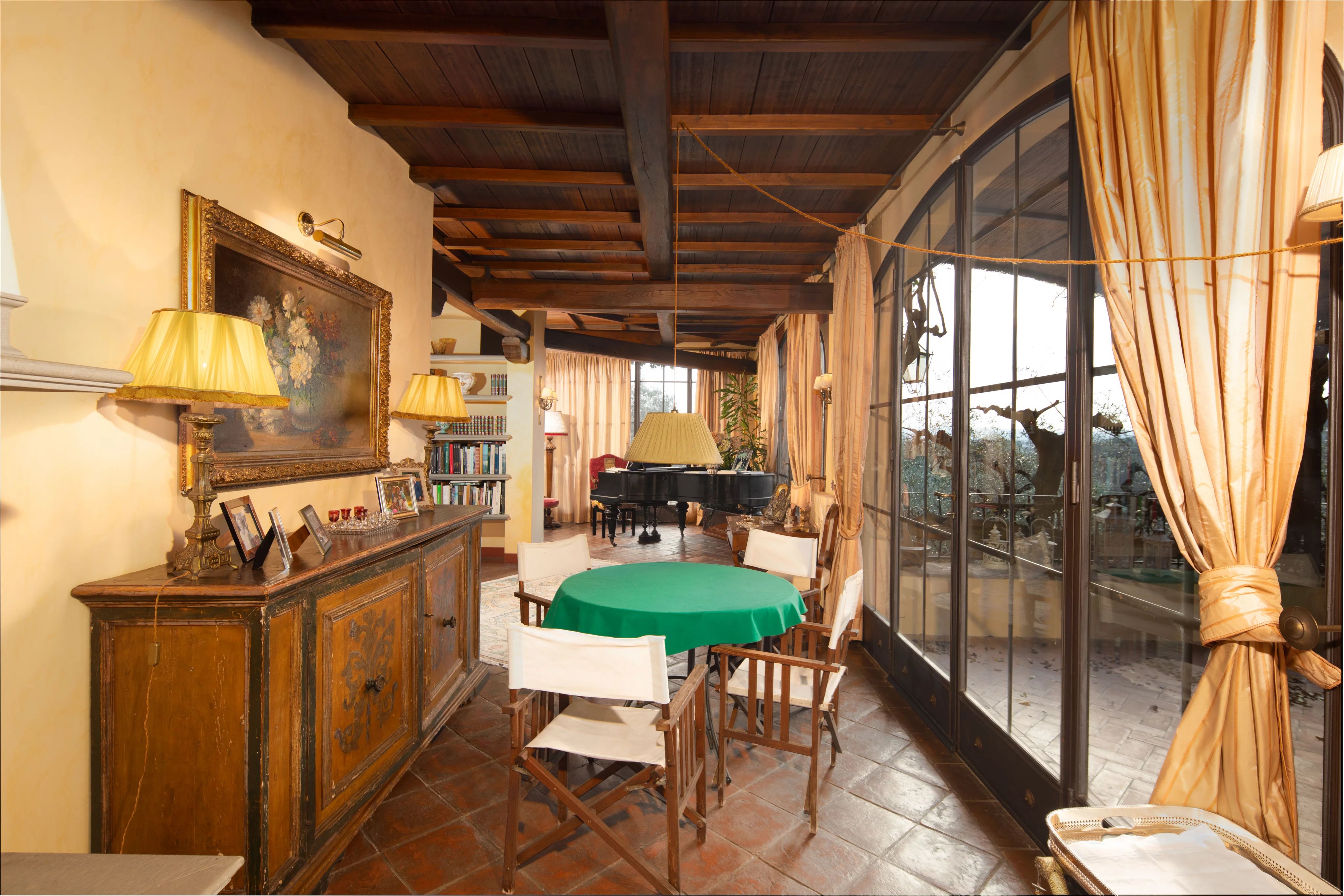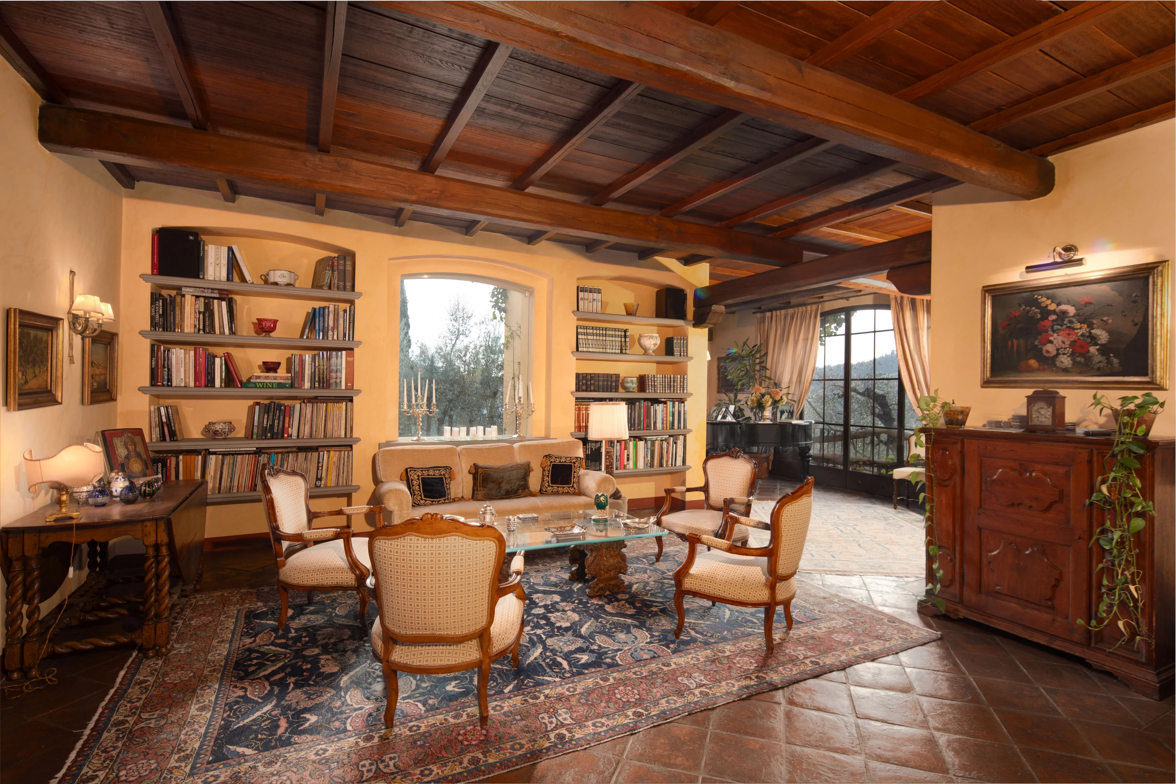 Im Garten gibt es einen Swimmingpool im Grünen, einen Wellnessbereich mit Sauna und Fitnessraum sowie einen Weinkeller. Die Innenräume spiegeln einen rustikalen und eleganten Stil wider, mit traditionellen Materialien und sorgfältiger Verarbeitung, die mit modernem Komfort kombiniert werden.