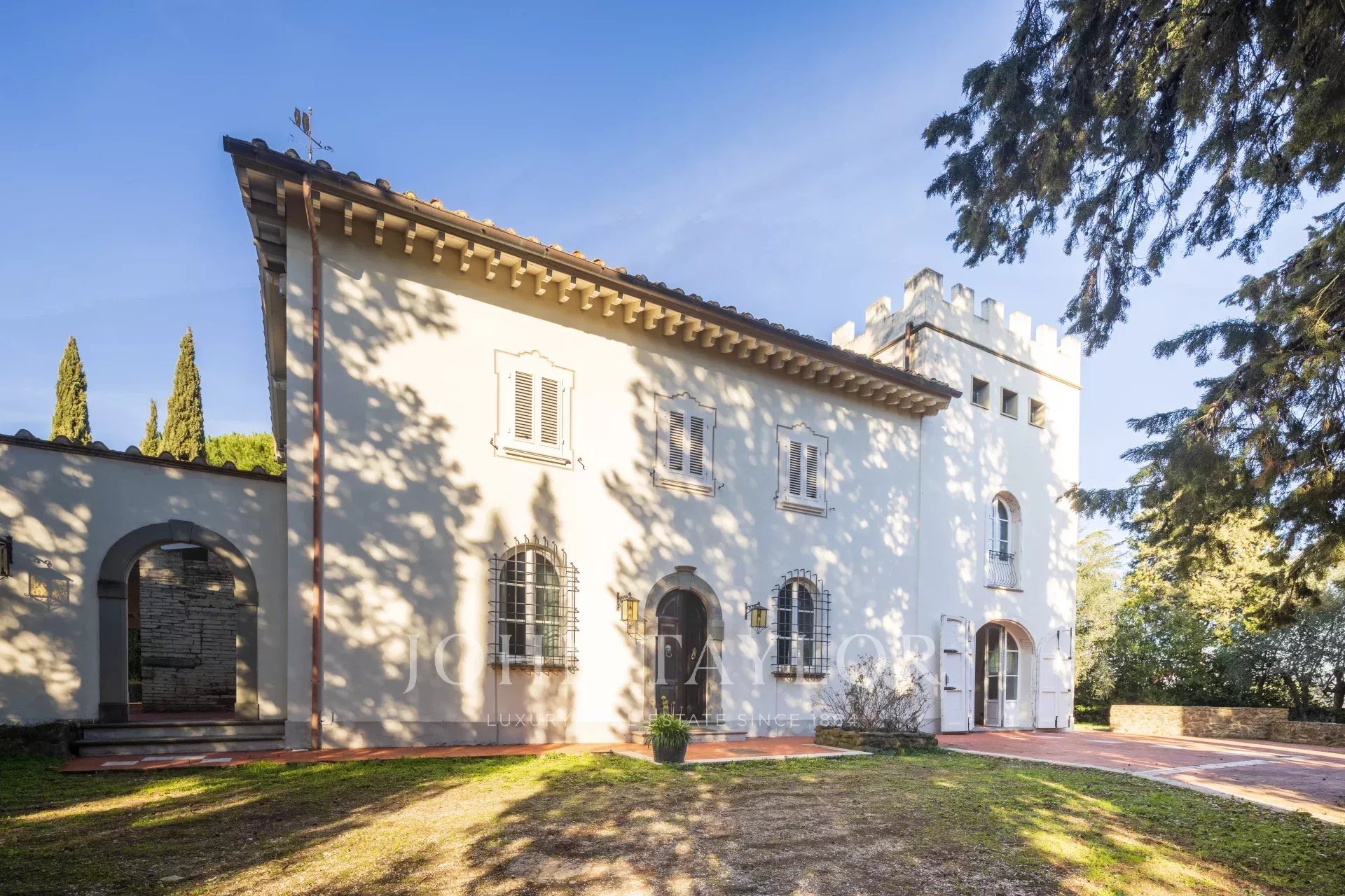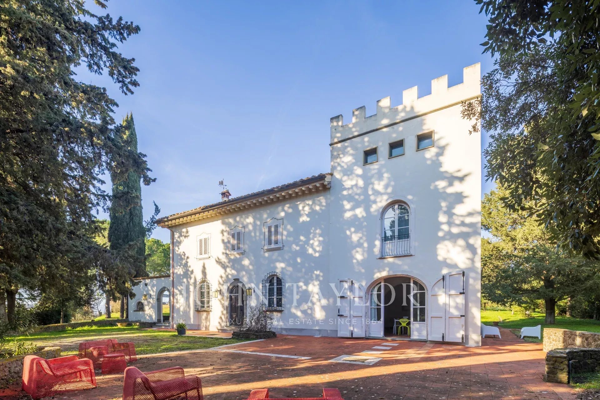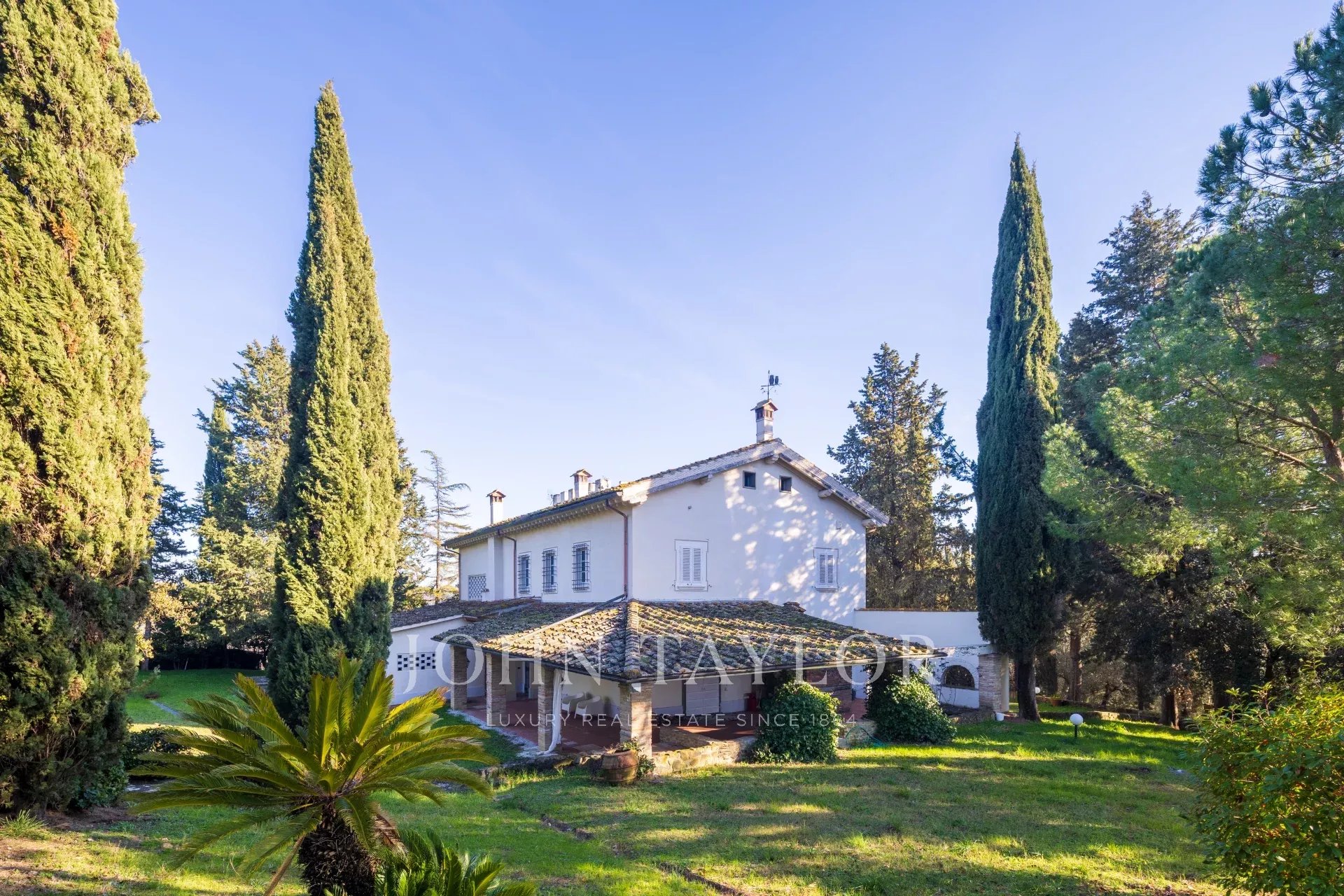 Die Villa verfügt über einen wunderschönen Park, einen herrlichen Swimmingpool mit Panoramablick auf Weinberge und Olivenhaine und einen privaten Amateur-Tennisplatz.