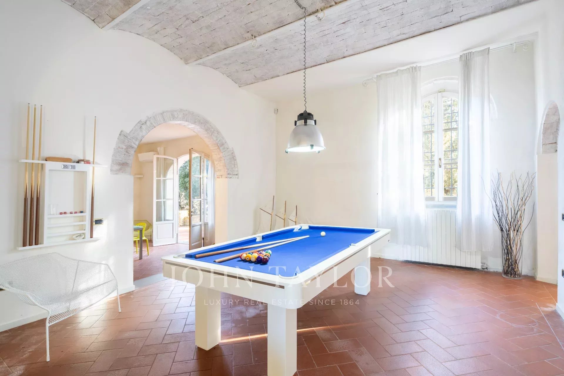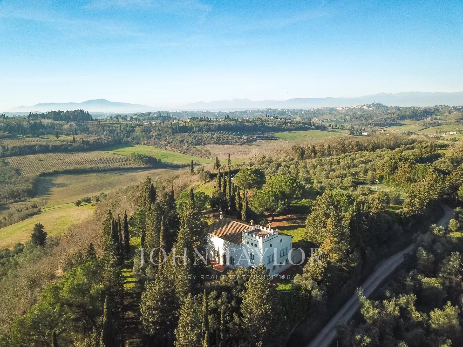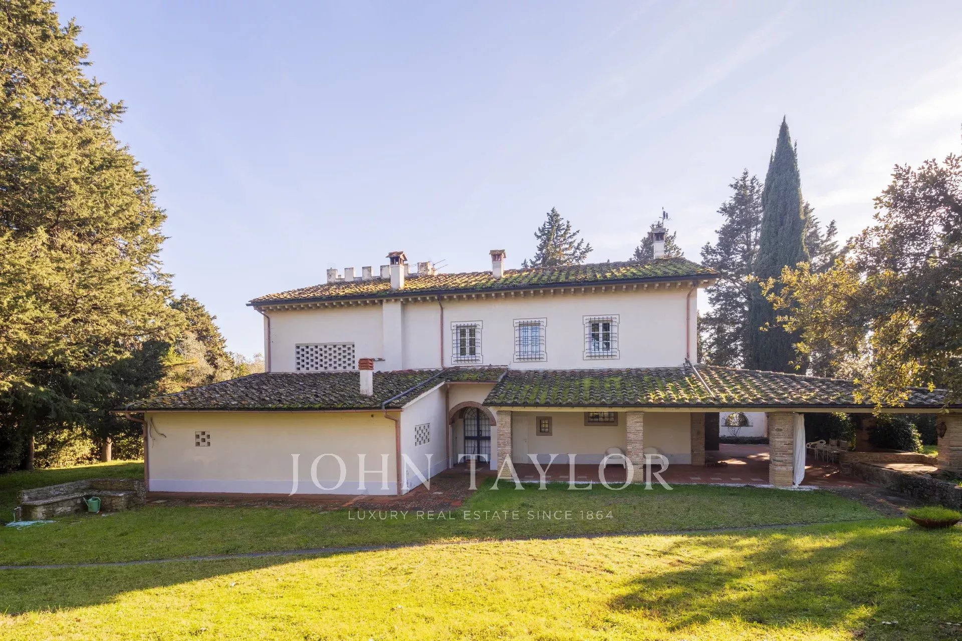 Die Villa verfügt über einen wunderschönen Park, einen herrlichen Swimmingpool mit Panoramablick auf Weinberge und Olivenhaine und einen privaten Amateur-Tennisplatz.