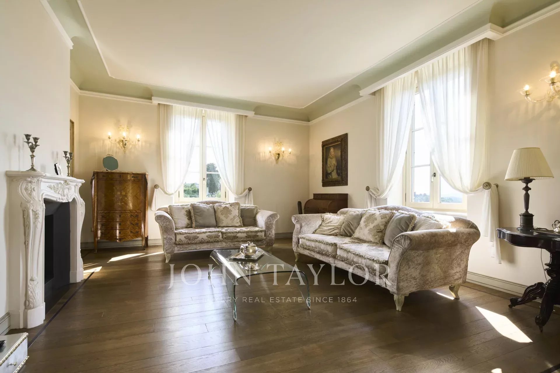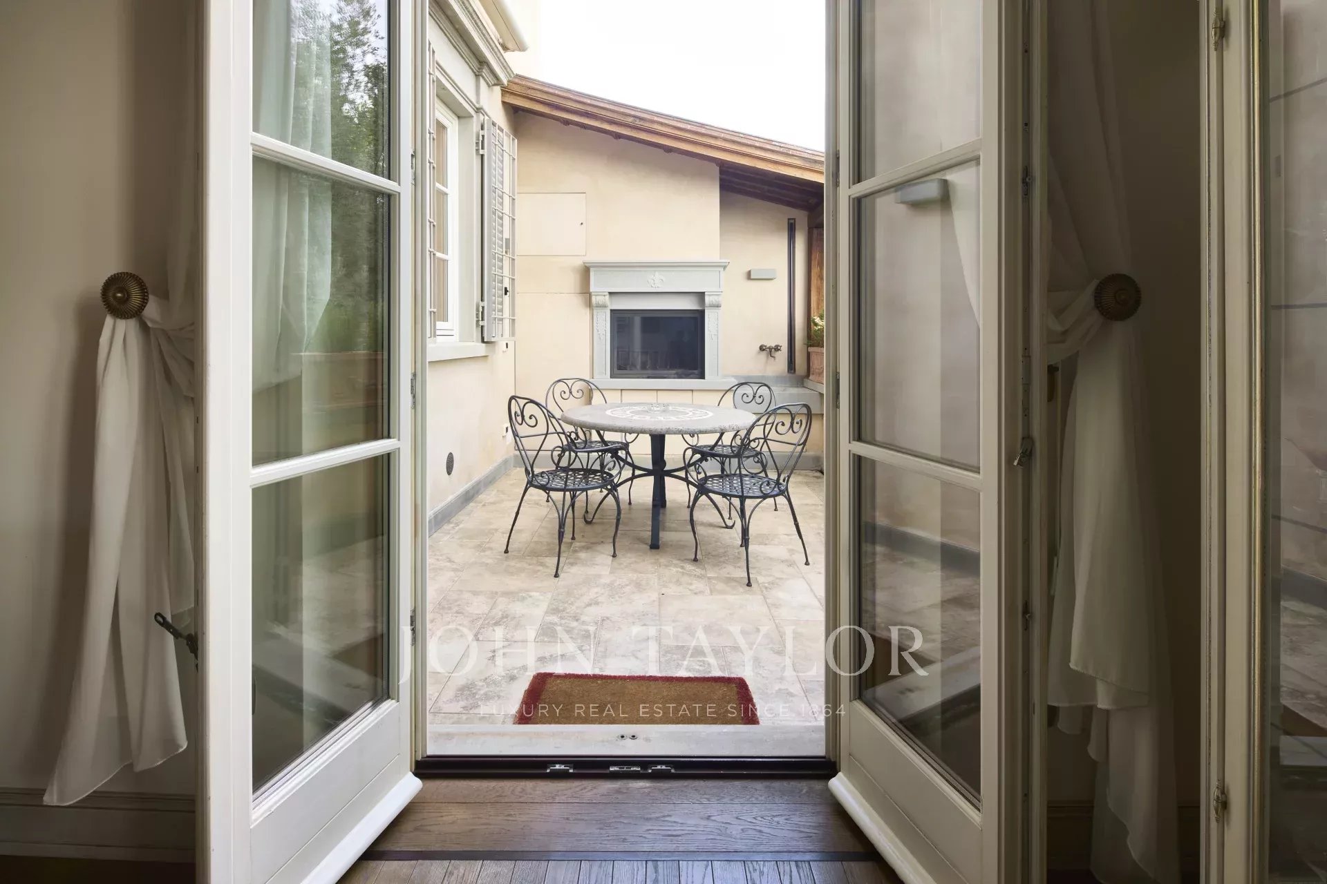 Ein Aufzug, ein direkter Zugang zur Garage und private Terrassen runden das Angebot ab. Auf einem 20.000 m² großen, komplett eingezäunten und videoüberwachten Grundstück gelegen, verbindet diese Residenz perfekt historischen Charme mit modernem Komfort.