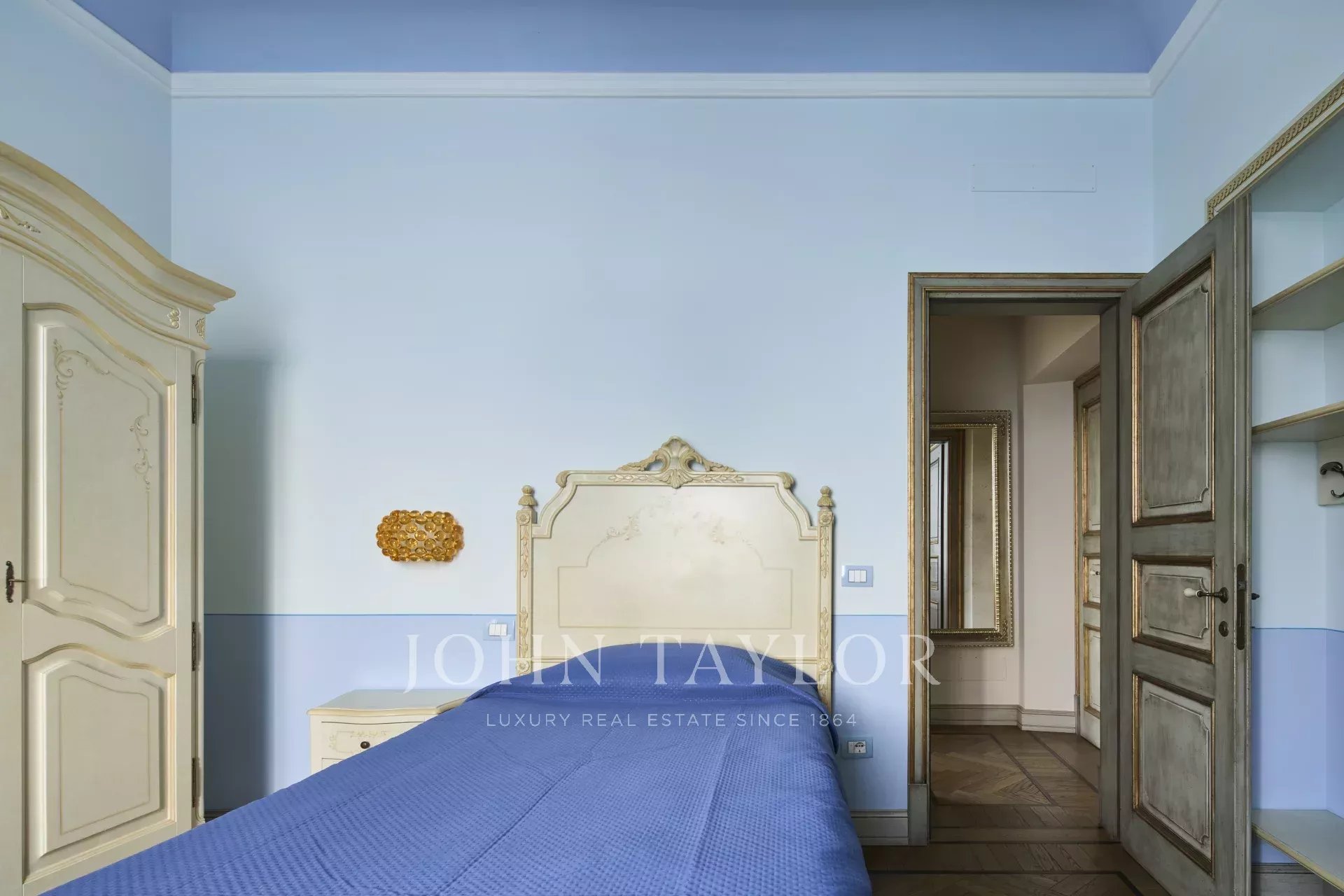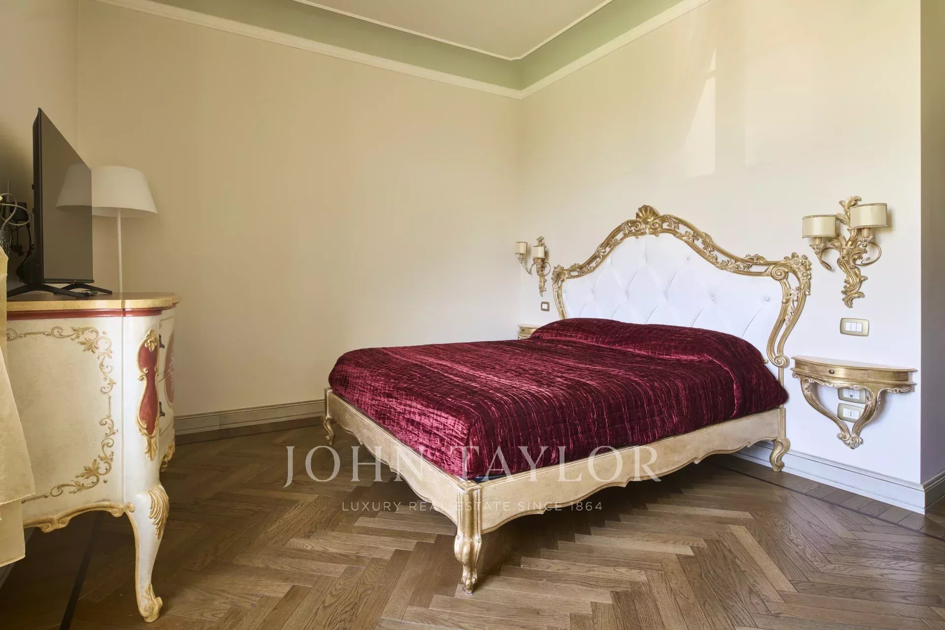 Die Innenräume zeichnen sich durch edle Holzböden und mit Fresken bemalte Wände und Decken aus, die den historischen Charakter des Hauses unterstreichen.