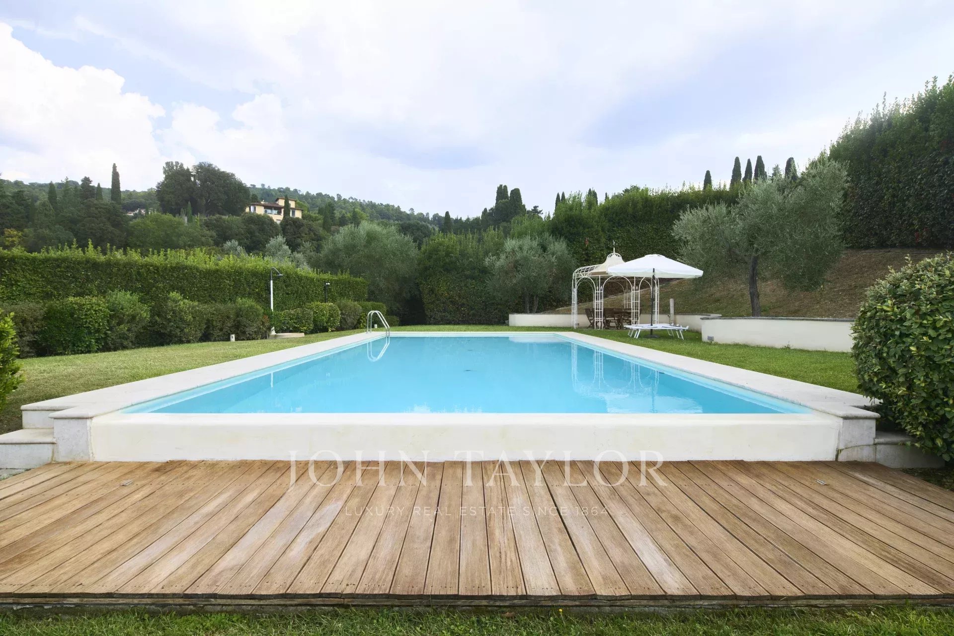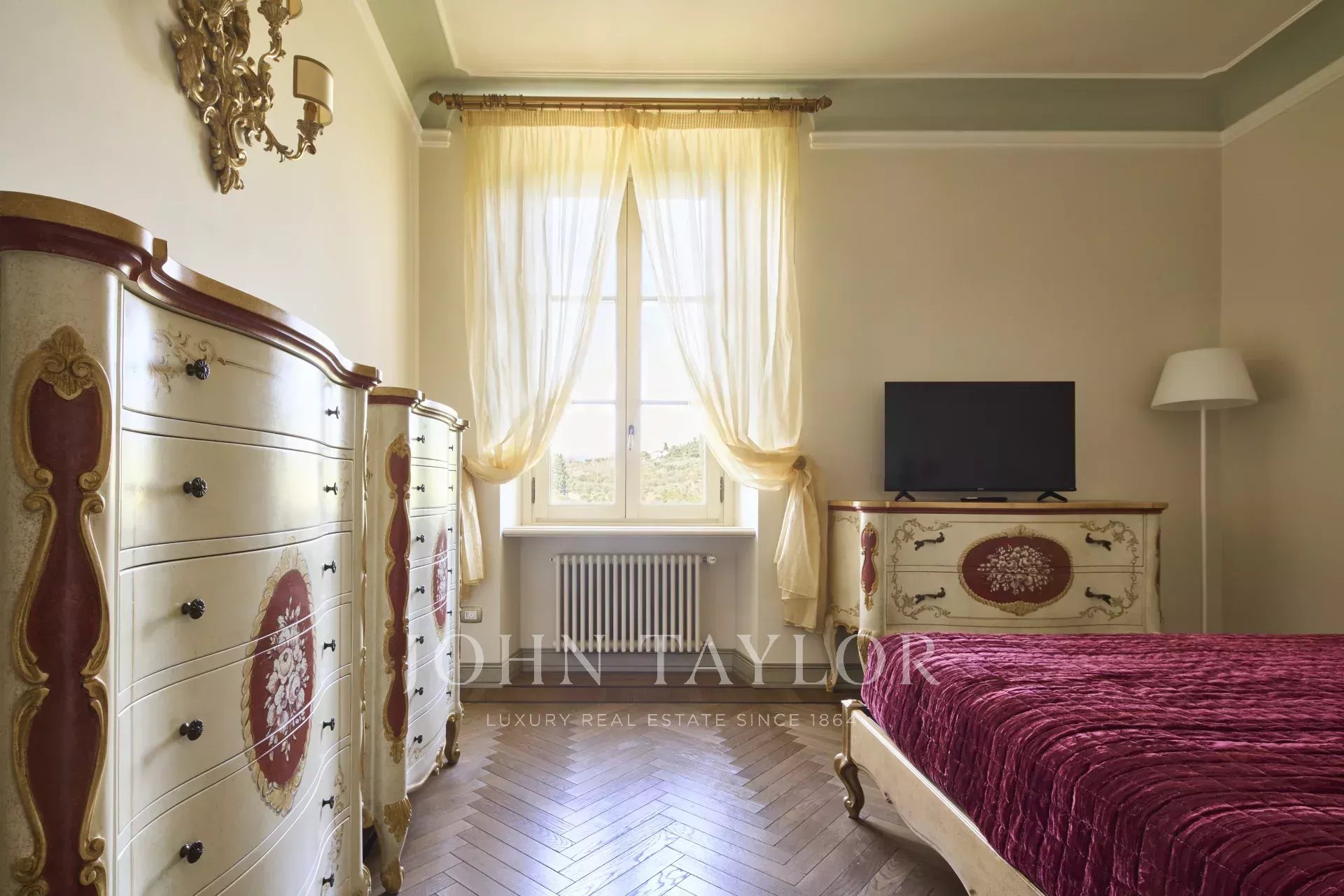 Diese prestigeträchtige, komplett renovierte Wohnung befindet sich im ersten Stock einer Medici-Villa aus dem 16. Jahrhundert und bietet 250 m² raffinierten Lebensraum. Umgeben von einem großen Gemeinschaftsgarten, verfügt das Anwesen über einen gemeinsamen Swimmingpool, Doppelgarage und Keller.