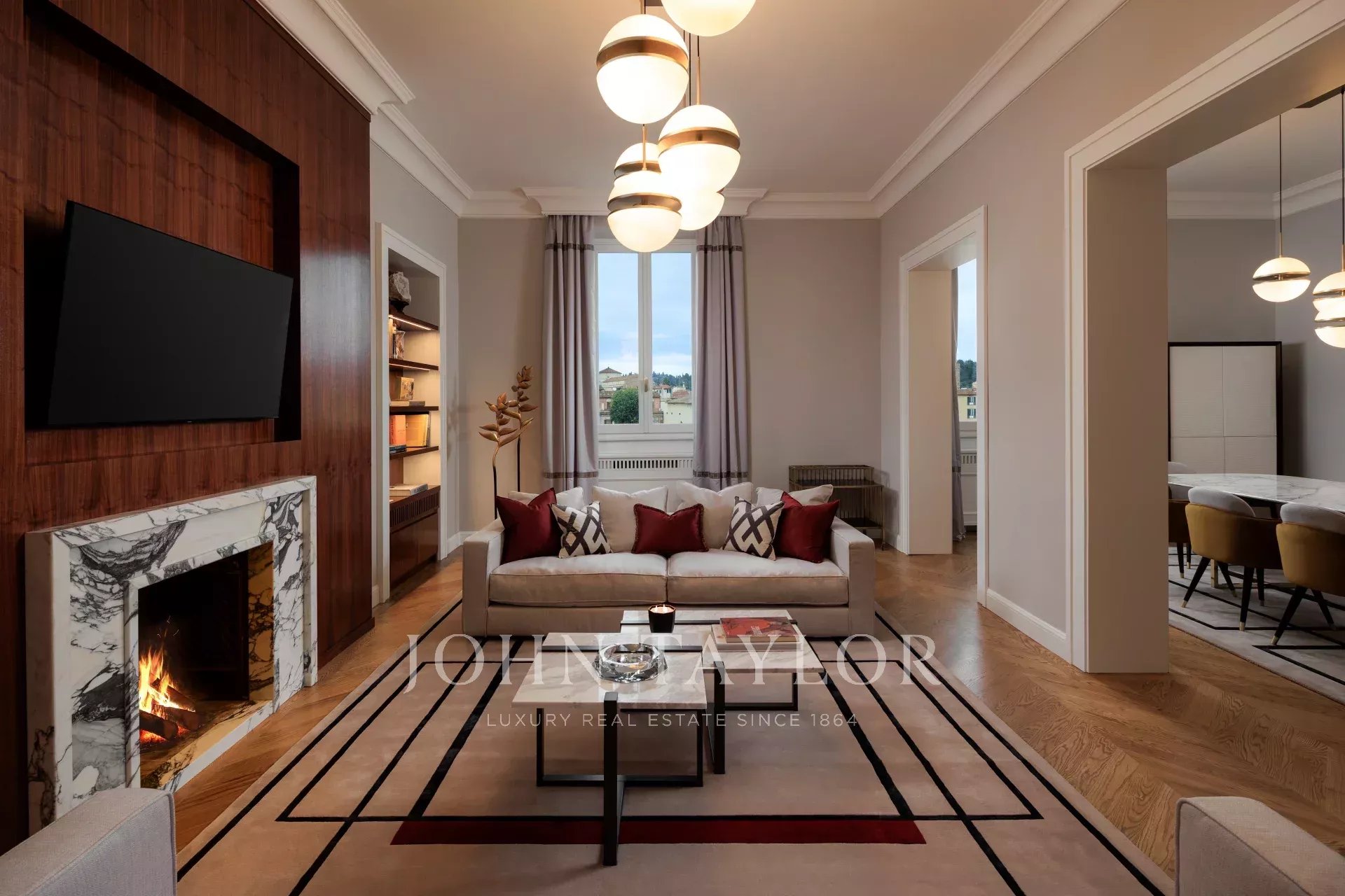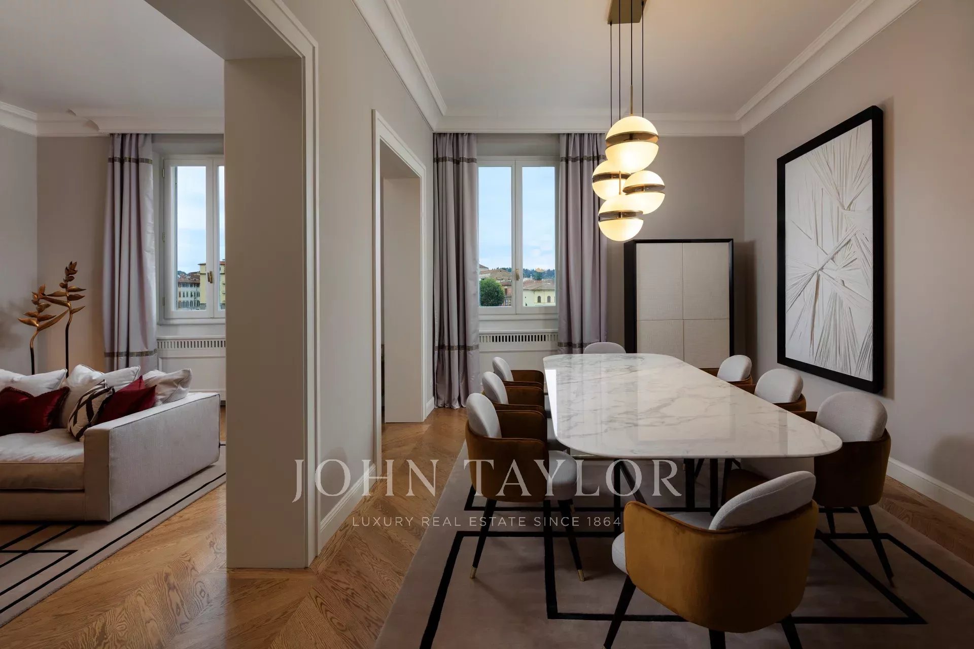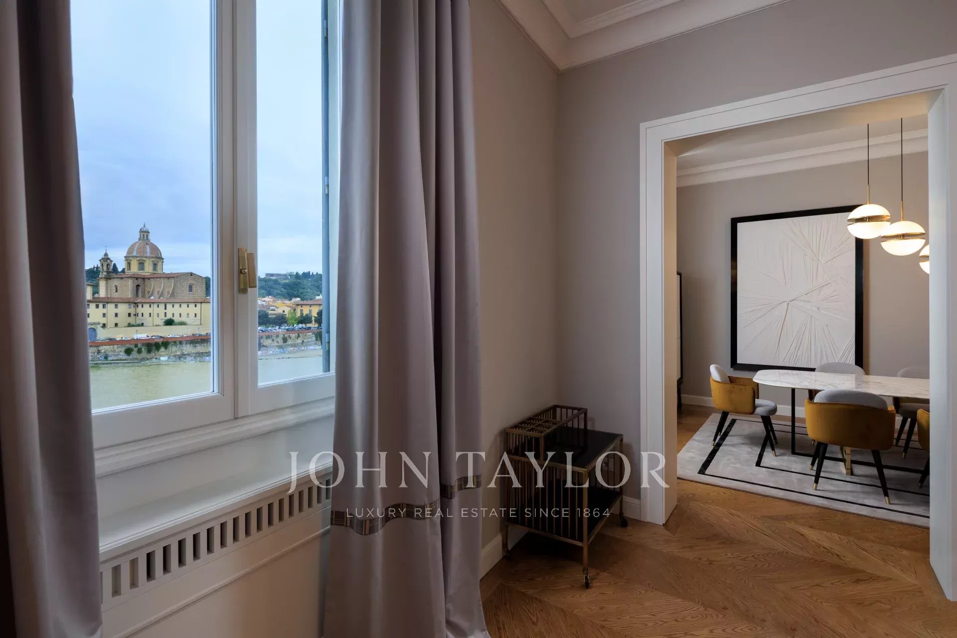 Diese elegante Wohnung am Ufer des Arno in Florenz bietet einen außergewöhnlichen Panoramablick auf den Fluss und die historischen Monumente.