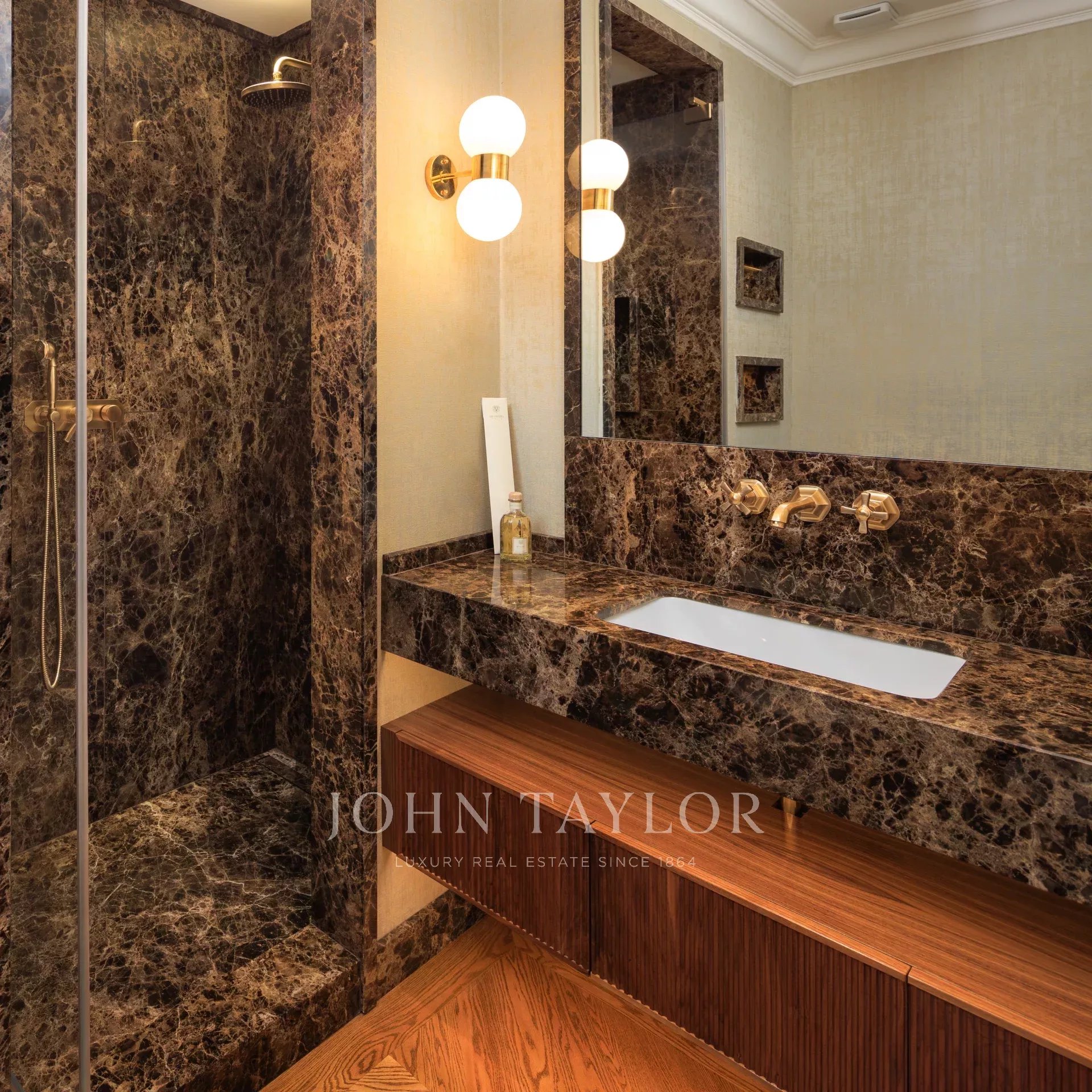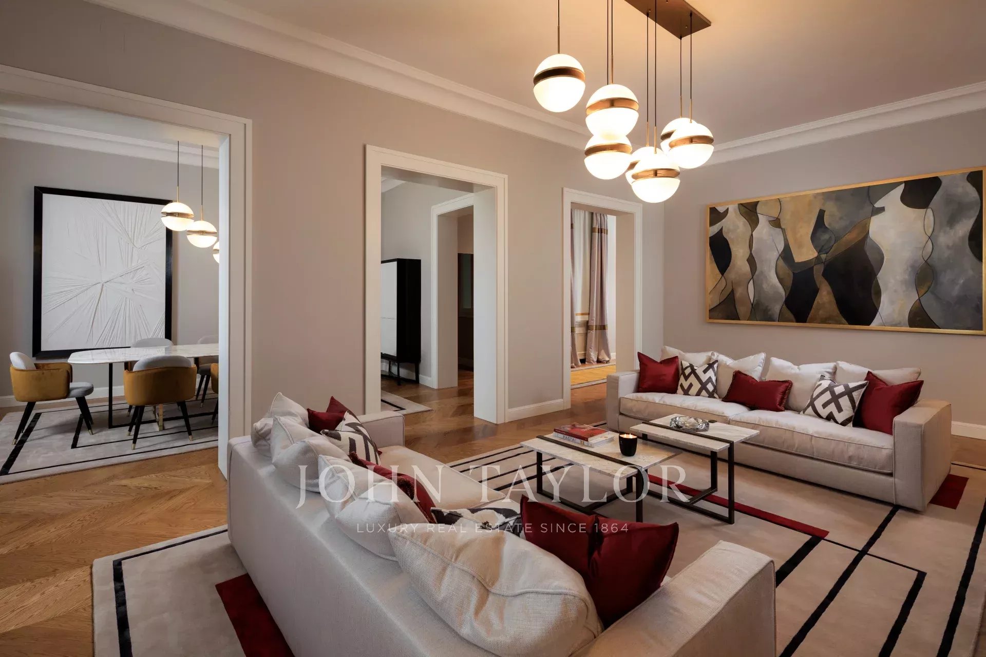 Bestehend aus vier prächtig eingerichteten Zimmern, jedes mit eigenem Marmorbad, vereint das Apartment Komfort und Raffinesse.