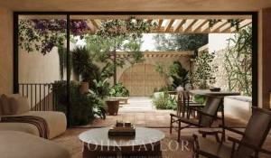 In den Innenräumen werden natürliche Materialien wie Holz, Stein und Lehm verwendet, die aufgrund ihrer Wärme und der starken Verbindung zur Umgebung ausgewählt wurden. Das Layout betont das natürliche Licht, den offenen Raum und den nahtlosen Übergang zwischen Innen- und Außenbereichen mit Innenhöfen, schattigen Terrassen und einer ruhigen, ausgeglichenen Atmosphäre.