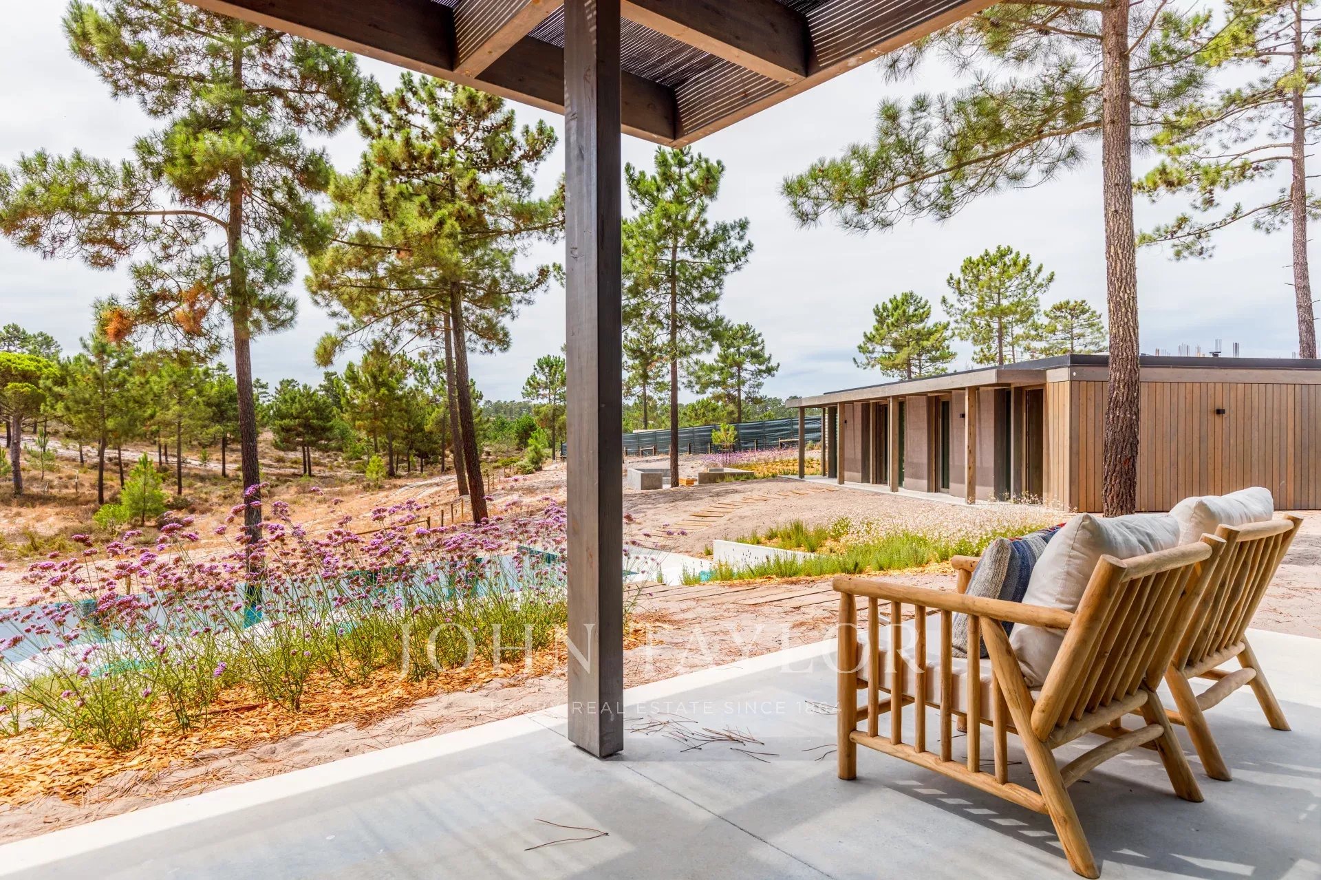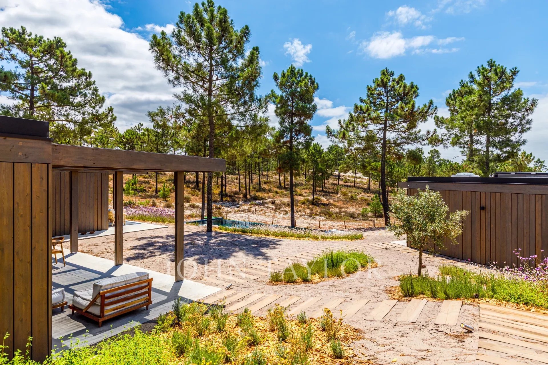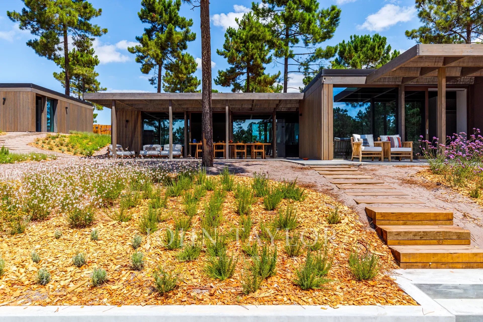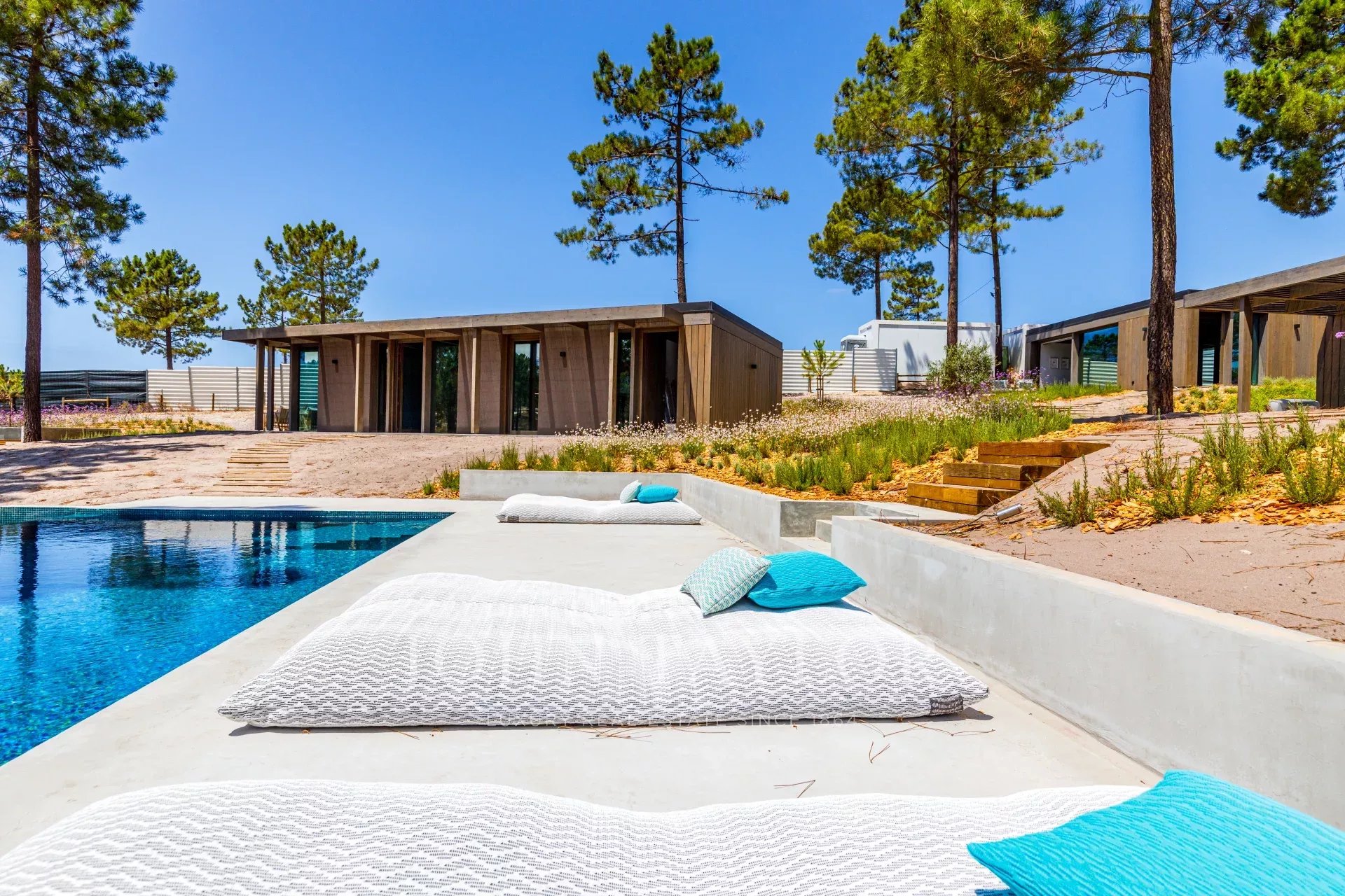 Die Villa verfügt über einen herrlichen Swimmingpool mit einer nach Süden ausgerichteten Terrasse, von der aus Sie den Blick auf den Pinienwald und die Sonne von Comporta genießen können. Vom Pool aus können Sie zur Feuerstelle laufen, wo Sie die umliegende Natur in einer entspannten und anspruchsvollen Atmosphäre genießen können.