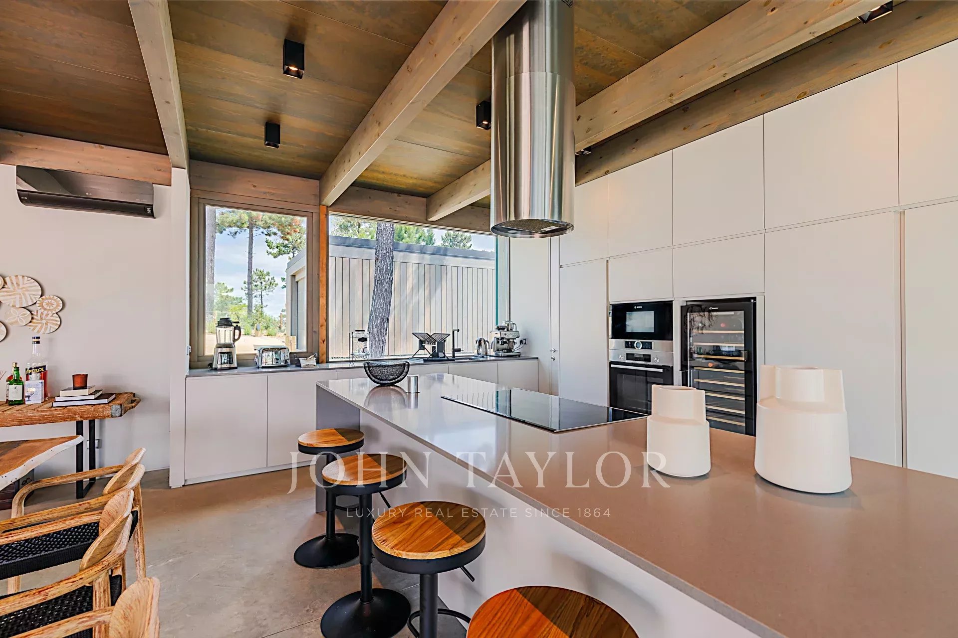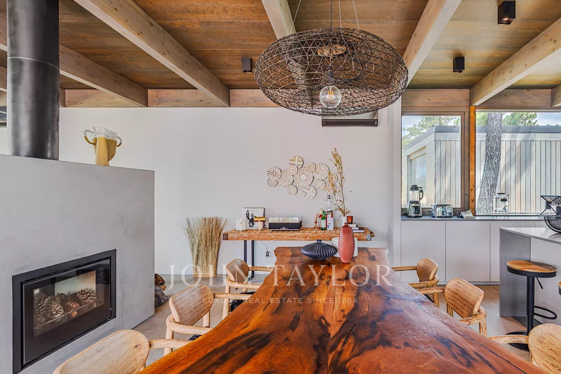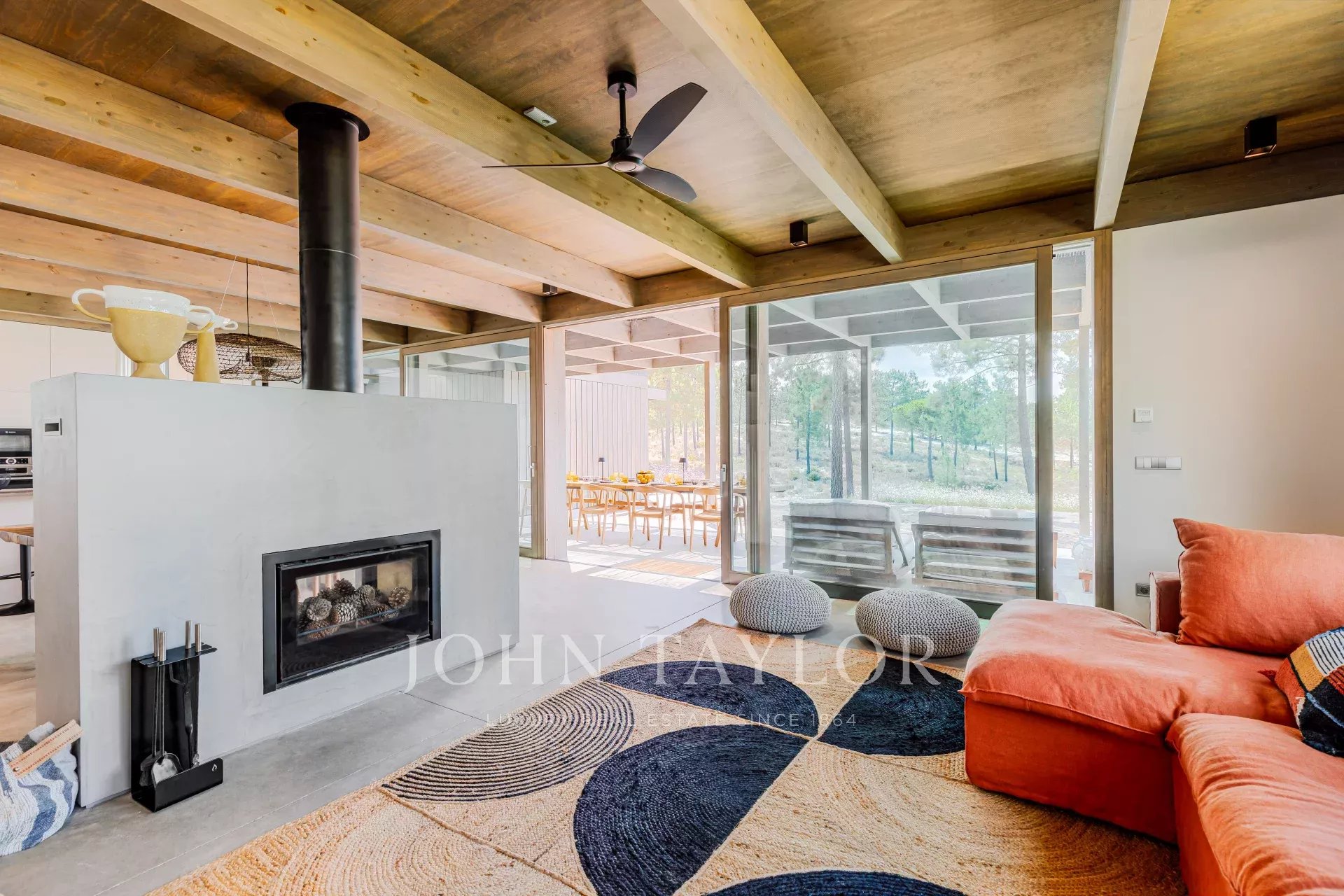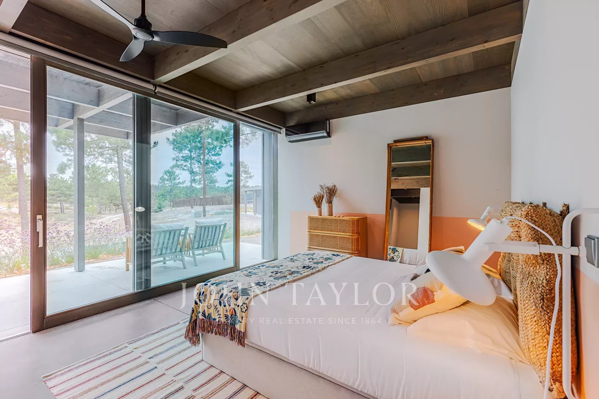 Die Villa verfügt über einen herrlichen Swimmingpool mit einer nach Süden ausgerichteten Terrasse, von der aus Sie den Blick auf den Pinienwald und die Sonne von Comporta genießen können. Vom Pool aus können Sie zur Feuerstelle laufen, wo Sie die umliegende Natur in einer entspannten und anspruchsvollen Atmosphäre genießen können.