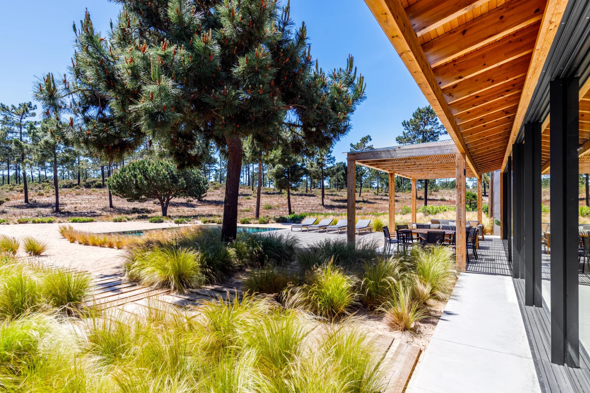 Das Casa da Areia befindet sich im prestigeträchtigen Comporta Retreat und bietet einen exklusiven Rückzugsort in einer der privatesten Gegenden der Region. Auf einem 3.000 m² großen Grundstück mit Piniengärten gelegen, erstreckt sich die Villa über 400 m² Innenfläche und verbindet modernen Komfort mit der Ruhe der Natur.