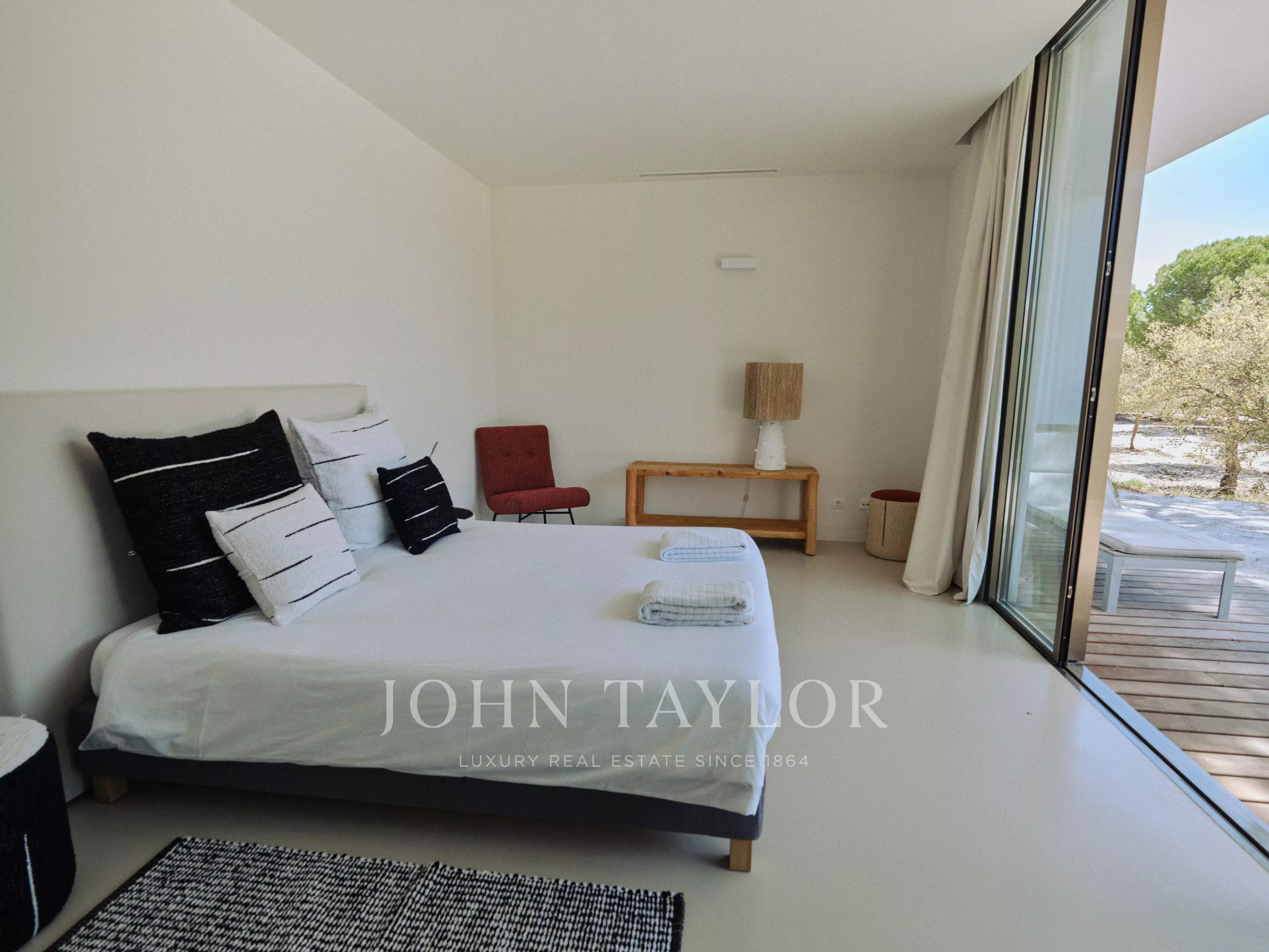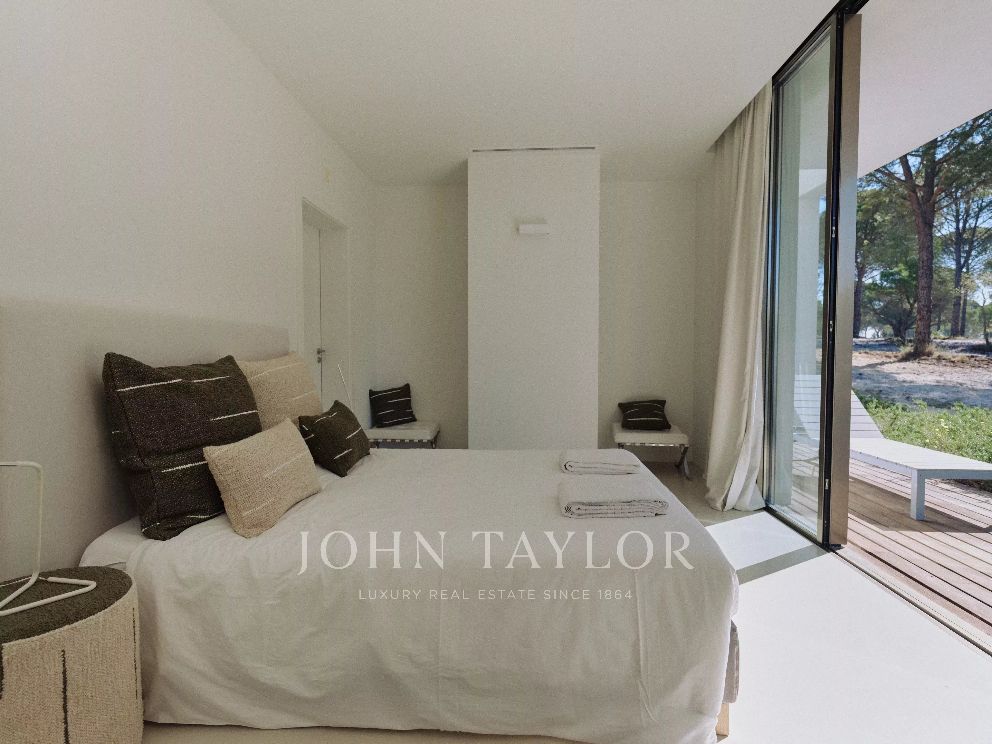 Alma da Comporta ist eine Villa mit exklusivem Charakter, in der sich minimalistisches Design nahtlos mit der Ruhe der Pinienwälder und der Nähe zu den Stränden von Comporta verbindet.