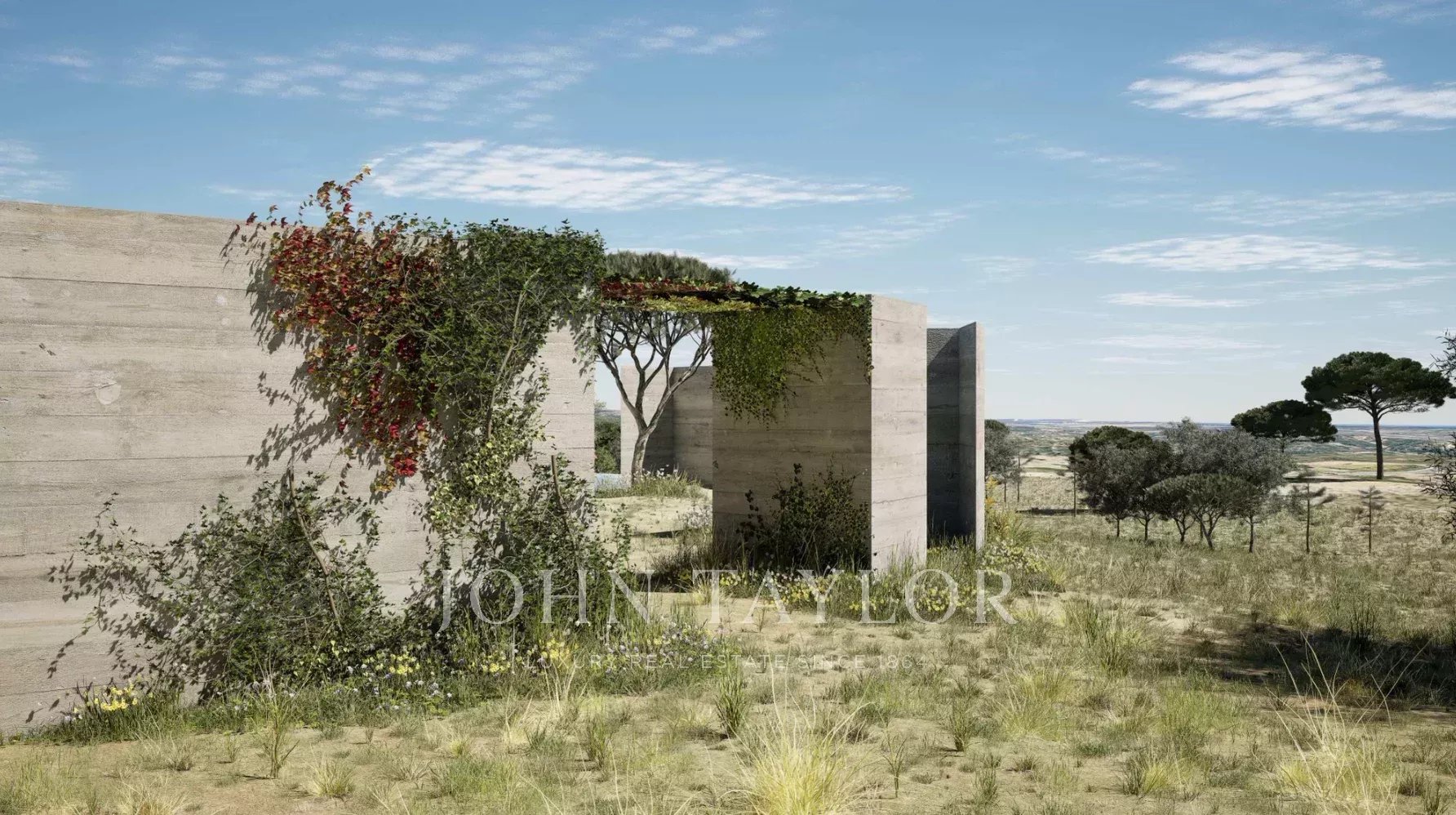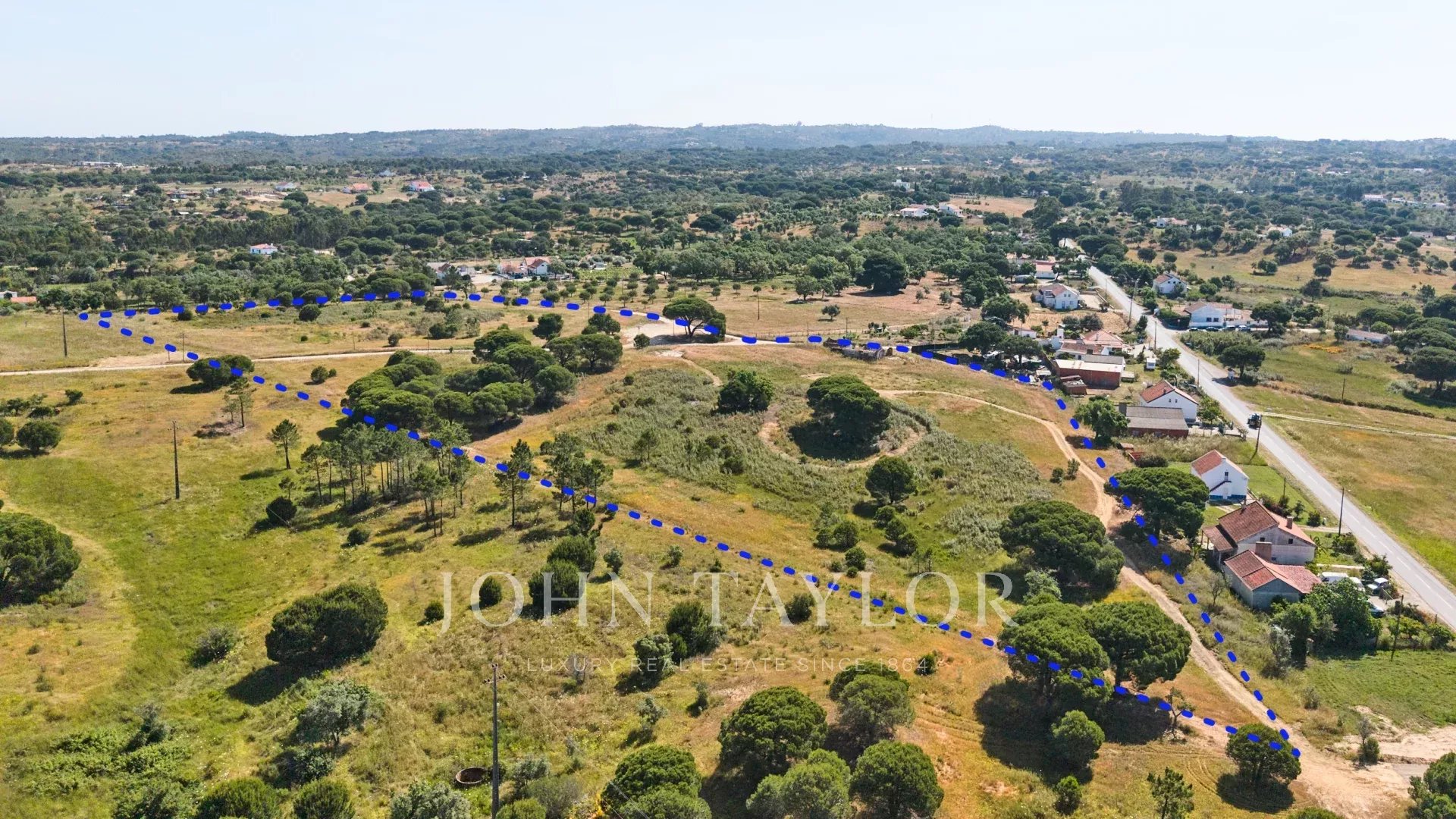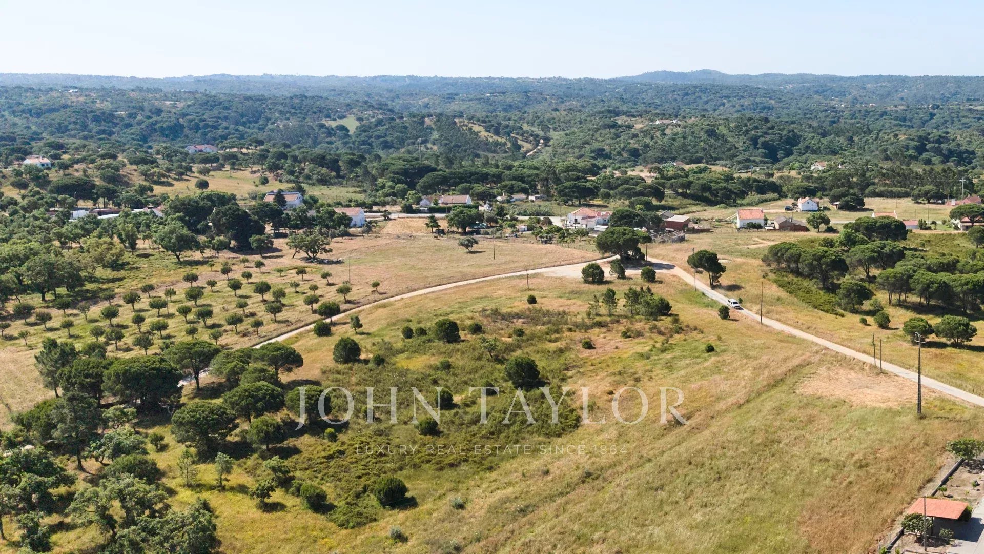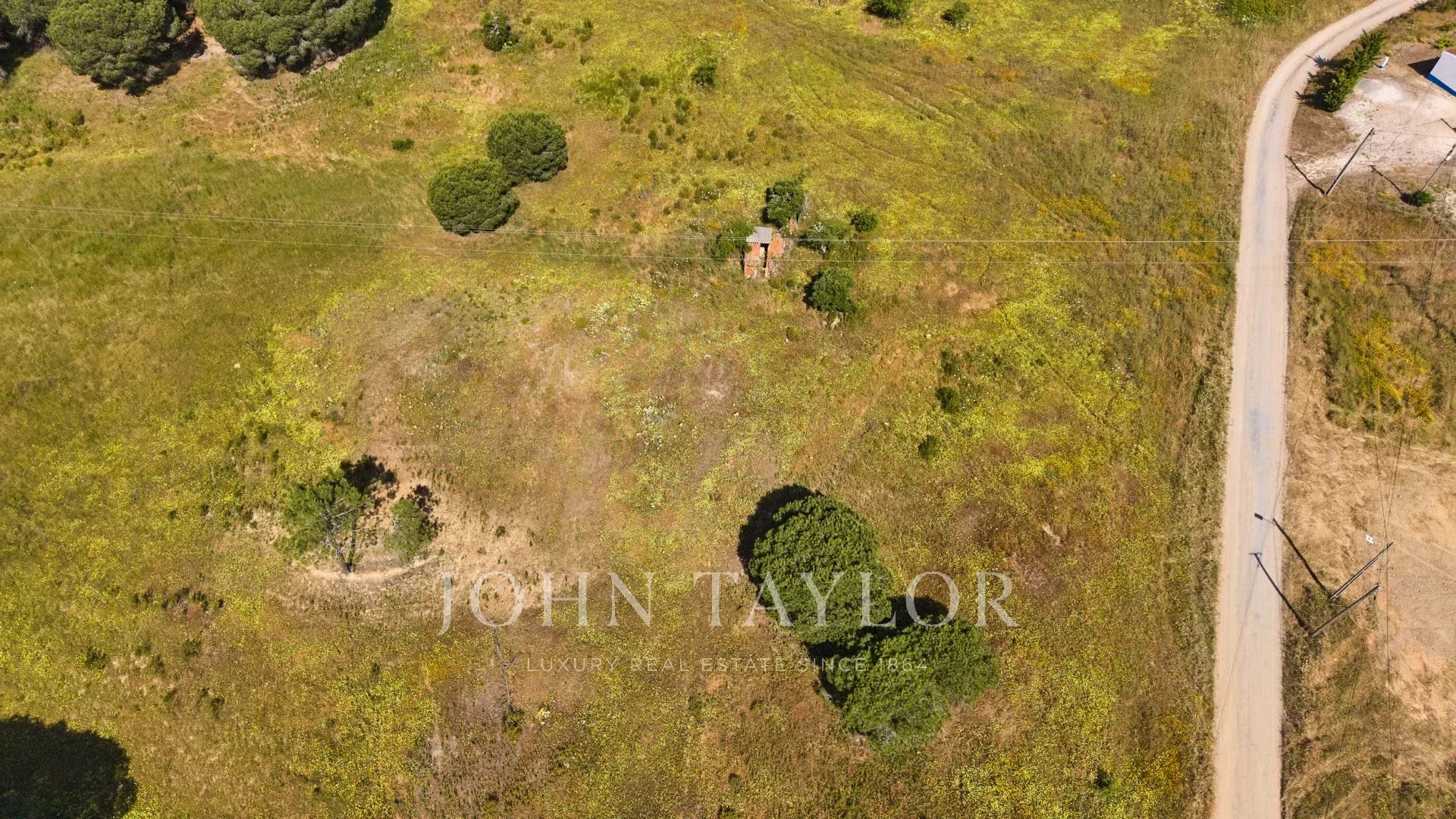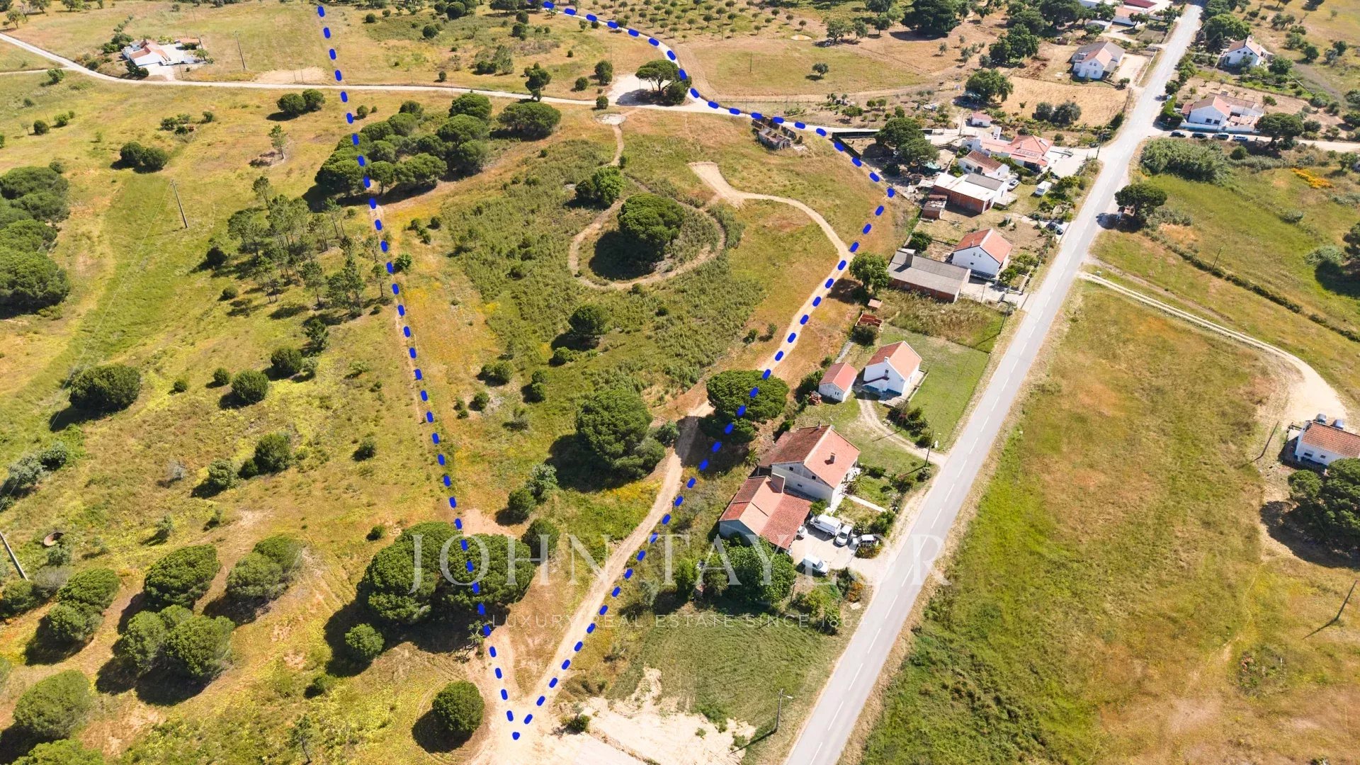 Dieses 3,44 Hektar große Grundstück in Melides verfügt über ein genehmigtes Projekt für eine 500 m² große Villa mit fünf Suiten, die vom renommierten portugiesischen Architekten Aires Mateus entworfen wurde.