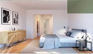 Die Typologie der Wohnung bietet ein geräumiges Wohnzimmer, eine moderne voll ausgestattete offene Küche mit eingebauten Bosch-Geräten (Kühlschrank, Backofen, Waschmaschine, Geschirrspüler und Mikrowelle).