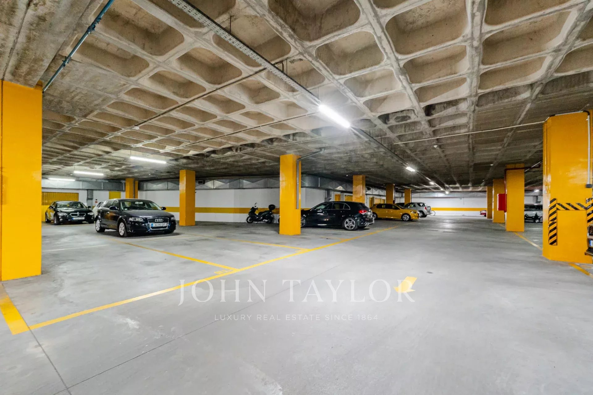 Zur Wohnung gehören außerdem ein Parkplatz und ein Abstellraum.