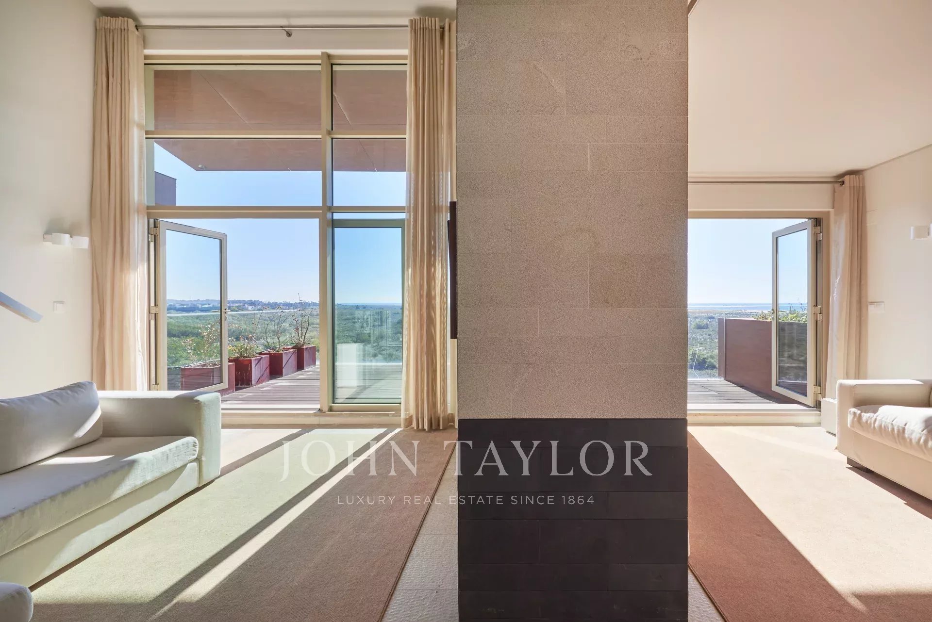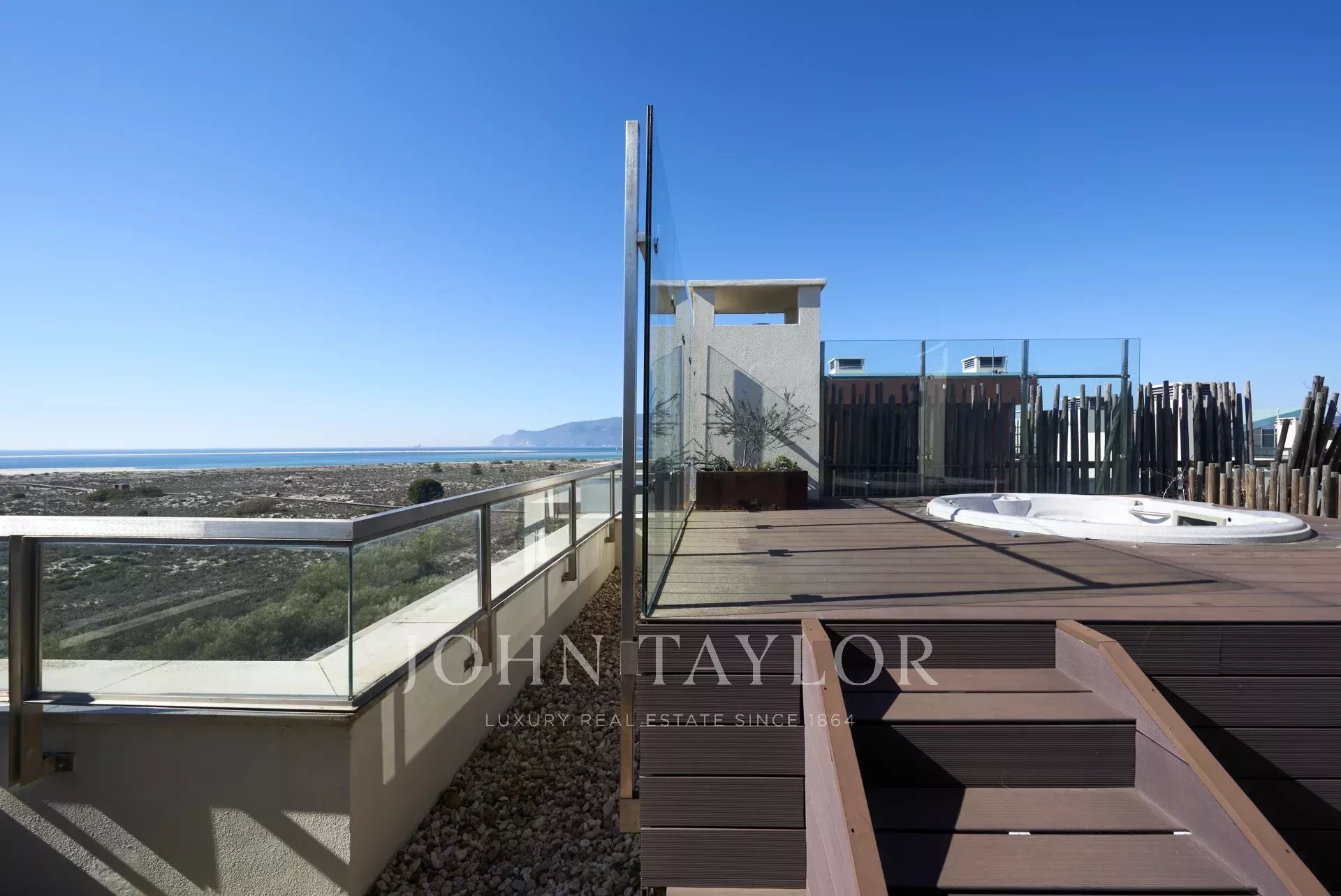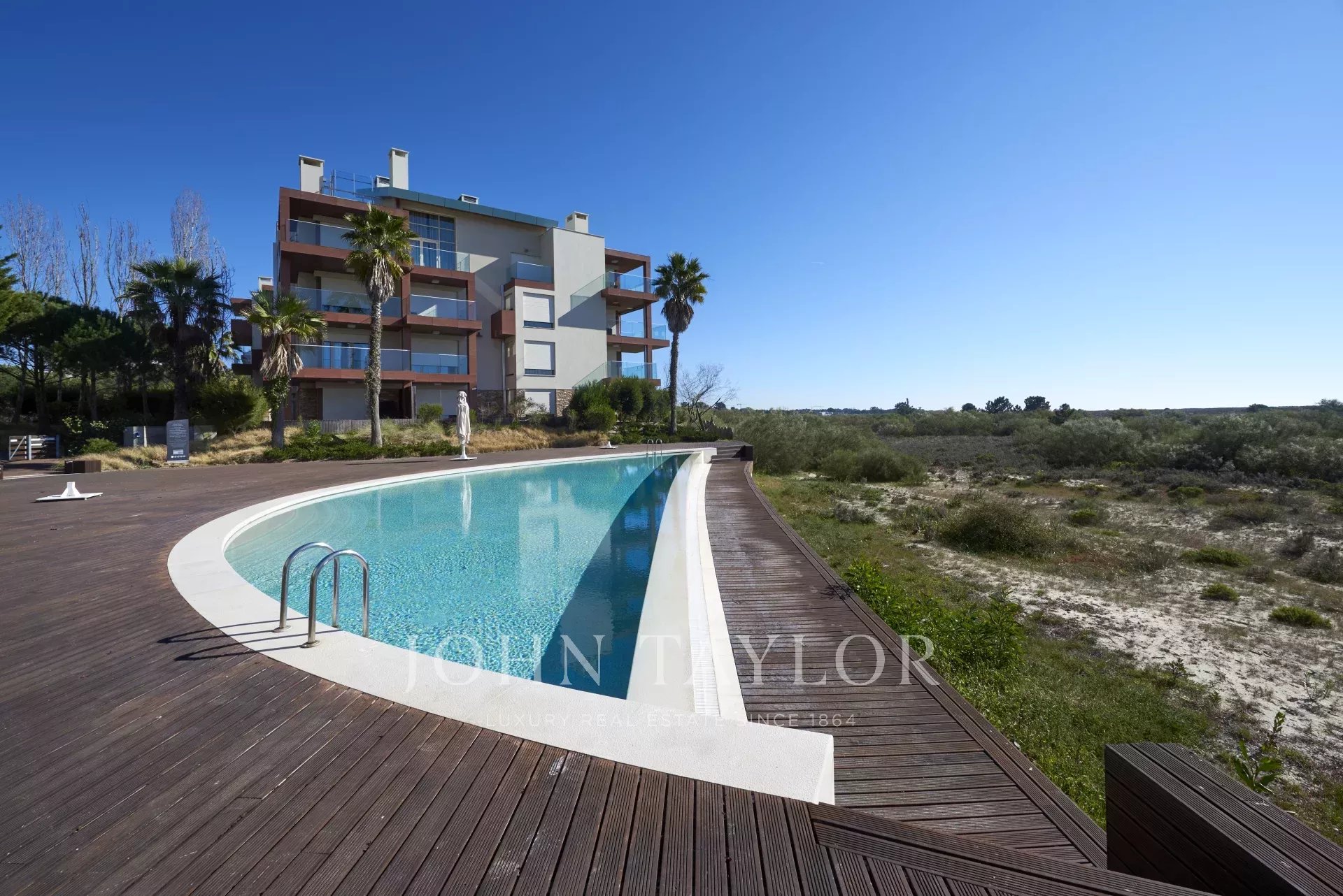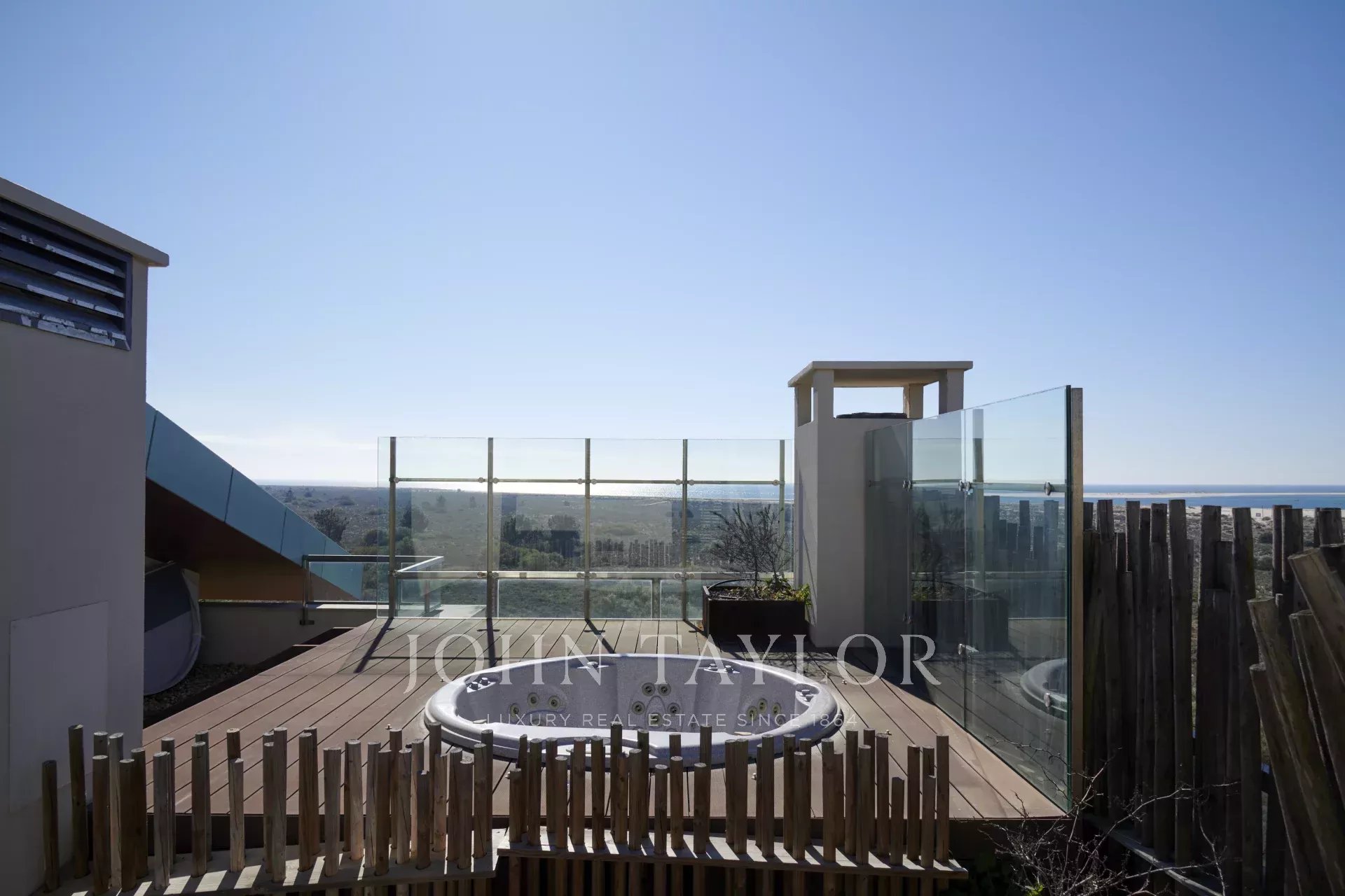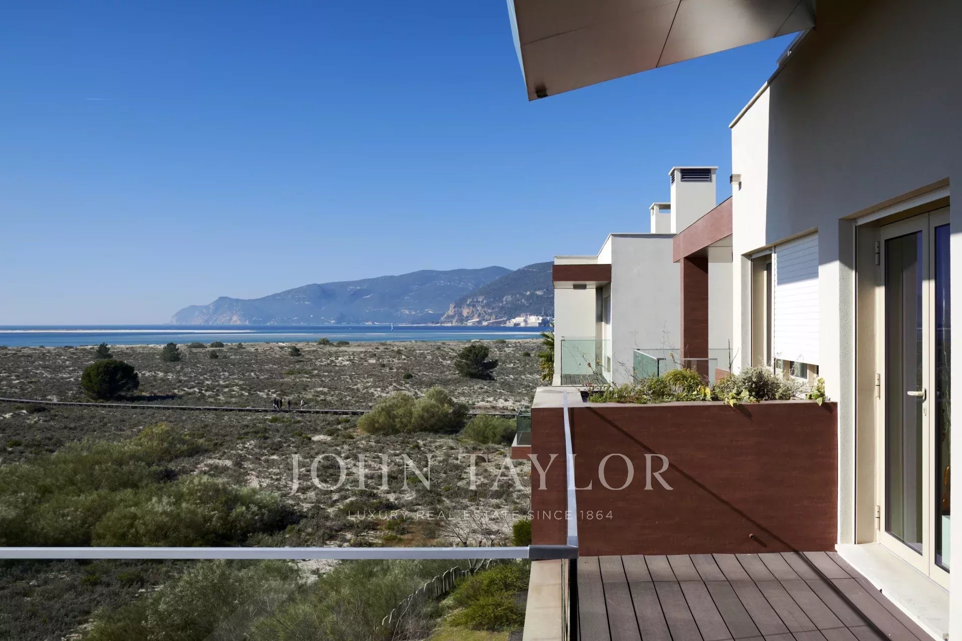 Die Immobilie hat direkten Zugang zum Strand und liegt nur fünf Minuten vom Golfplatz von Troia und dem Yachthafen entfernt.