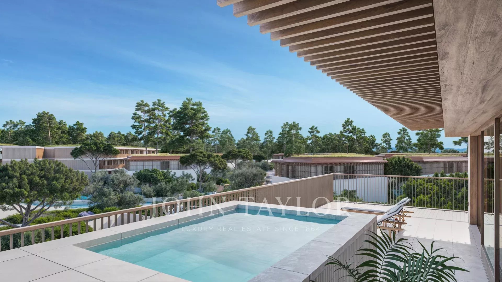 Die Wohnung verfügt über 2 geräumige Schlafzimmer mit eigenem Bad, eine voll ausgestattete offene Küche und ein kombiniertes Wohn- und Esszimmer, das auf einen großzügigen Balkon und eine Terrasse mit Swimmingpool führt. Es gibt auch ein Gemeinschaftsbad und eine vielseitige Speisekammer oder Waschküche.